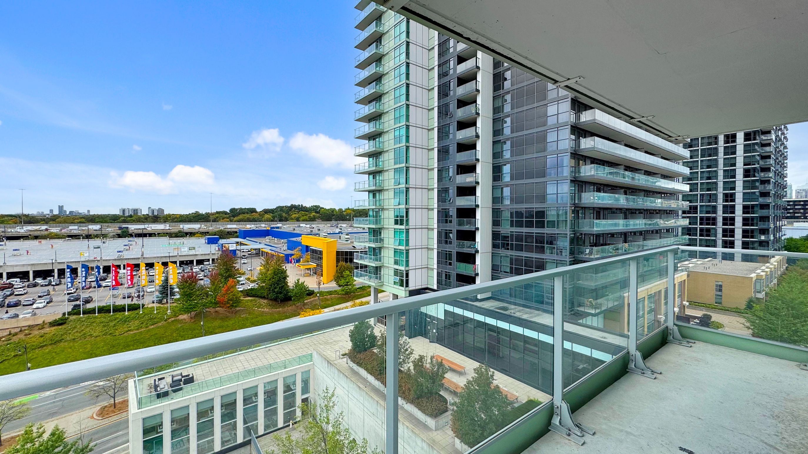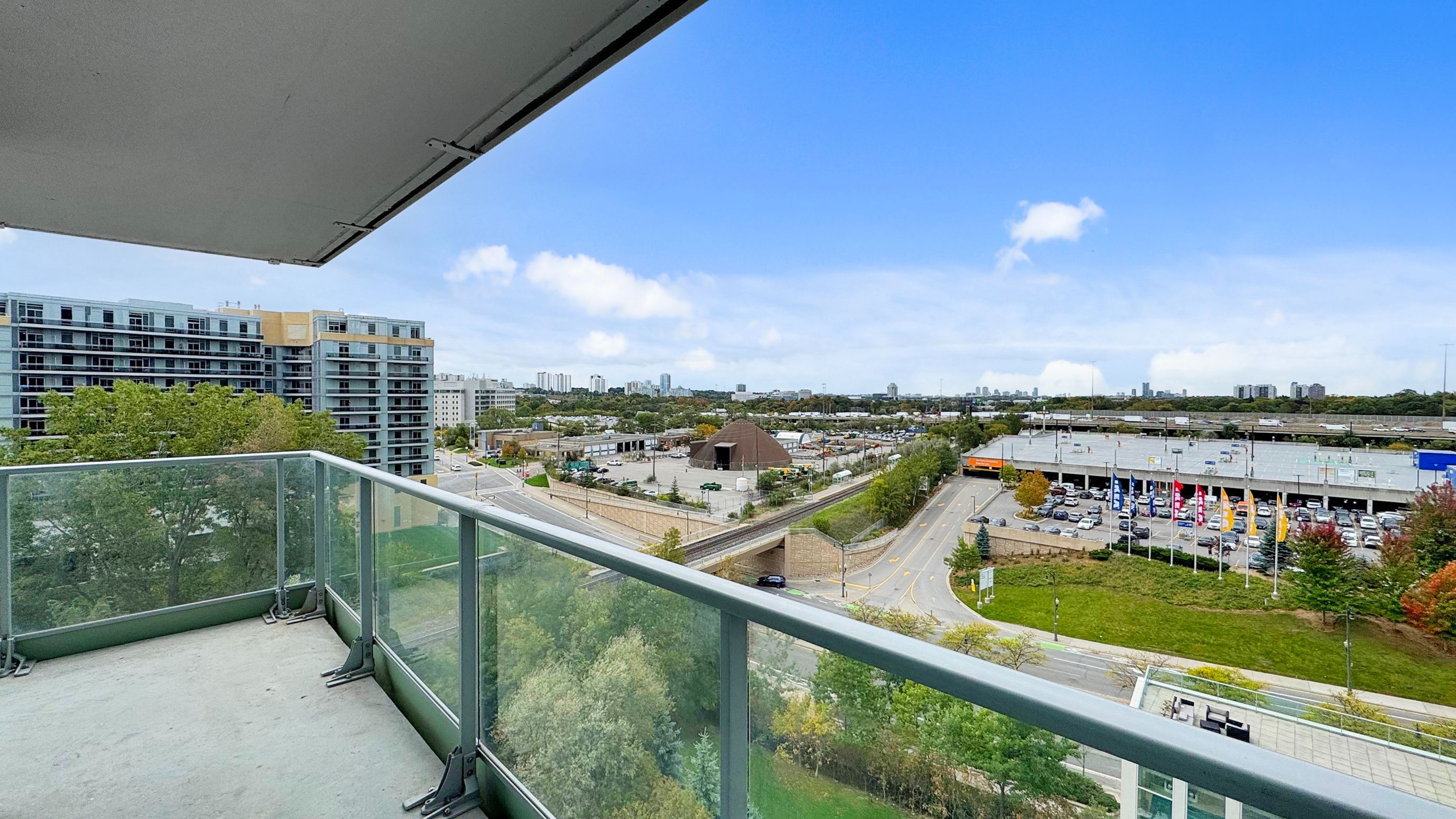 Spacious & freshly painted suite with breathtaking, sunny, panoramic southeast views. Strategic location with easy access to highways that will save you time in any direction you're headed, this 2-bedroom, den/study, 2-bathroom provides you with a whopping 1,010 sqft of open-concept living space + 190 sqft of terrace area making it a total of 1200 sqft of enjoyable space in a well-maintained modern building. Generous kitchen with breakfast bar. Spacious living room with floor-to-ceiling windows ushering in lots of natural light! Enjoy relaxing moments on a beautiful wrap-around terrace. 1-parking, 1-locker storage, high-speed fiberoptic internet, 24hr security concierge, shuttle service to nearby subway station. Minutes from hwy 404 & 401. Ttc bus route, bayview village & fairview mall are nearby, close to ny general hospital, courtyard w/bbq, party room, guest suites, indoor pool, kids play area, indoor basketball court, beautiful gym, underground visitor parking, recreation & media rooms, rooftop deck/garden, squash court, electric car charging station, and ikea.