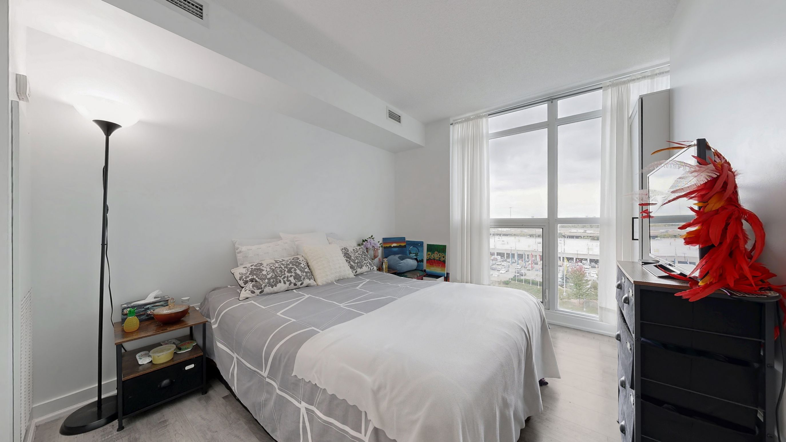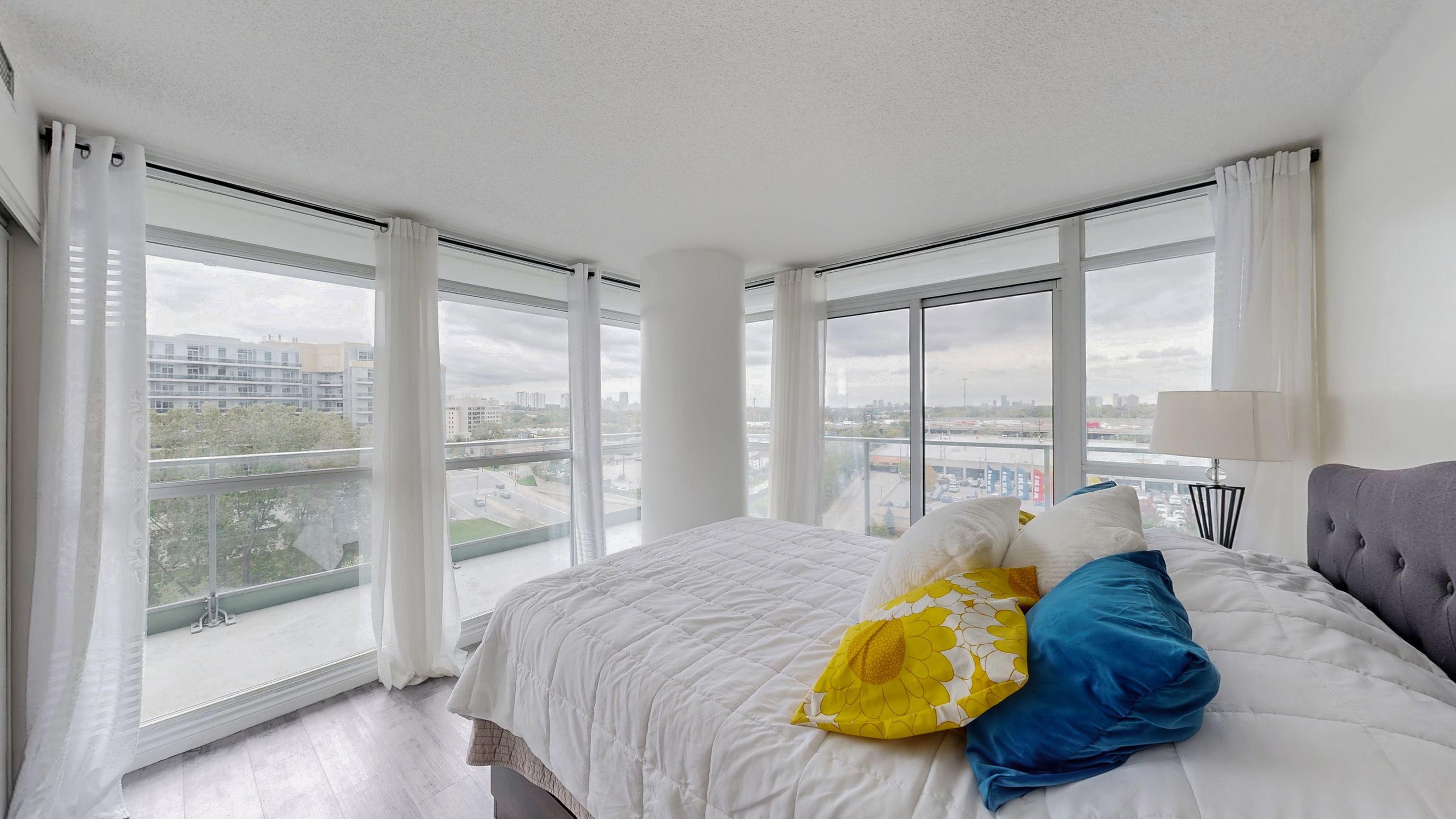 • Lots of natural light from floor-to-ceiling windows in the living room.