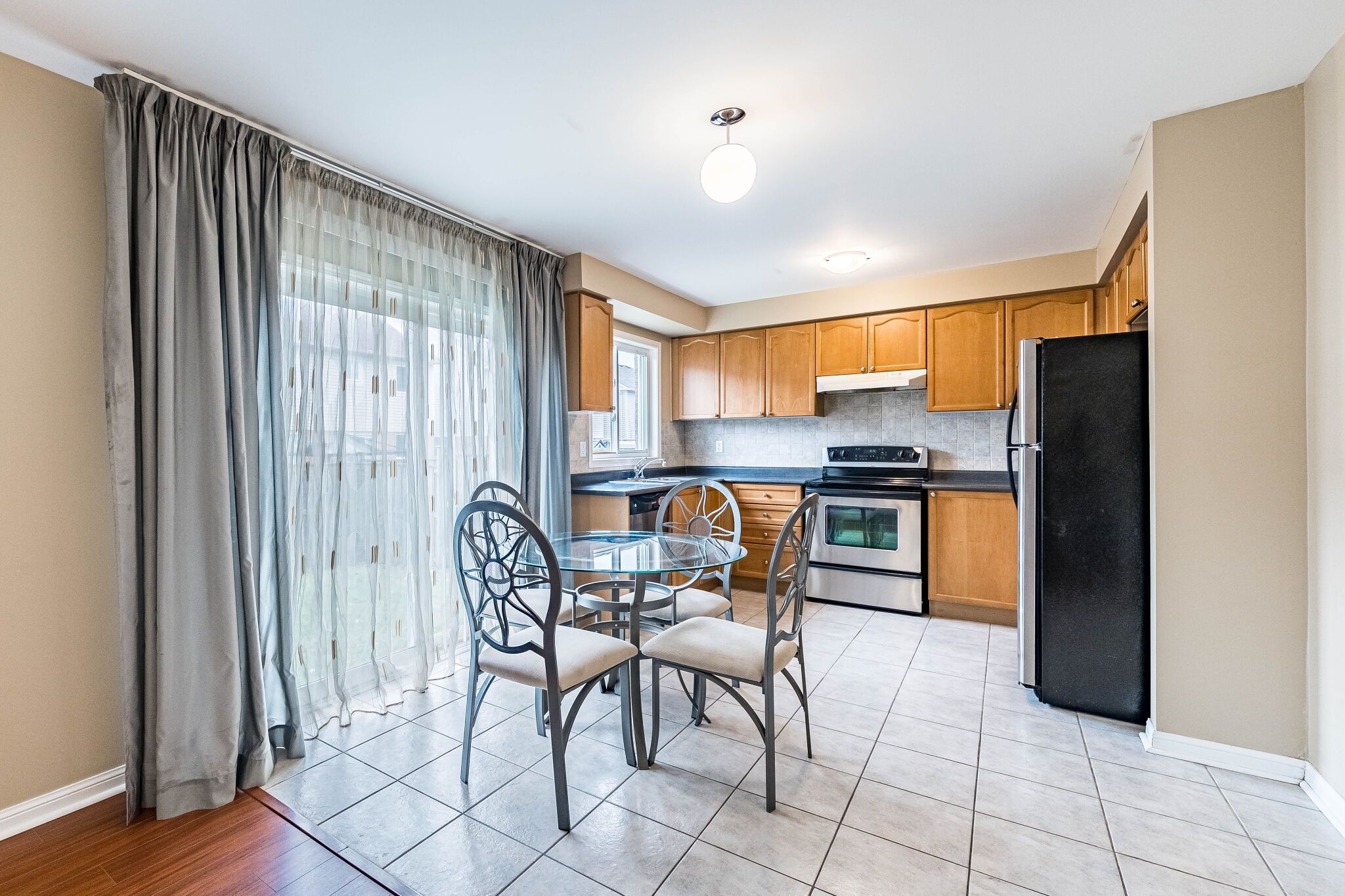 • Eat-in kitchen with walkout to backyard, great for summer BBQs.