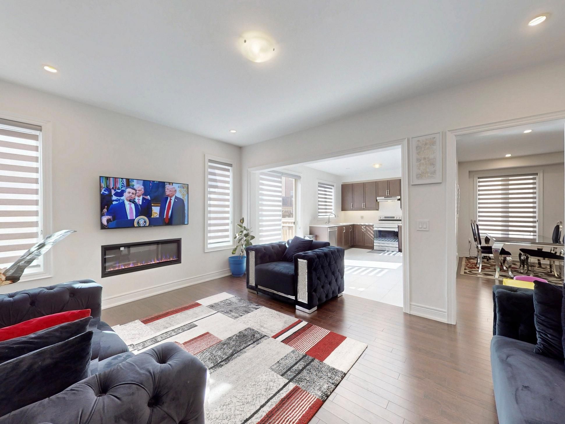 • Open-concept design with 9 ft ceilings and luxury hardwood floors.