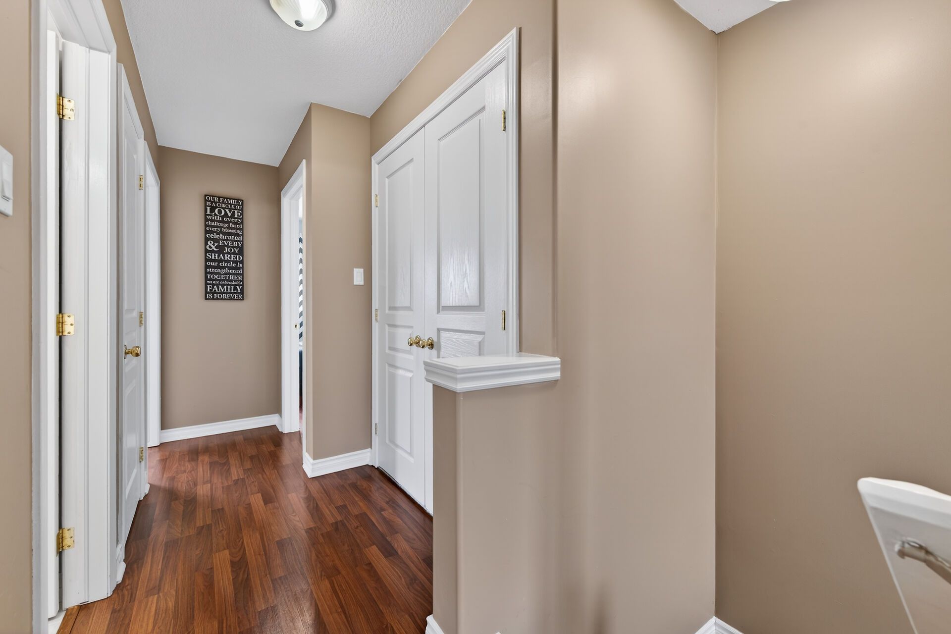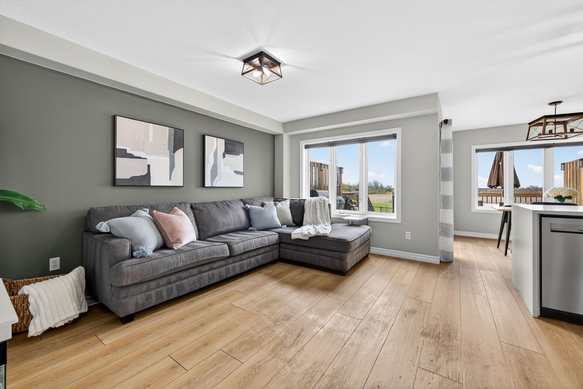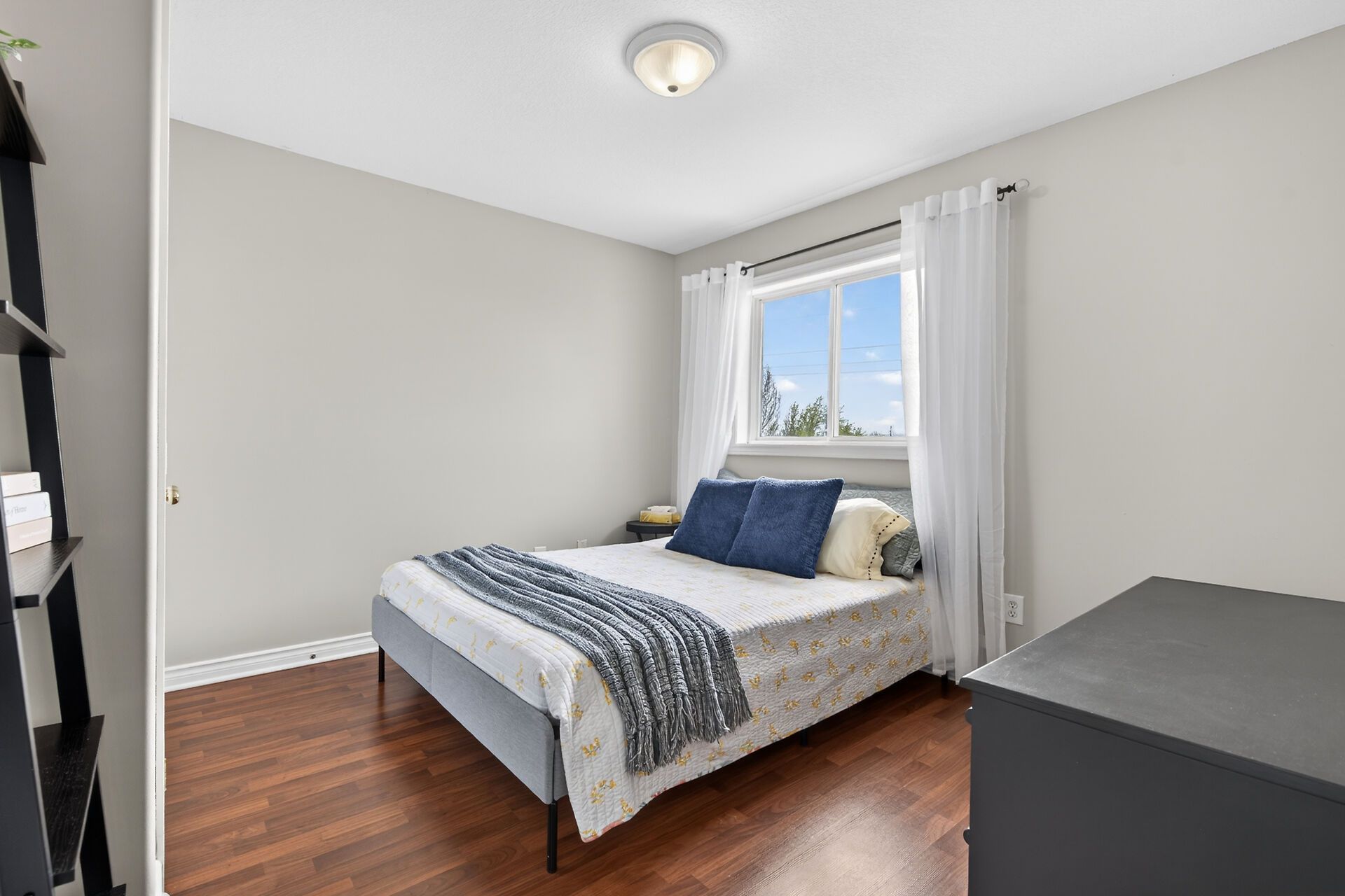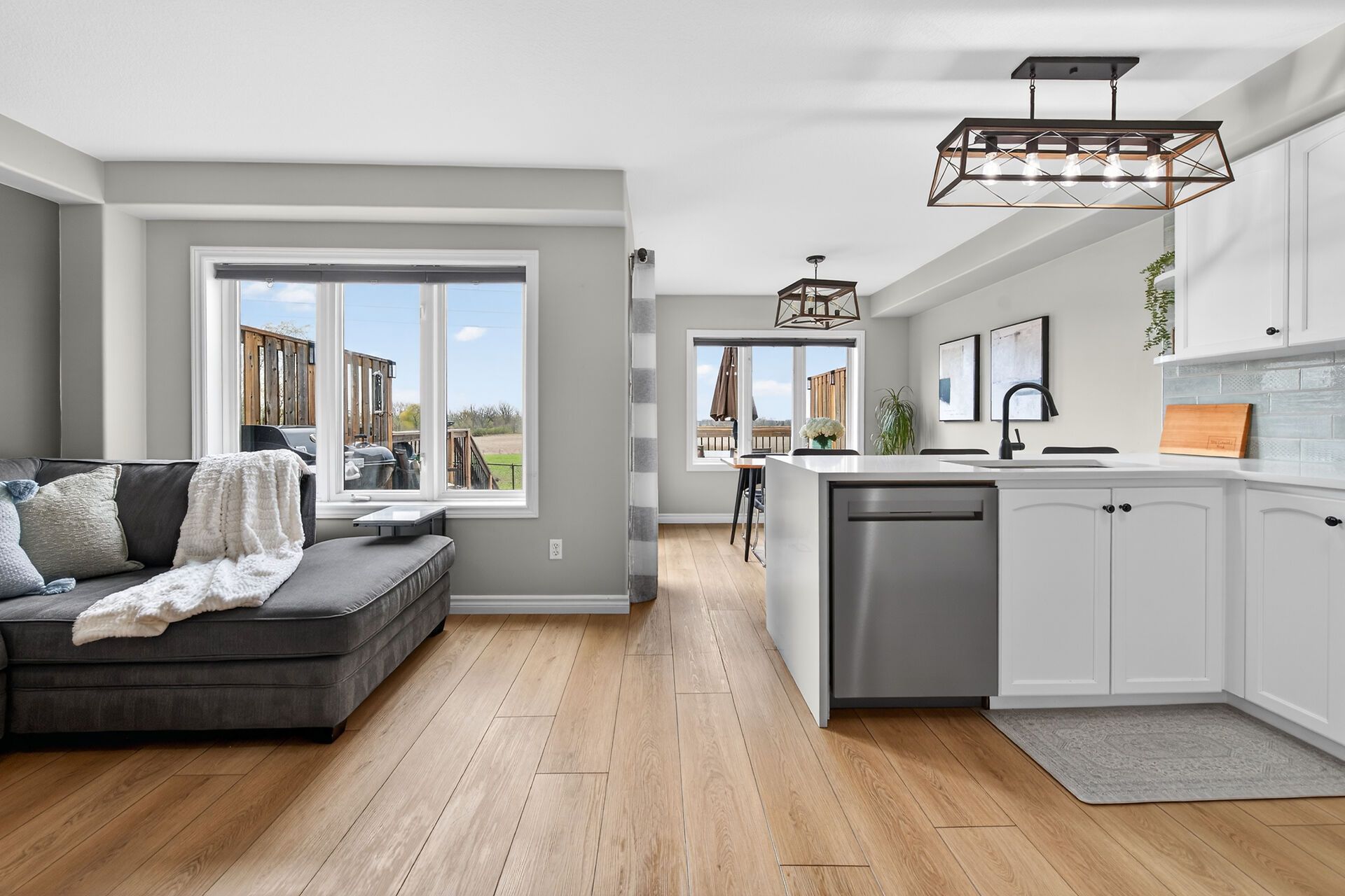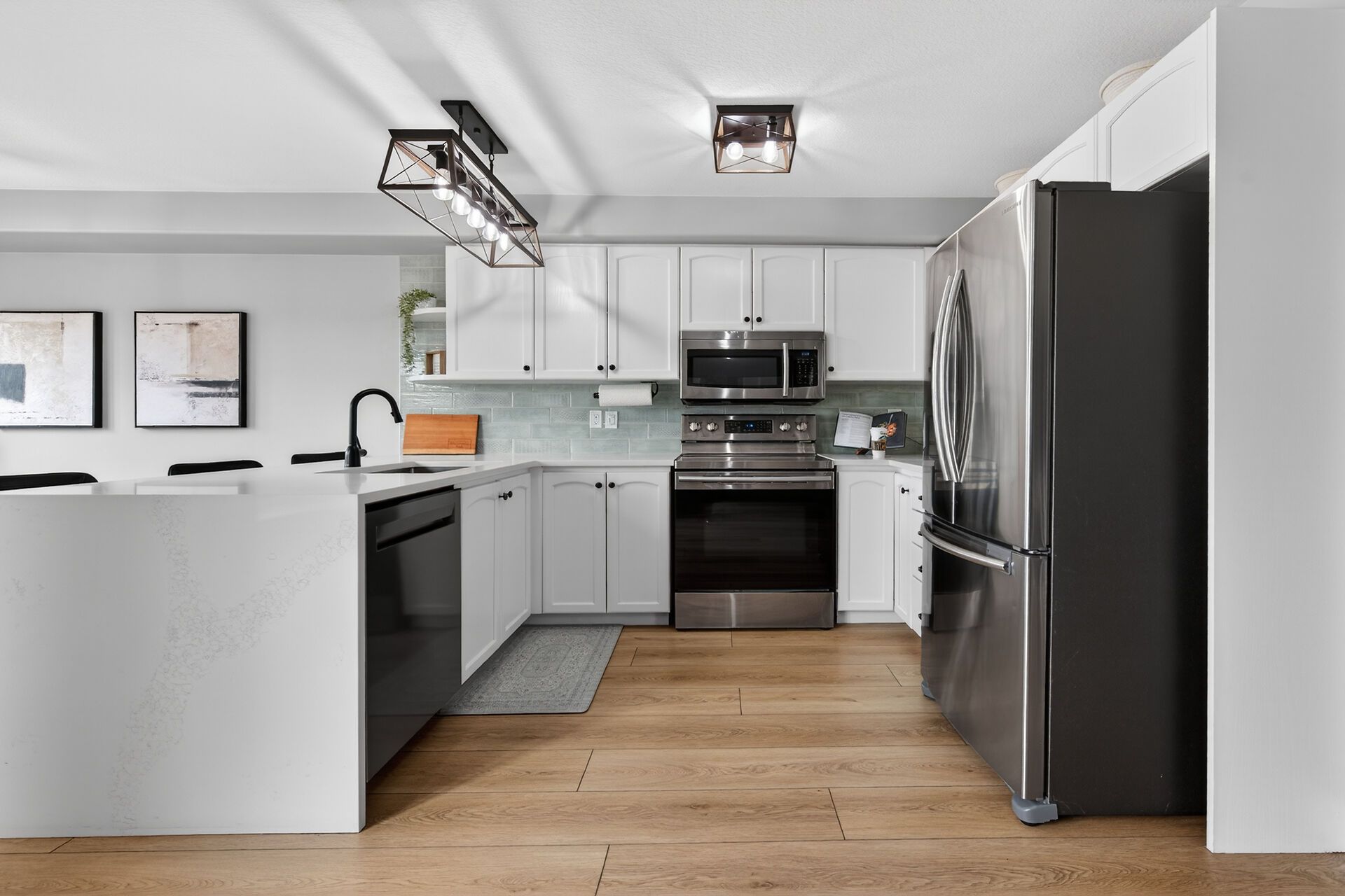 Beautifully maintained 3-bedroom, 2-bath townhome offers the ideal blend of functionality and style, designed for modern family living. Nestled in a sought-after, family-oriented neighbourhood, enjoy the convenience of walking to 2 schools, parks, library, shops, banks, medical and dental offices, bakeries, restaurants and more. This community has everything! The deep yard and greenspace located directly behind provides a safe and accessible space for children to play and families to enjoy the outdoors together. Pride of ownership is evident throughout this well cared for home. No need for renovations or repairs. This home is ready for you to move in and start making memories! Over 1700 sqft of living space is completely carpet free. Improvements include: main level luxury vinyl flooring (2022), kitchen updated with waterfall quartz countertop (2022), main bath reno (2022), roof shingles (2022). New dishwasher and new washer and dryer (2026). The private back deck (2021) is a perfect place for barbecues, gathering and relaxing. Pets are welcomed and will appreciate the fenced yard. Enjoy leisurely strolls with your furry friends through this safe and welcoming community. Don't miss your chance to own this exceptional, turn-key home in a sought-after neighbourhood.