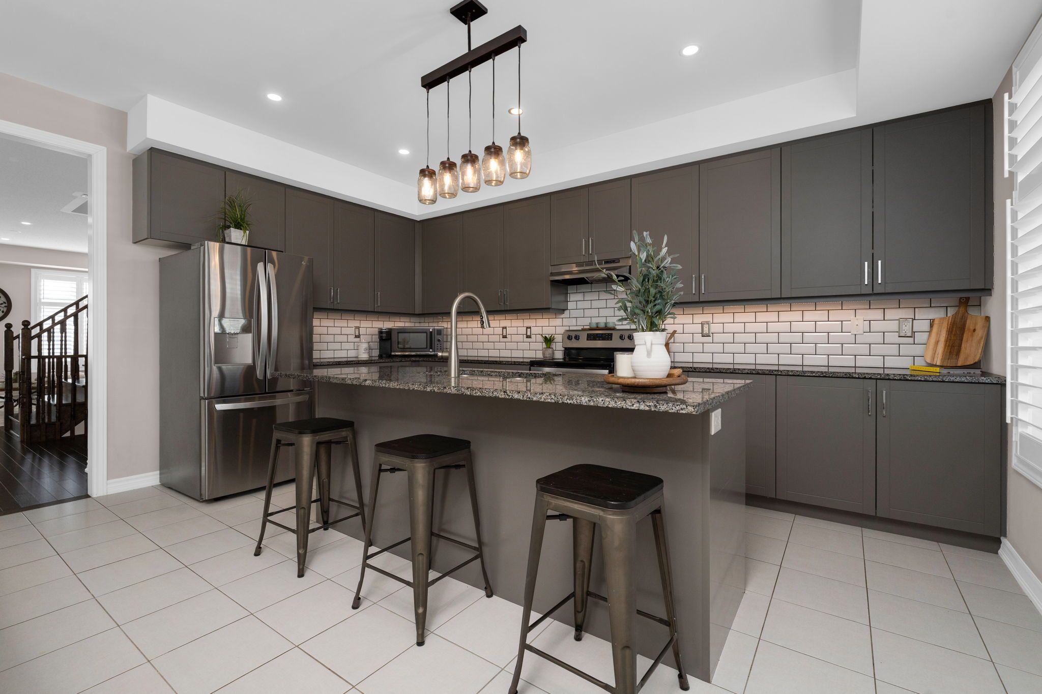 Welcome to this stylish townhome offering a thoughtful blend of modern design and everyday functionality. Bright and spacious throughout, this home features three bedrooms and four bathrooms, providing plenty of room for families or professionals alike. The ground level offers a flexible open-concept space complete with a walk-out to a private fenced yard, creating a seamless indoor-outdoor flow for summer bbqs or quiet mornings with coffee. The main floor is designed for comfort and entertaining, showcasing hardwood flooring, large windows, and a cozy gas fireplace that anchors the living room. The contemporary kitchen is a standout, featuring quartz countertops, modern backsplash and an island with breakfast bar seating, ideal for hosting. Upstairs, you'll find three spacious bedrooms, including a primary suite with a spa-inspired ensuite featuring a soaker tub and separate shower. A built-in garage and private driveway provide convenient parking and storage solutions. With just under 2,000 square feet of finished living space, this home is ideally located close to parks, schools, shopping, and easy highway access. A fantastic opportunity in a sought-after whitby neighbourhood.