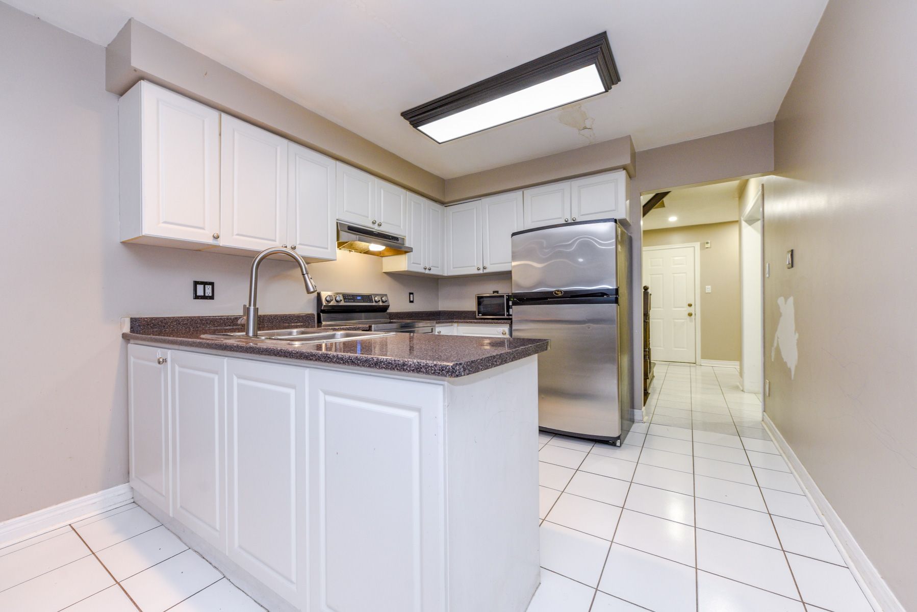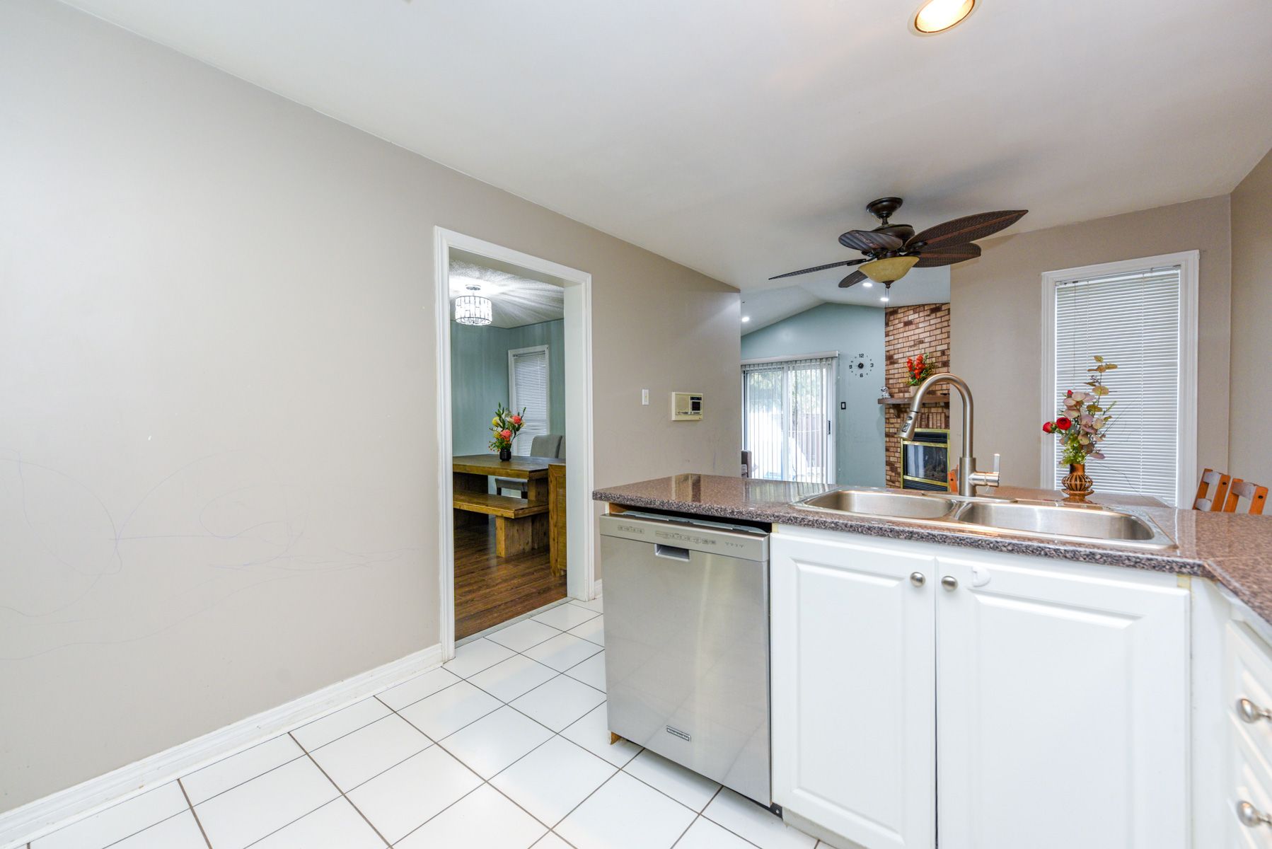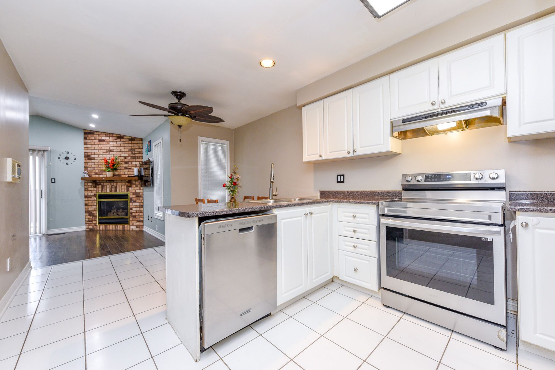 • Stylish kitchen with ample cupboard space and walk-out to the backyard.