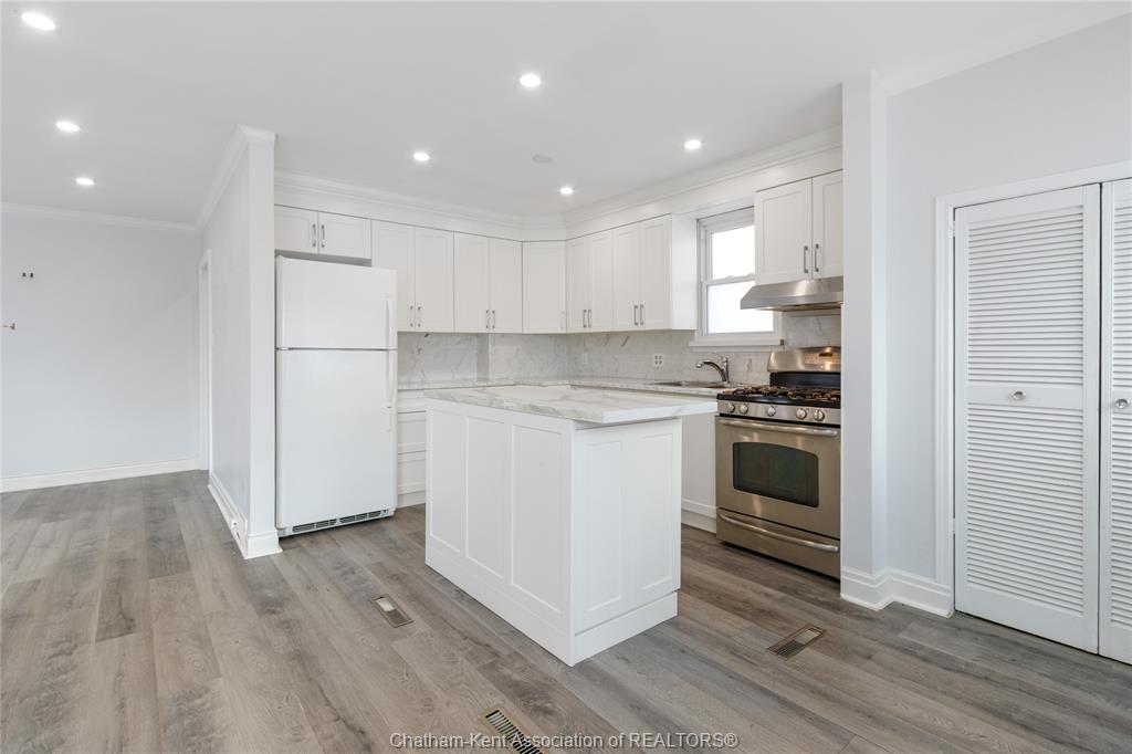 Step into opportunity with this beautifully refreshed brick bungalow located just steps from st clair street on chatham’s north side. A great option for first-time buyers, anyone looking to downsize and investors! The open-concept layout connects a sleek white kitchen with ample cabinetry and a central large island that connects the living and dining areas. The main floor offers two comfortable bedrooms and a 4-piece bath. Downstairs, the finished lower level offers a private side entry that leads to a spacious rec room, a 3-piece bath, and generous storage. Outside, the detached garage is perfect for projects, while the fenced backyard with a large patio is a private oasis. Close to schools, parks, and amenities, this home blends comfort with growth potential! Don't delay and call today! Rent is $2200/month plus all utilities. All potential tenants are required to complete an application, provide first and last month's rent, proof of income (2 most recent pay stubs), references, and a credit check.