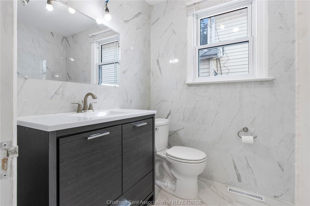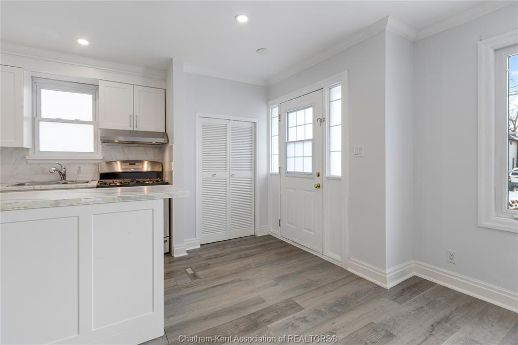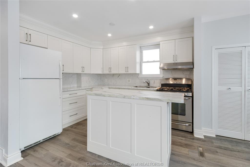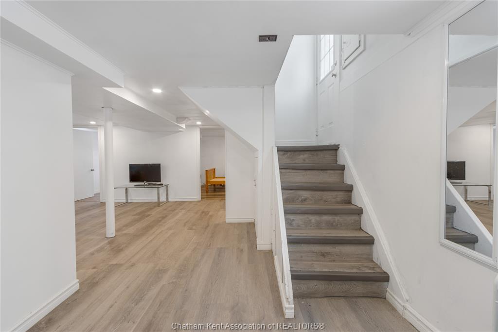 Step into opportunity with this beautifully refreshed brick bungalow located just steps from st clair street on chatham’s north side. A great option for first-time buyers, anyone looking to downsize and investors! The open-concept layout connects a sleek white kitchen with ample cabinetry and a central large island that connects the living and dining areas. The main floor offers two comfortable bedrooms and a 4-piece bath. Downstairs, the finished lower level offers a private side entry that leads to a spacious rec room, a 3-piece bath, and generous storage. Outside, the detached garage is perfect for projects, while the fenced backyard with a large patio is a private oasis. Close to schools, parks, and amenities, this home blends comfort with growth potential! Don't delay and call today!