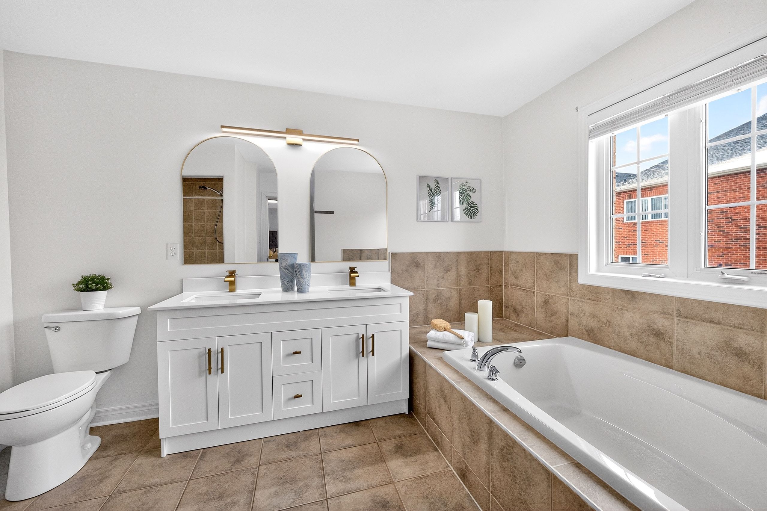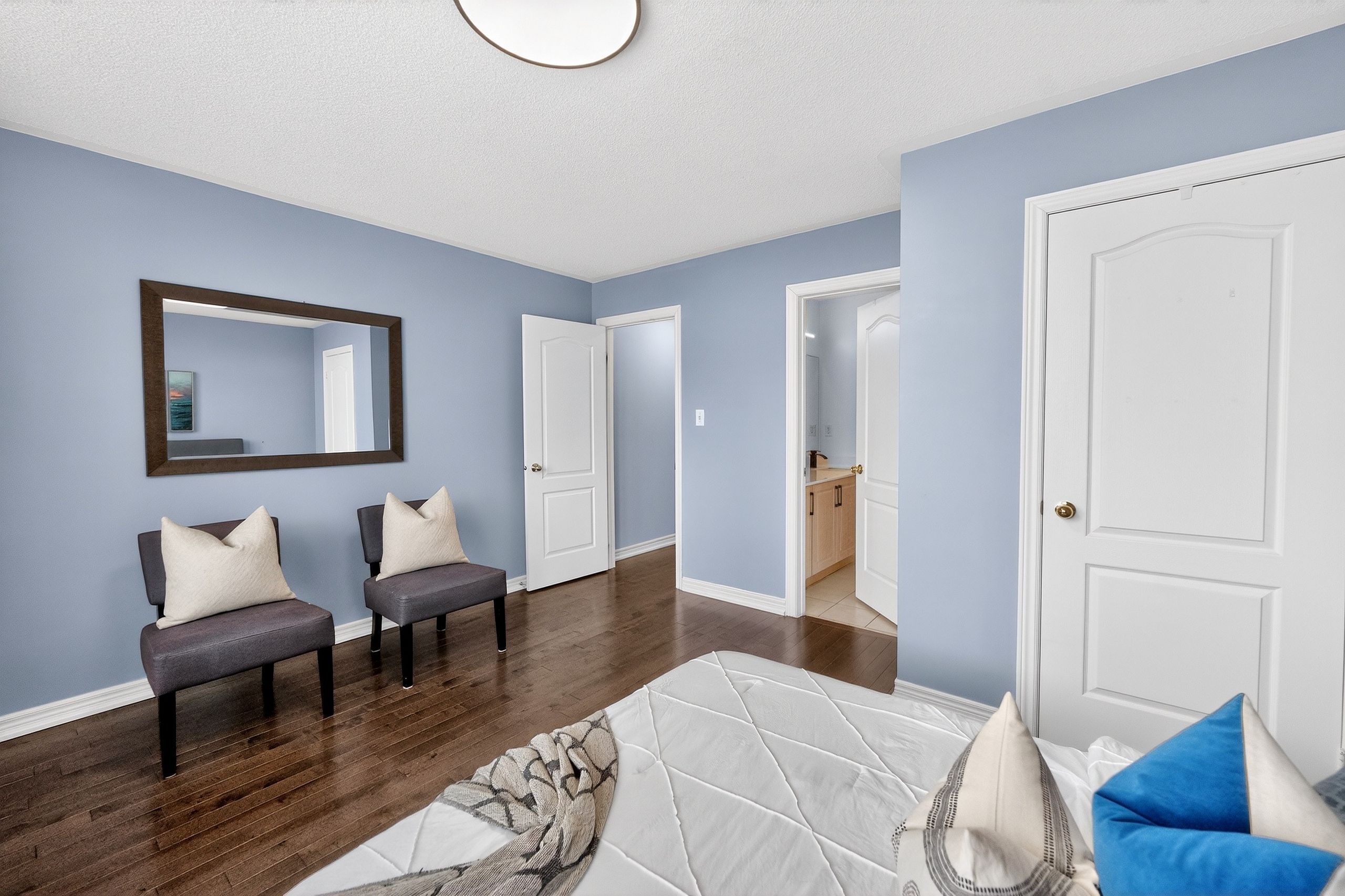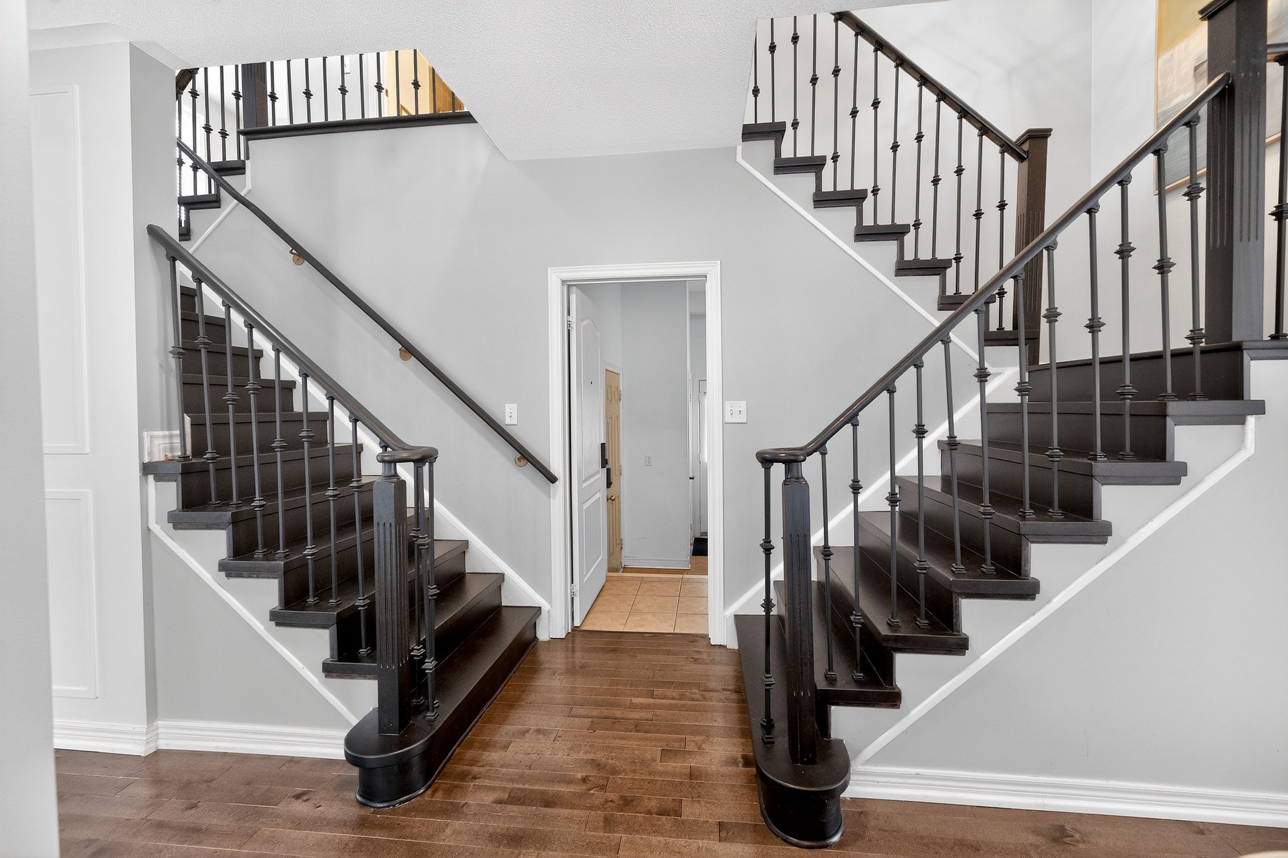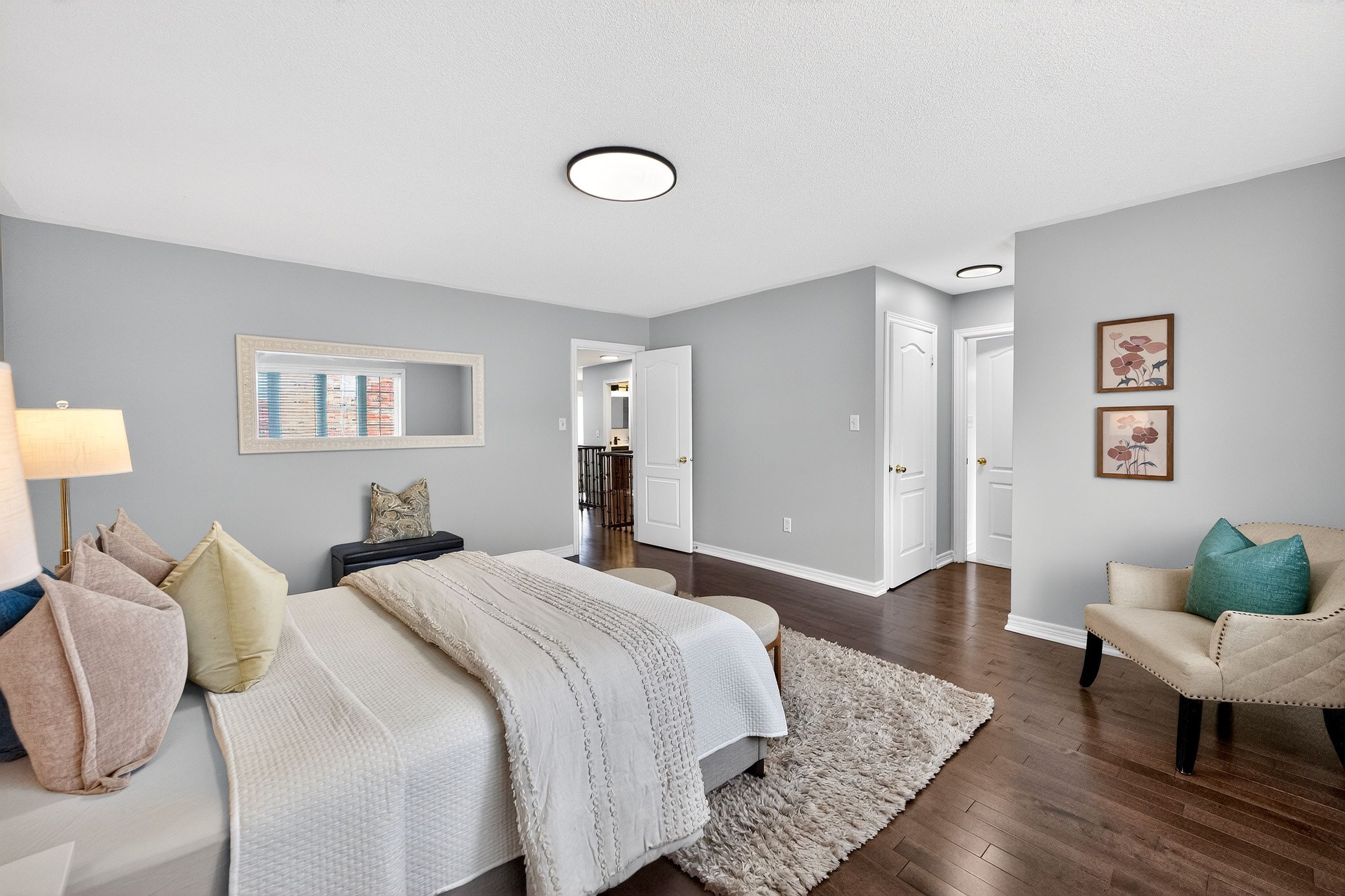 Stunning great gulf home situated on a premium lot with no neighbours on one side, offering added privacy and abundant natural light! This bright & spacious home features 9 ft ceilings on the main floor, a functional layout with a main floor office, and a finished basement. Renovated kitchen (2021) featuring porcelain tiles, upgraded cabinetry & stainless steel appliances, overlooking a cozy family room with fireplace and views of the backyard. Elegant finishes include hardwood flooring throughout and an oak staircase with iron pickets (2019), along with upgraded light fixtures and a stylish accent wall in the main hallway. Unique second floor layout features a media/entertainment room with its own separate staircase while still connected to the upper level. The primary bedroom offers a luxurious upgraded 5-piece ensuite and his & hers walk-in closets. Bedrooms 2 & 3 share a semi-ensuite, plus an additional 4-piece bath. All three bathrooms on the second floor are upgraded. Convenient main floor laundry with mudroom and side entrance, providing potential for separate basement access. The finished basement includes a rec room, kitchen, 3-piece bathroom, two roomsm & pot lights throughout. Recent upgrades include roof (2024) and ev charger (2024). Located within walking distance to french immersion, public & catholic schools, transit, parks & trails. Minutes to shopping, go station & highways 401, 412 & 407. Move-in ready and perfect for families seeking space, comfort & convenience!