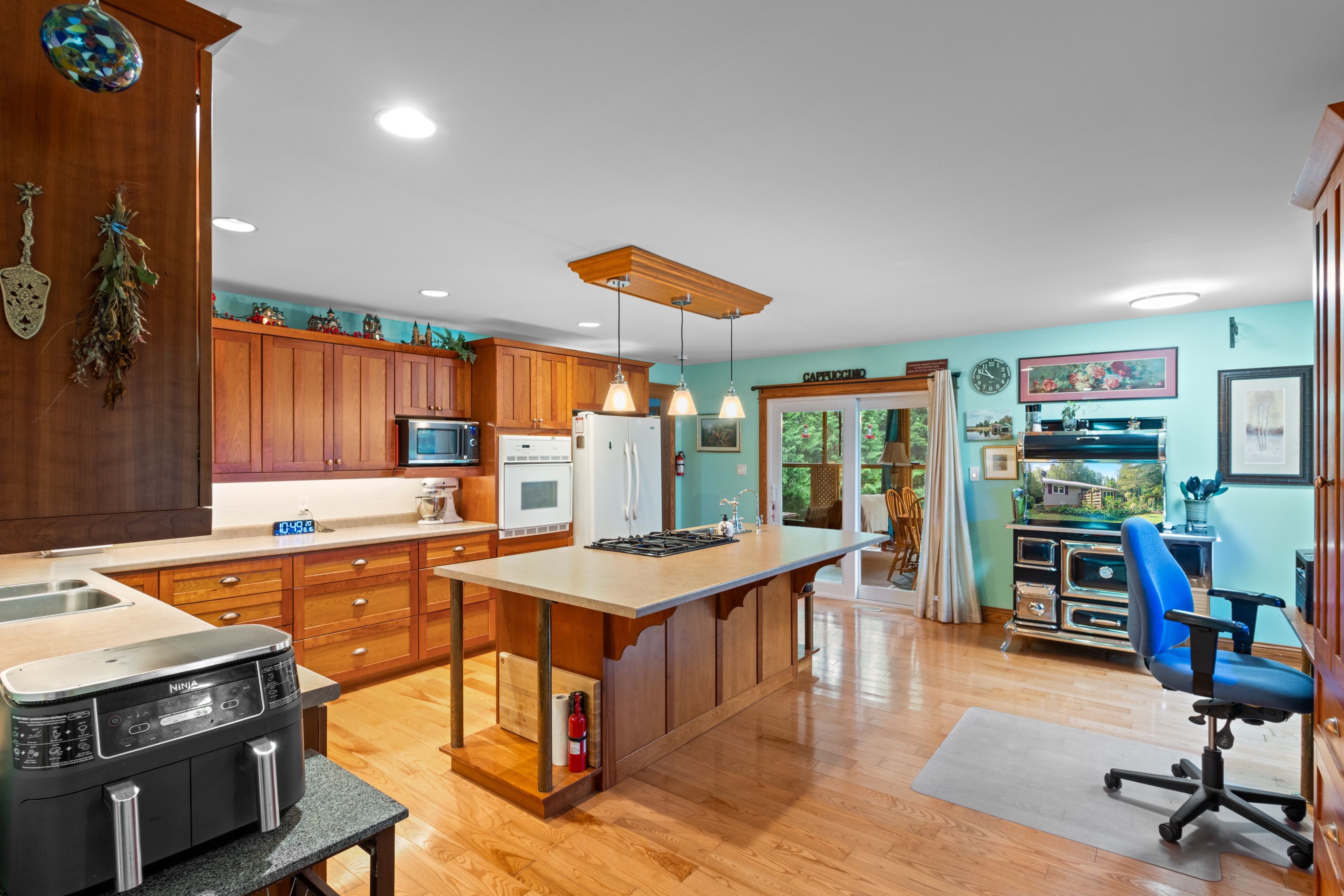 Paradise found! Welcome to your private retreat nestled on a serene 2-acre lot at the end of a quiet dead-end road. Surrounded by mature trees this property is the perfect escape from city life and even offers potential for a home-based business. One of the standout features is the impressive 30' x 40' heated and insulated garage/workshop a dream space for hobbyists, mechanics, or entrepreneurs. It includes its own laundry, an outdoor shower, floor drain, drive-through doors, and a large 10' high by 12' wide automatic bay door. Additional storage is no issue with a 9' x 40' lean-to and a detached shed. You'll love the greenhouse with its own propane furnace and water hookup. Coupled with the raised garden beds, garden area, and fruit trees, you could have home-grown food galore! Inside, the home offers over 1,600+ sq. Ft. Of comfortable living space, plus a 294 sq. Ft. 3-season sunroom featuring a fireplace and tv, perfect for bug-free relaxation or entertaining. The spacious kitchen is equipped with solid cherry cabinets, a large island, and an integrated office nook. Just off the kitchen is a bright, open-concept living and dining area, centered around one of the homes three propane fireplaces. The primary bedroom offers direct access to the sunroom, a walk-in closet, its own fireplace, and a luxurious jacuzzi tub. Quality finishes run throughout the home, including solid oak doors and trim, hardwood flooring, central air, propane furnace, and central vac. A partial-height basement adds additional storage and features a woodstove to keep things cozy. Located just a short drive from lion's head for all your amenities, and minutes from black creek provincial park and its sandy beach for family enjoyment on warm summer days or watching beautiful sunsets. If you're dreaming of a move to the country with flexible, functional outbuildings and peaceful surroundings this property could be the perfect fit!