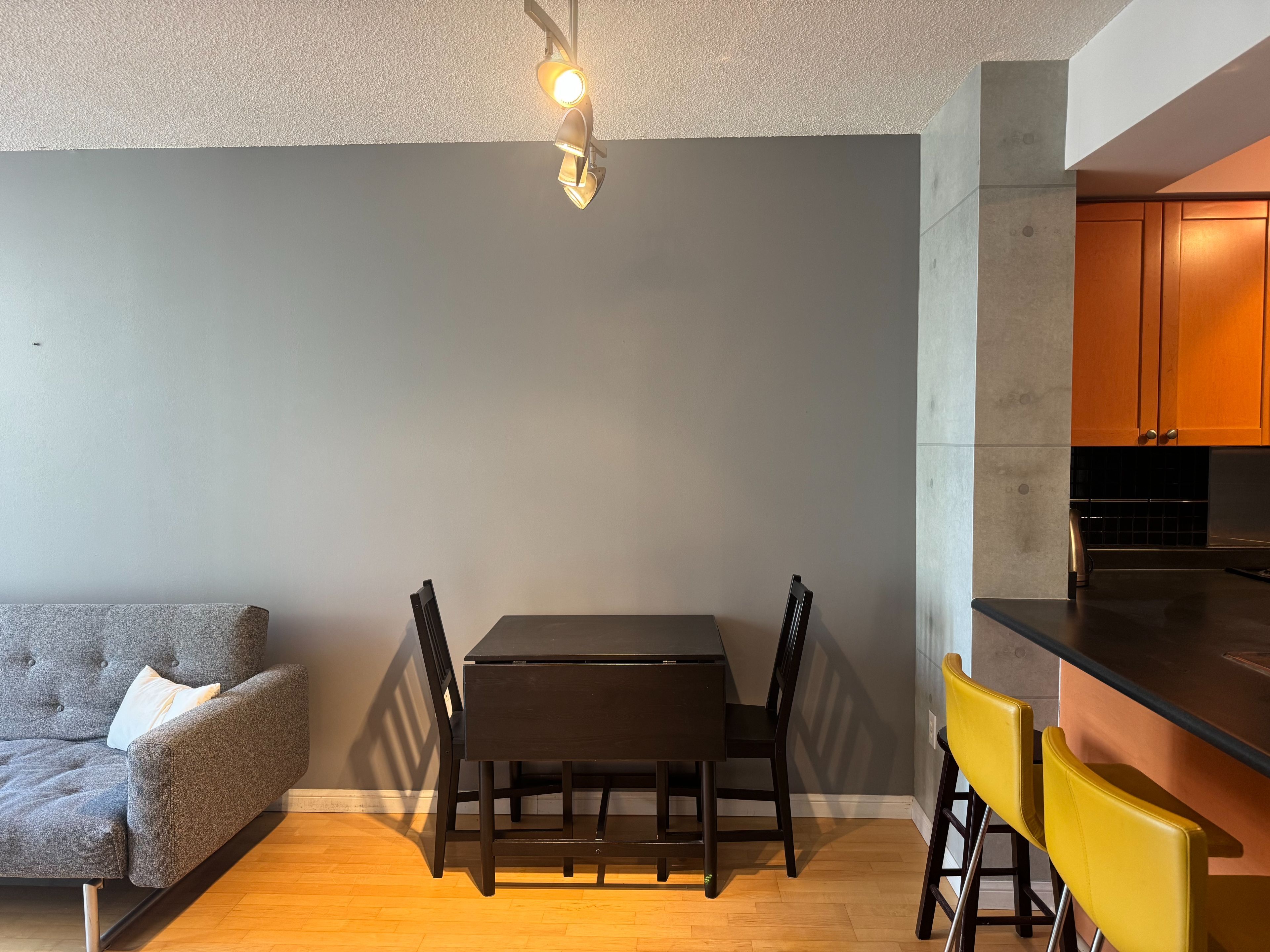 • Bright penthouse with a spacious open-concept living and dining area.