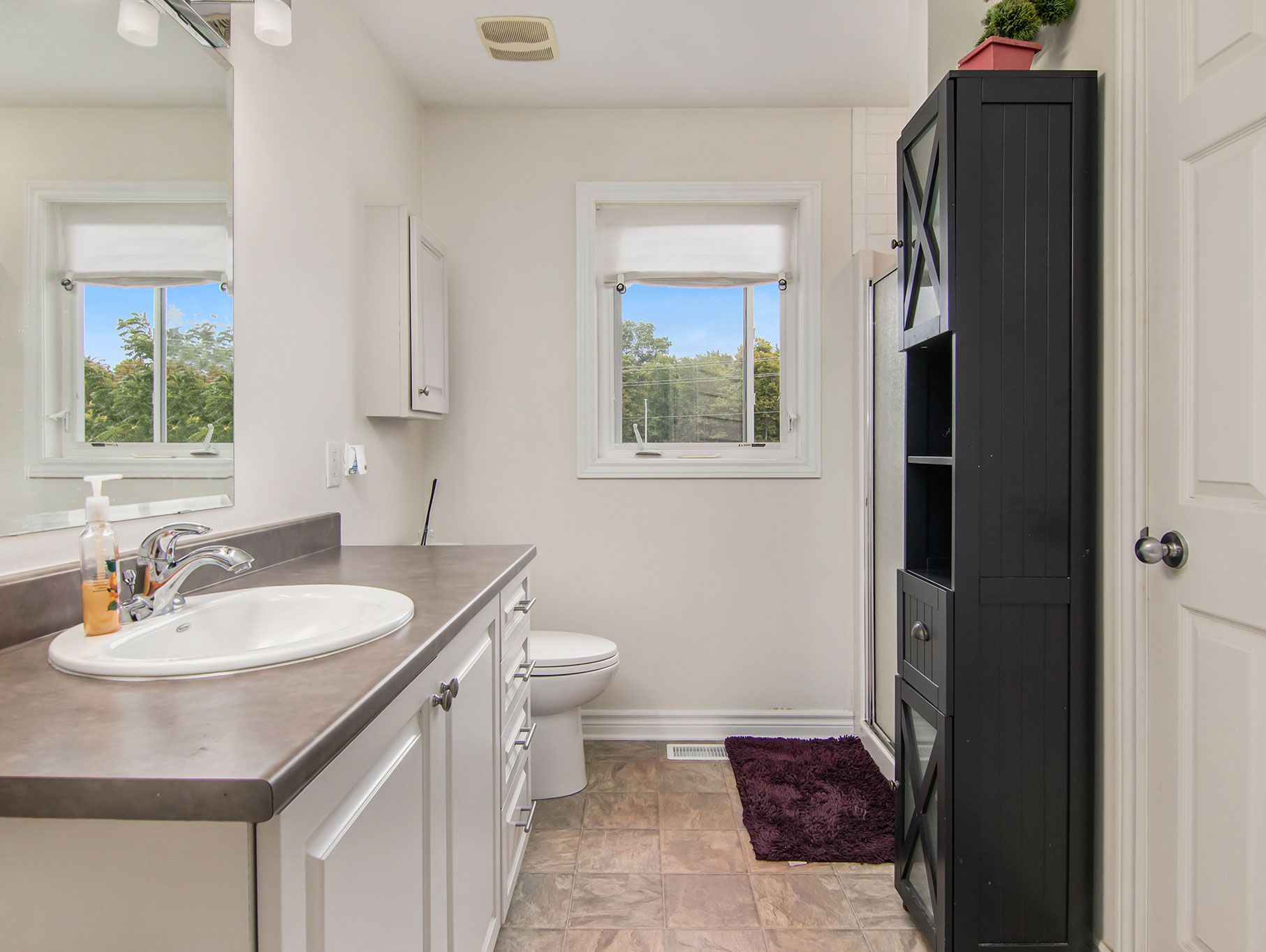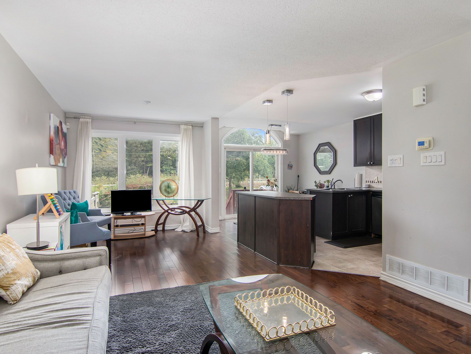 • Bright main level features hardwood floors, large windows, and a convenient kitchen layout.