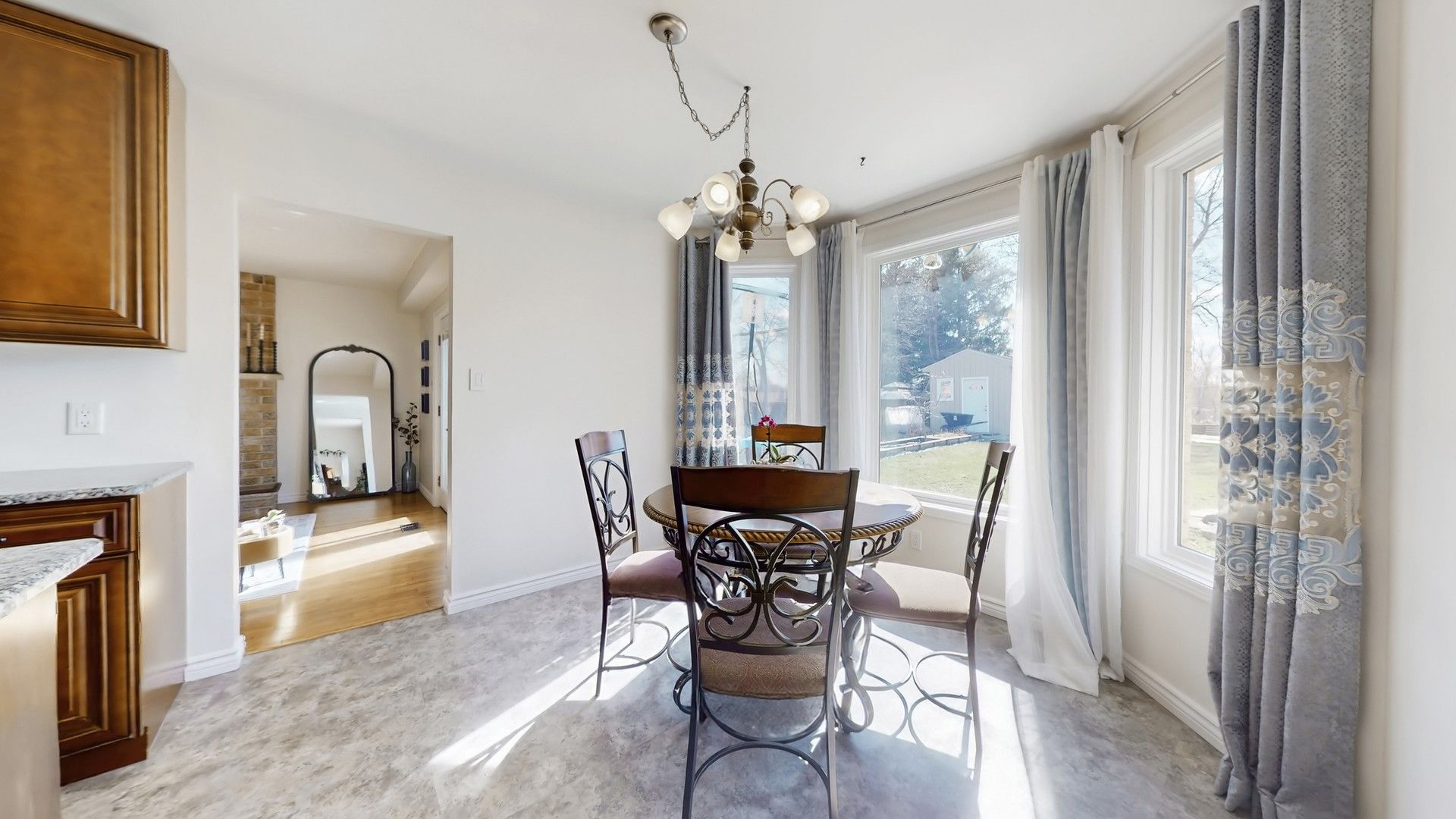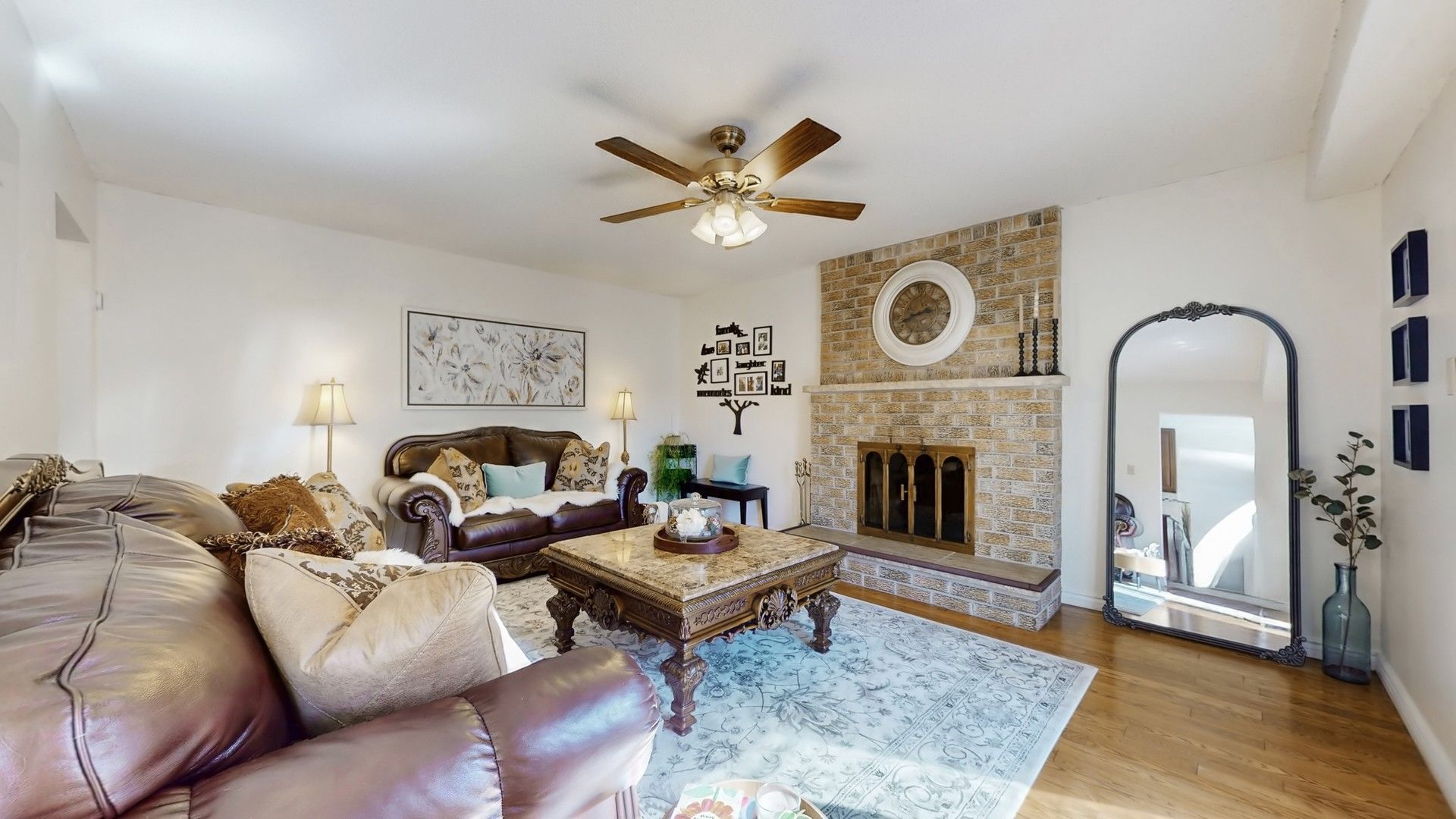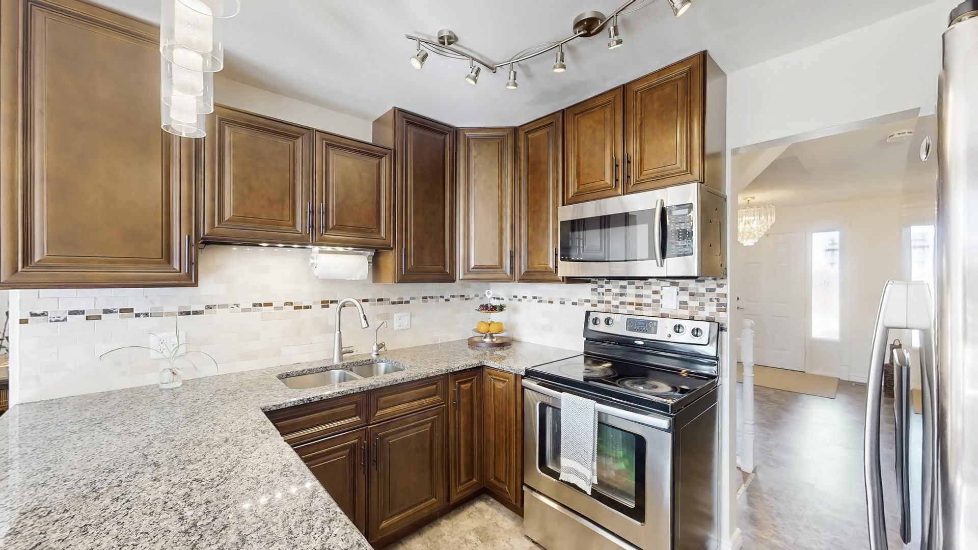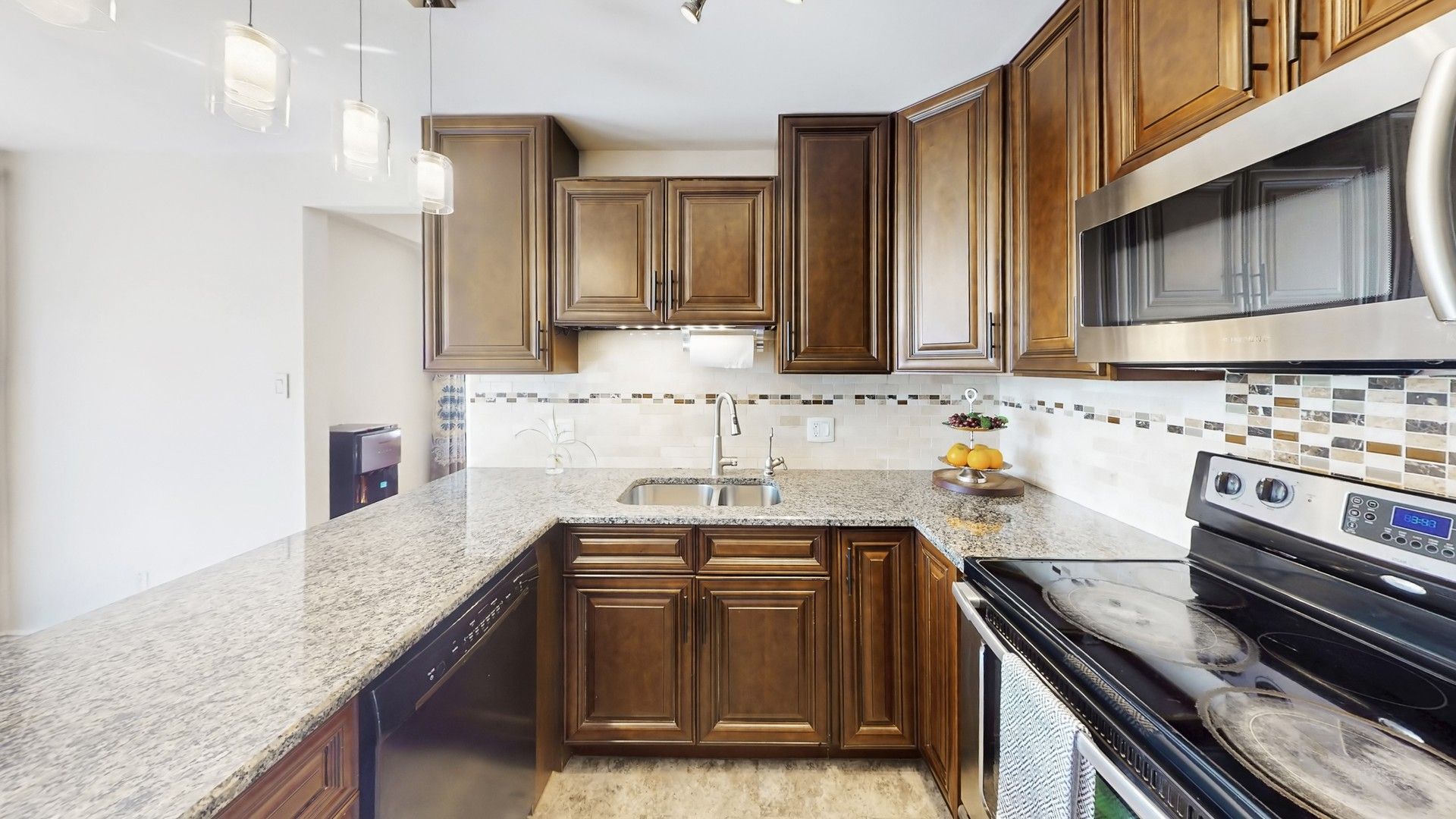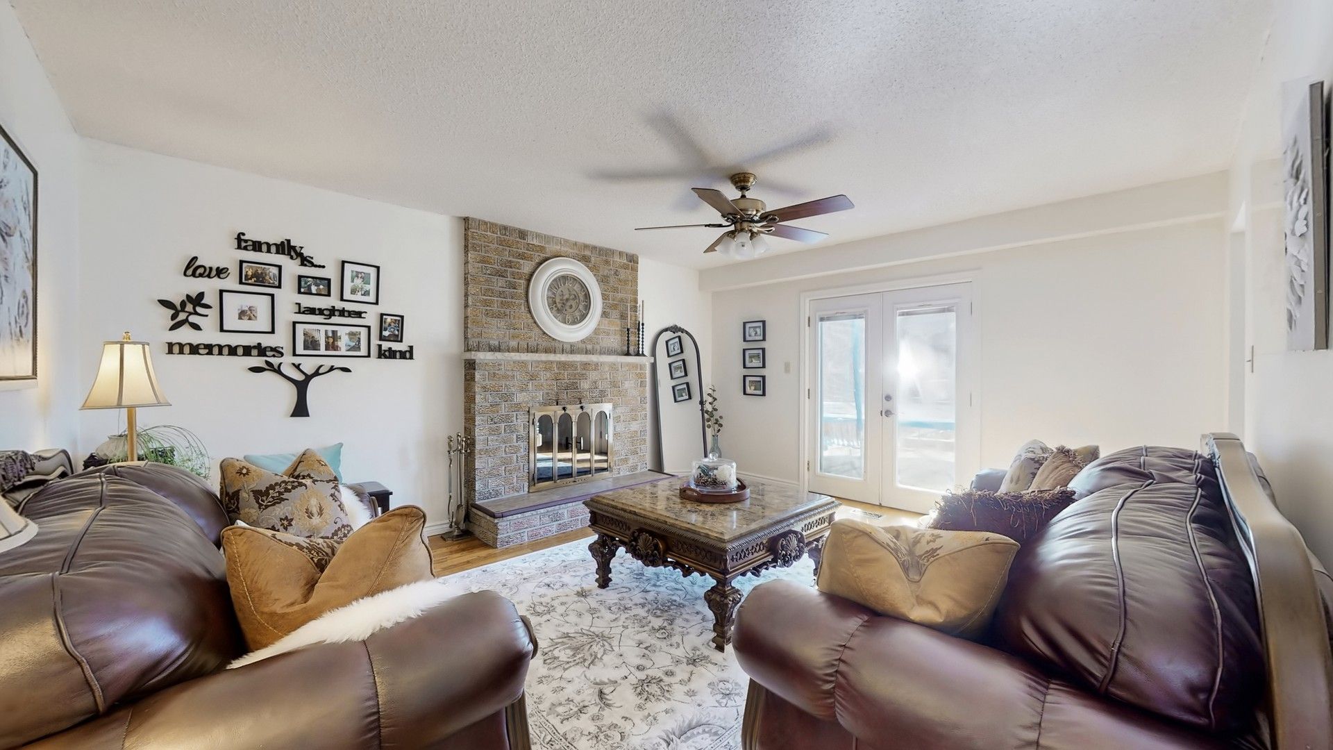• Upgraded kitchen with granite countertops and a cozy family room fireplace.