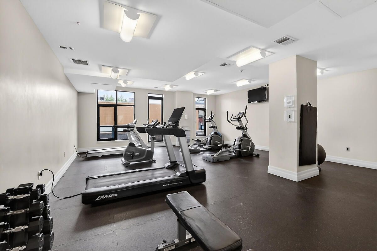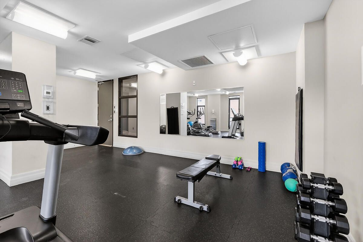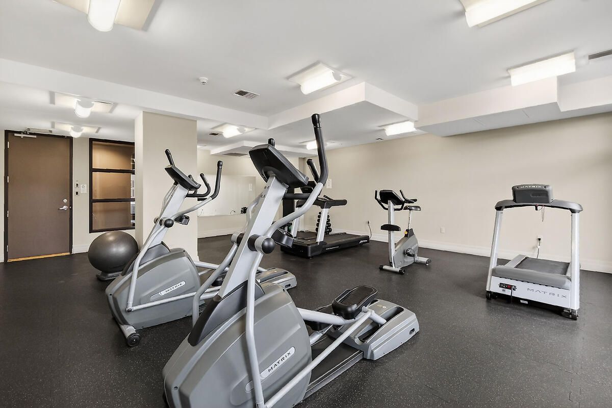 • Access to a fully-equipped gym, party room, and bike storage.