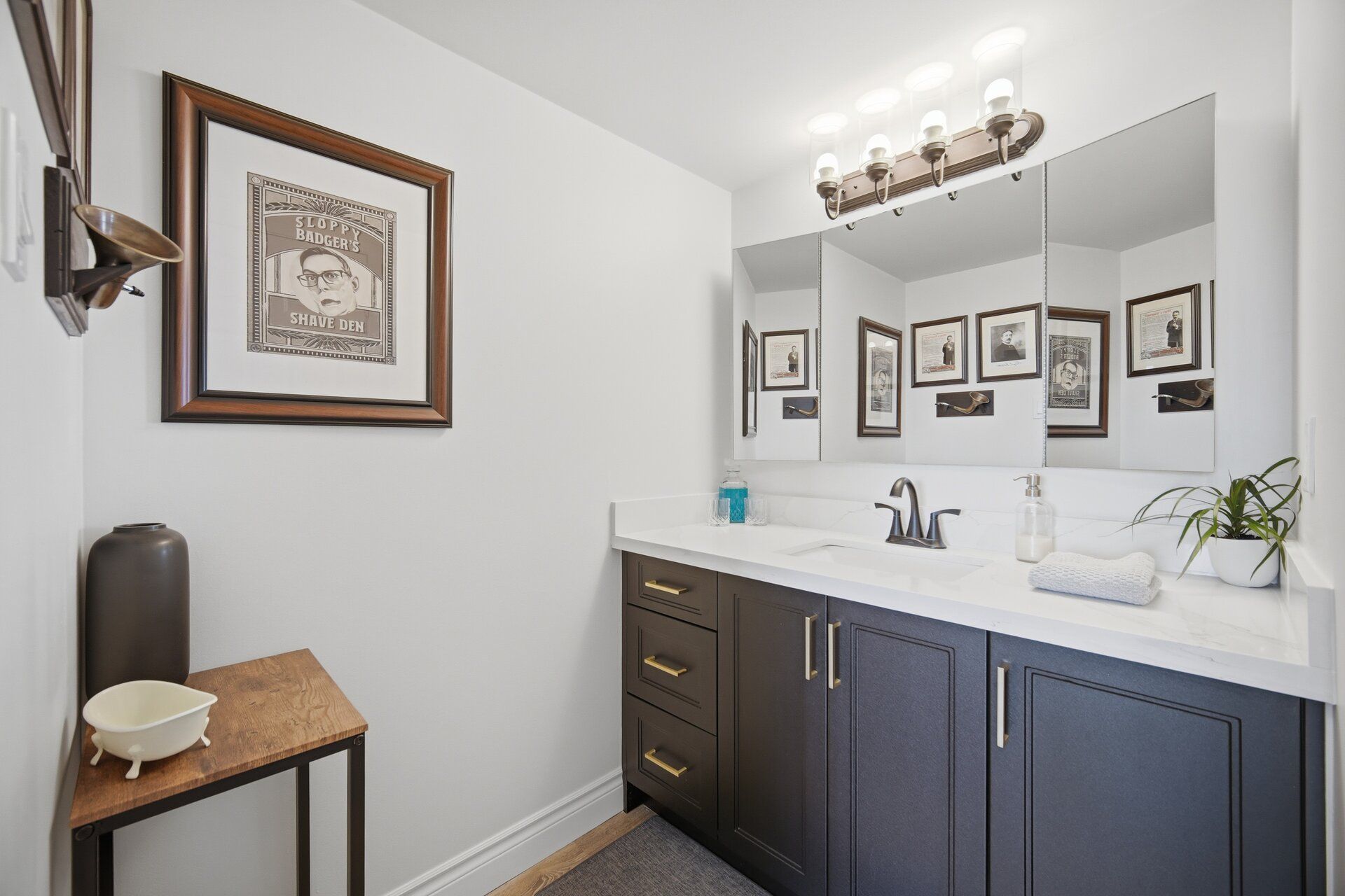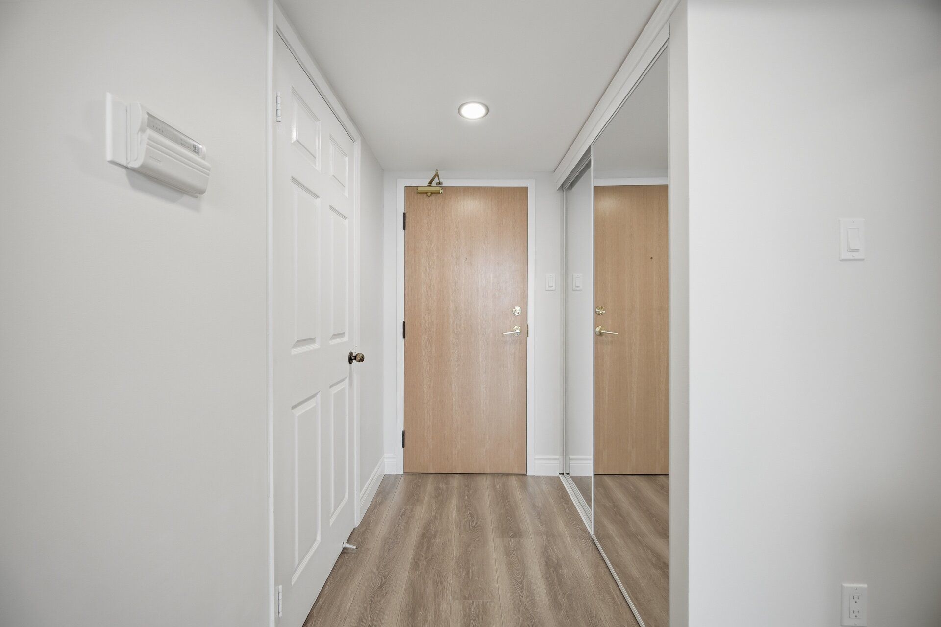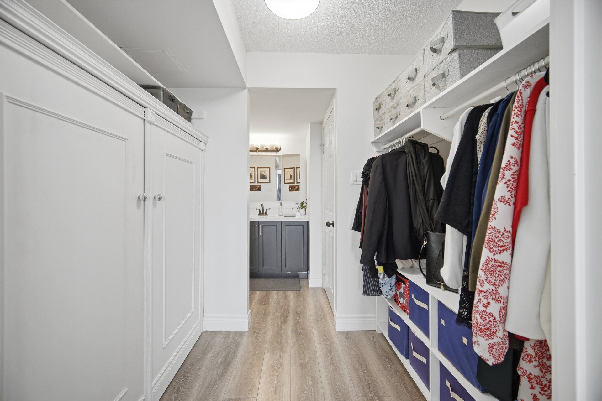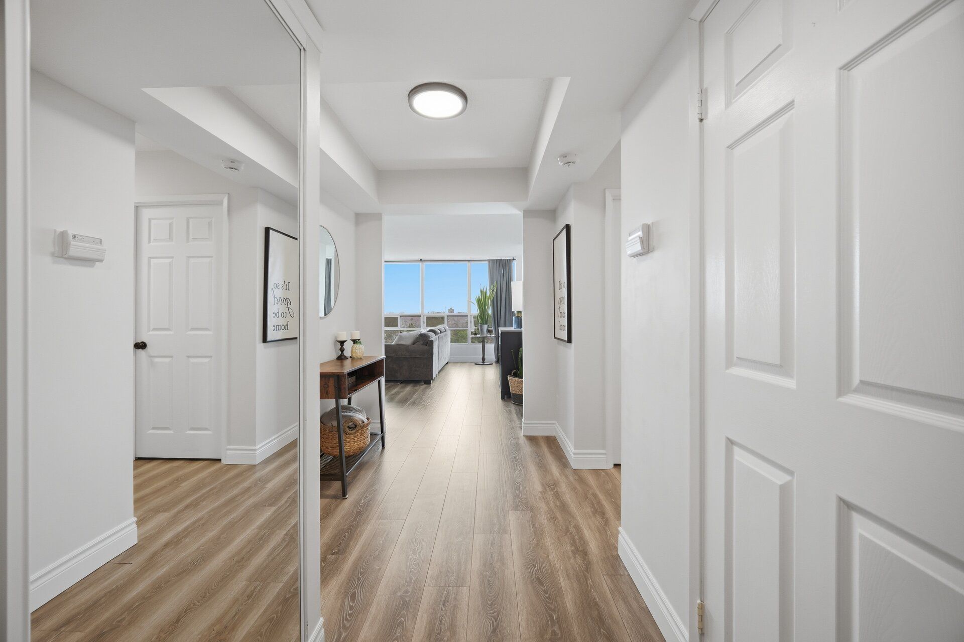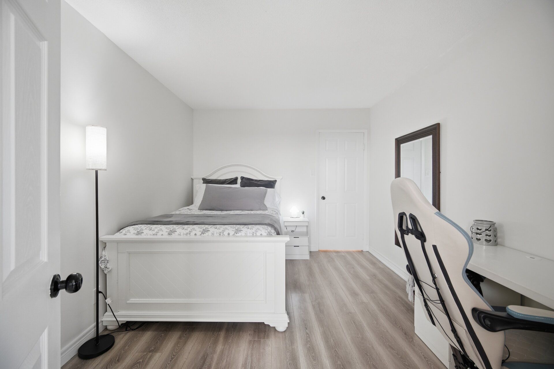 • Modern white kitchen with stylish finishes and upgraded vinyl flooring.