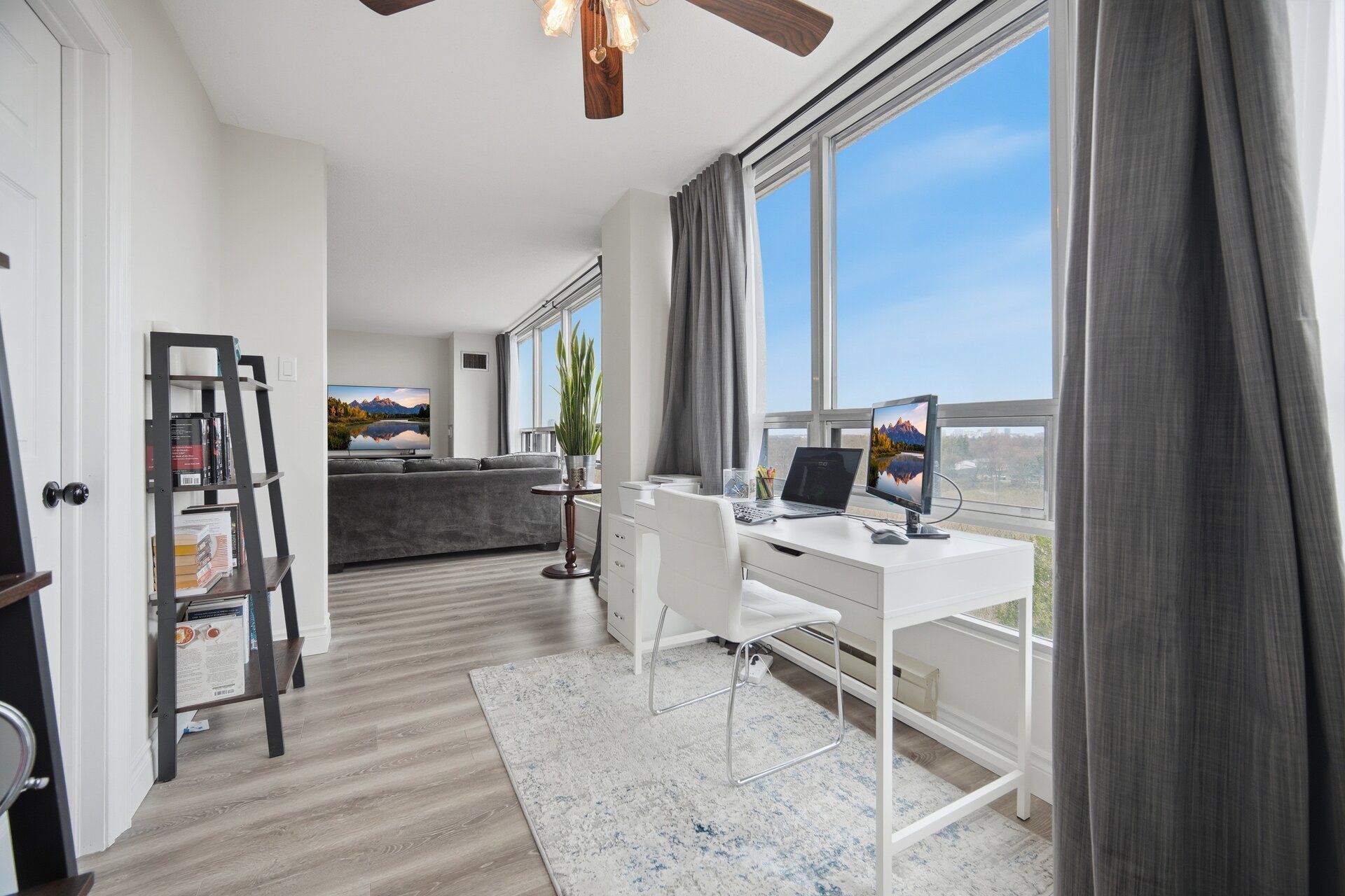 Stunning renovated 2+1 bedroom condo offering 1239 sq ft of elegant bright move in ready living space! This spacious 2+1 bedroom, 2 bathroom features an unobstructed east-facing view overlooking ravine. Enjoy a sleek designer white kitchen with modern finishes. Complemented by upgraded vinyl flooring throughout. The versatile den is perfect for a home office or guest space. Enjoy the convenience of 2 parking spaces and 1 locker, a rare and valuable feature. Ideally located within walking distance to public transit, shopping and all essential amenities. This condo offers perfect blend of style, space and location.