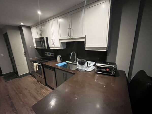 • Equipped with granite countertops and in-suite laundry for convenience.