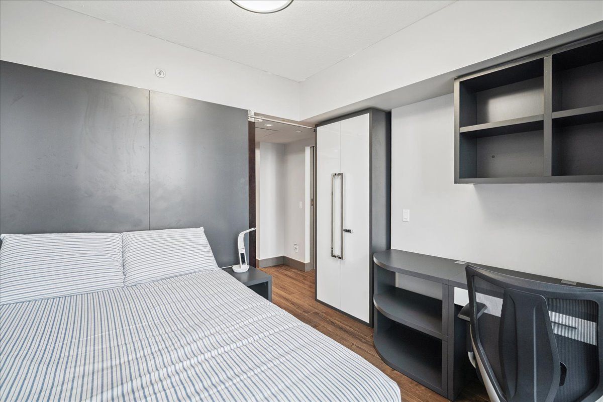 Welcome to 330 phillip street a bright and modern 1-bedroom + large den, 1-bathroom condo offering approximately 547 sq ft of stylish living space. Designed for comfort and convenience, this unit features granite kitchen countertops, in-suite laundry, a 3-piece bathroom. Den can be used as a second bedroom, includes closet, double bed and desk. 1 parking and locker. Perfect for investors or families with students attending the university of waterloo, wilfrid laurier university, or nearby colleges. This property offers excellent rental income potential in a prime, high-demand location. Residents enjoy access to premium building amenities, including a fully equipped gym, yoga studio, sauna, rooftop patio with fire pit, basketball court, theatre and games rooms, multiple study lounges, and on-site retail shops.