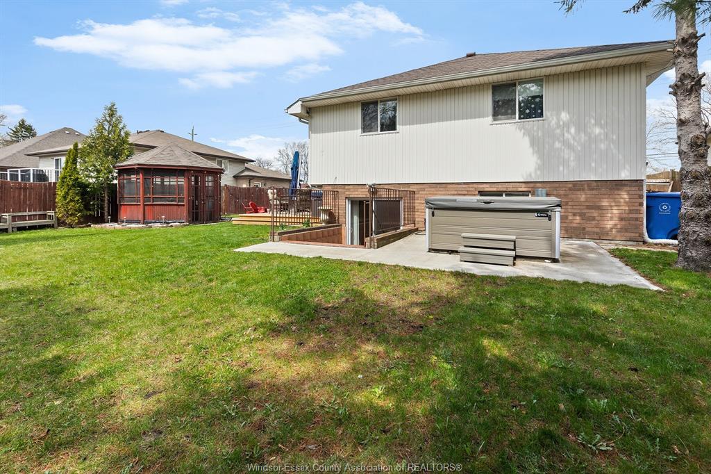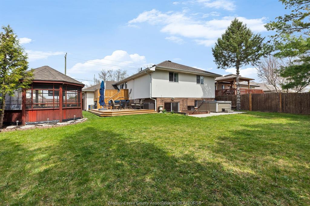Welcome to 330 reaume rd, lasalle. This beautifully maintained raised ranch offers aprox 2600 sq ft of finished living space with 4 bedrooms and 2 full baths, located just steps from the turtle club. The main floor features 3 spacious bedrooms, and full bath with skylight, bright kitchen, dining room, living room, and grand foyer filled with natural light. The lower level offers a large family room with grade entrance, plenty of storage, and an oversized 4th bedroom with a nearby 3pcs bath, perfect for guests or a private retreat. Step outside to enjoy the new massive two-tier deck (2024), and hot tub (2021) and gazebo with hydro ideal for entertaining. Bonus: golf simulator (2025) can be included with your offer. Key updates include furnace/a/c (2019), roof (2013). Move-in ready and packed with extras. Call today for your showing and make it "your best move yet".