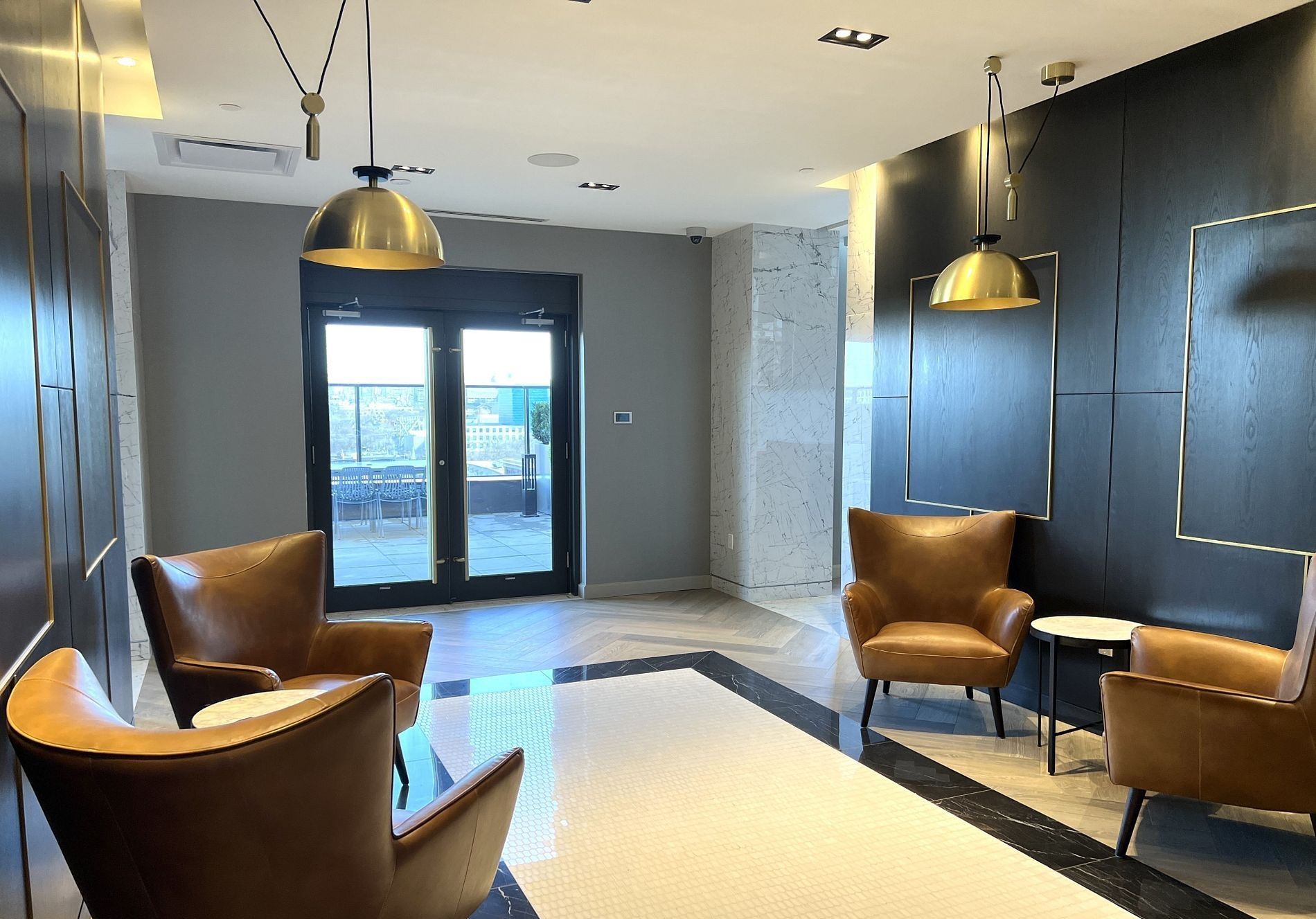 • Building amenities include fitness centre, pool, and sky lounge with panoramic views.