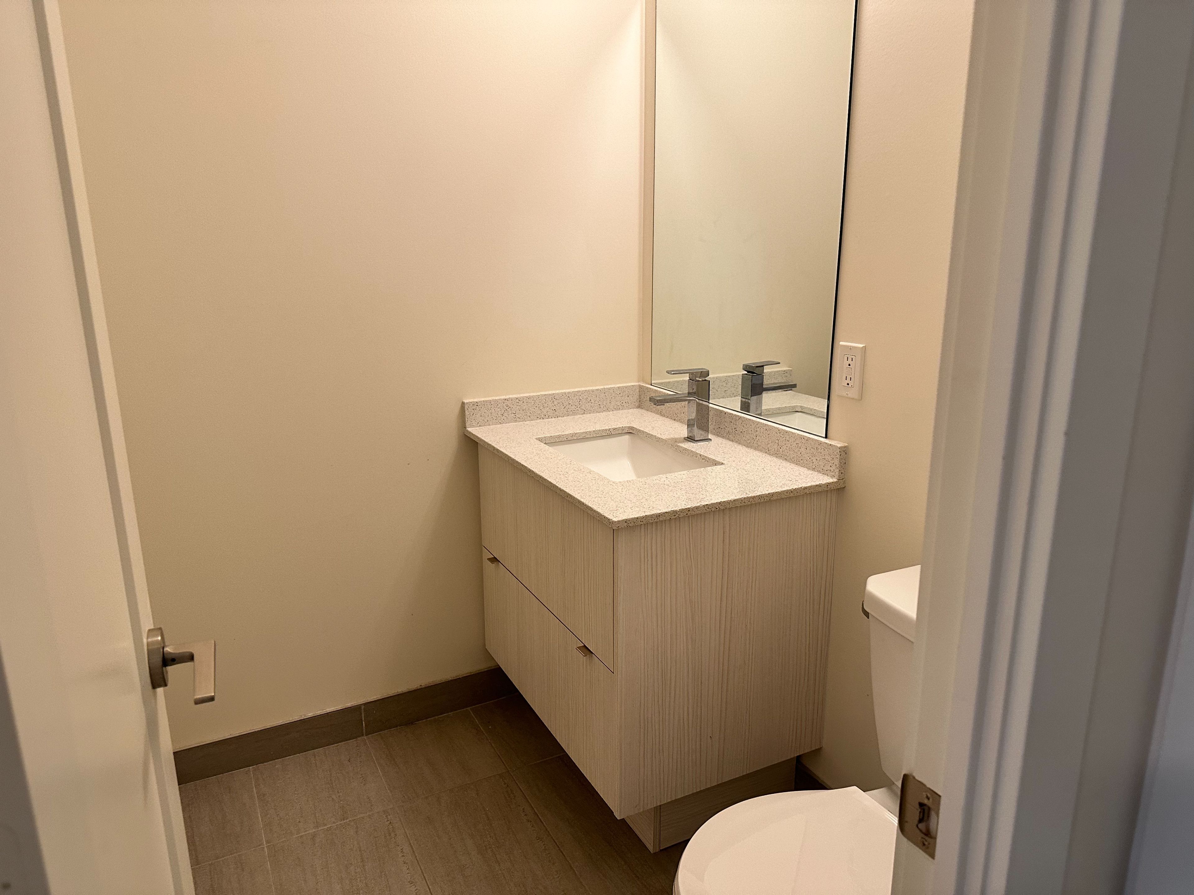 • Convenient coat closet and semi-ensuite bath for guests.