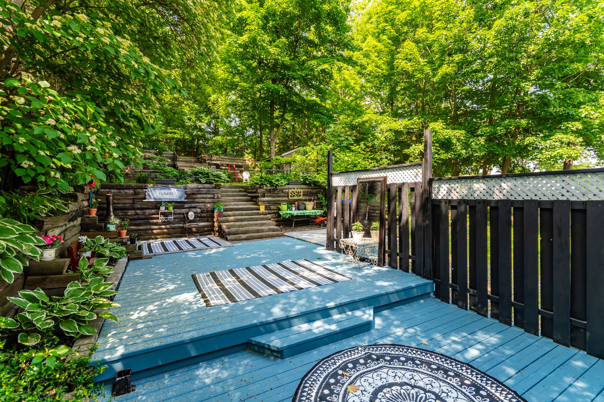 • Private three-tiered backyard with views of Georgian Bay and a large deck.