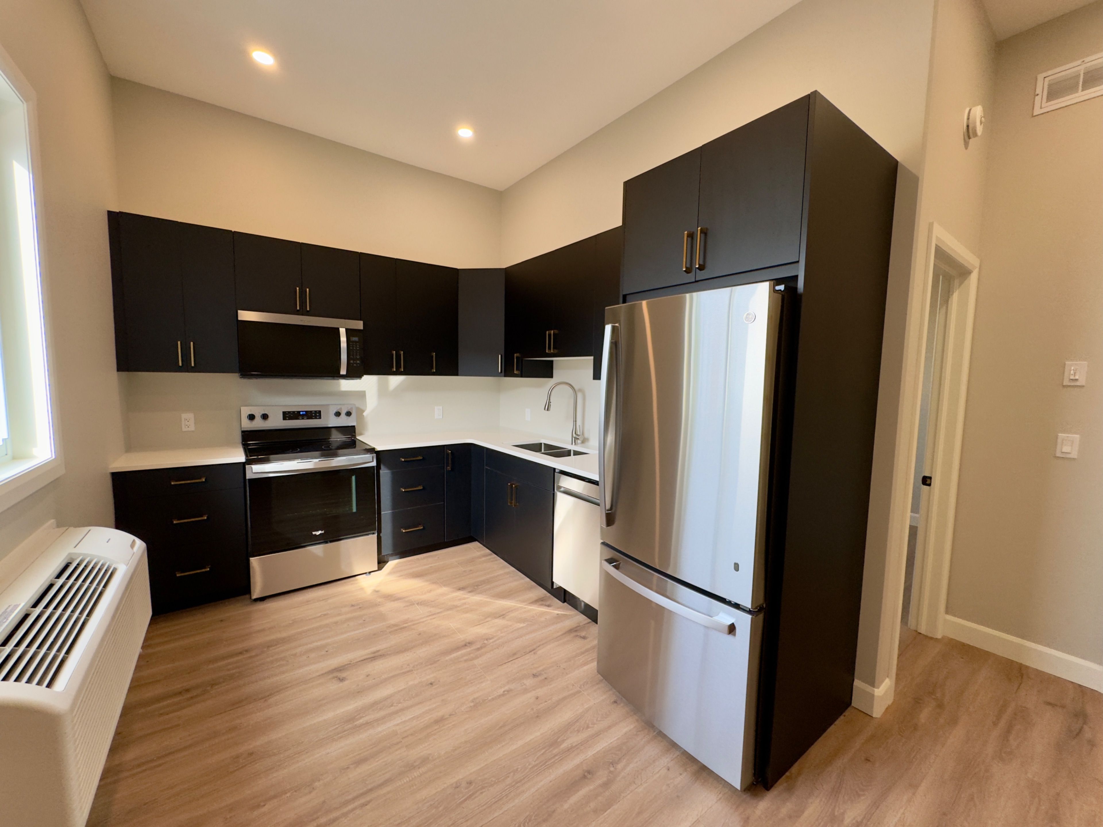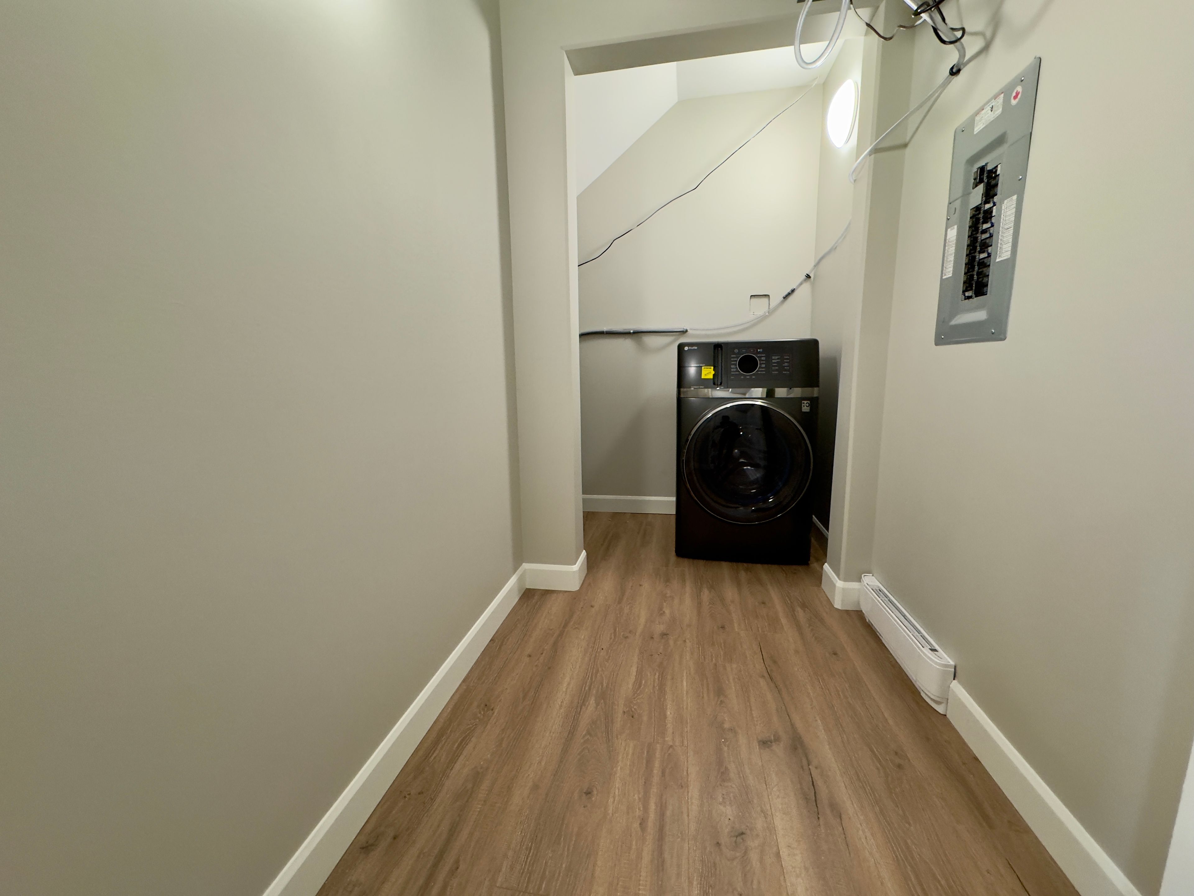 Be the first to live in this newly built one-bedroom, one-bathroom apartment inside a fully restored 1846 heritage building in the heart of tweed. This 500 sq ft main floor unit is part of a complete transformation taken back to bare bones and newly constructed from the inside out, combining timeless character with high-end modern finishes. The kitchen features custom black slab cabinetry with solid wood interiors, white quartz countertops, and brand new stainless steel appliances. The same quartz continues into the bathroom, which includes a tiled shower and tiled floors. The unit is finished with luxury vinyl plank flooring throughout, beautiful designer light fixtures, and ample pot lighting for bright, modern living. Enjoy the convenience of an in-suite all-in-one washer and dryer, a high-efficiency heat pump for heating and cooling, a dedicated hot water tank, and a private mechanical/storage room. One outdoor parking space is included. The building has all new hydro and water services, with separate meters for each unit. Tenant is responsible for all utilities (hydro, heat, and water). No pets and no smoking permitted. First and last months rent required. Located just steps from shops, cafes, parks, and the shores of stoco lake, this beautifully restored landmark offers small-town living with everyday convenience. Tweed is a vibrant, welcoming community with scenic trails and year-round recreation all just 30 minutes from belleville. Available immediately.
