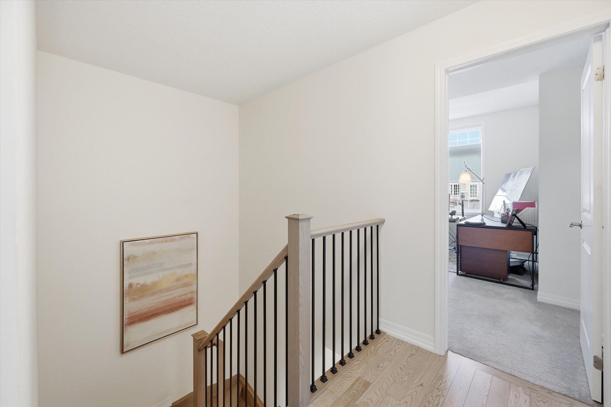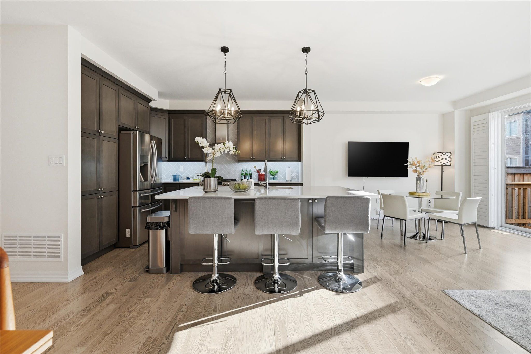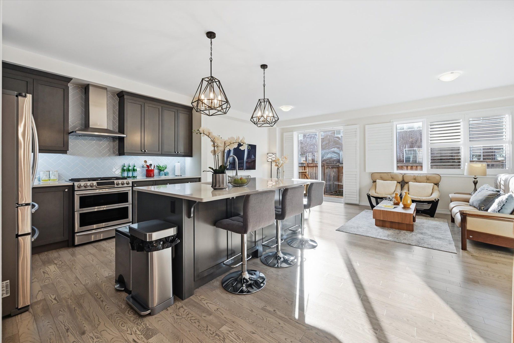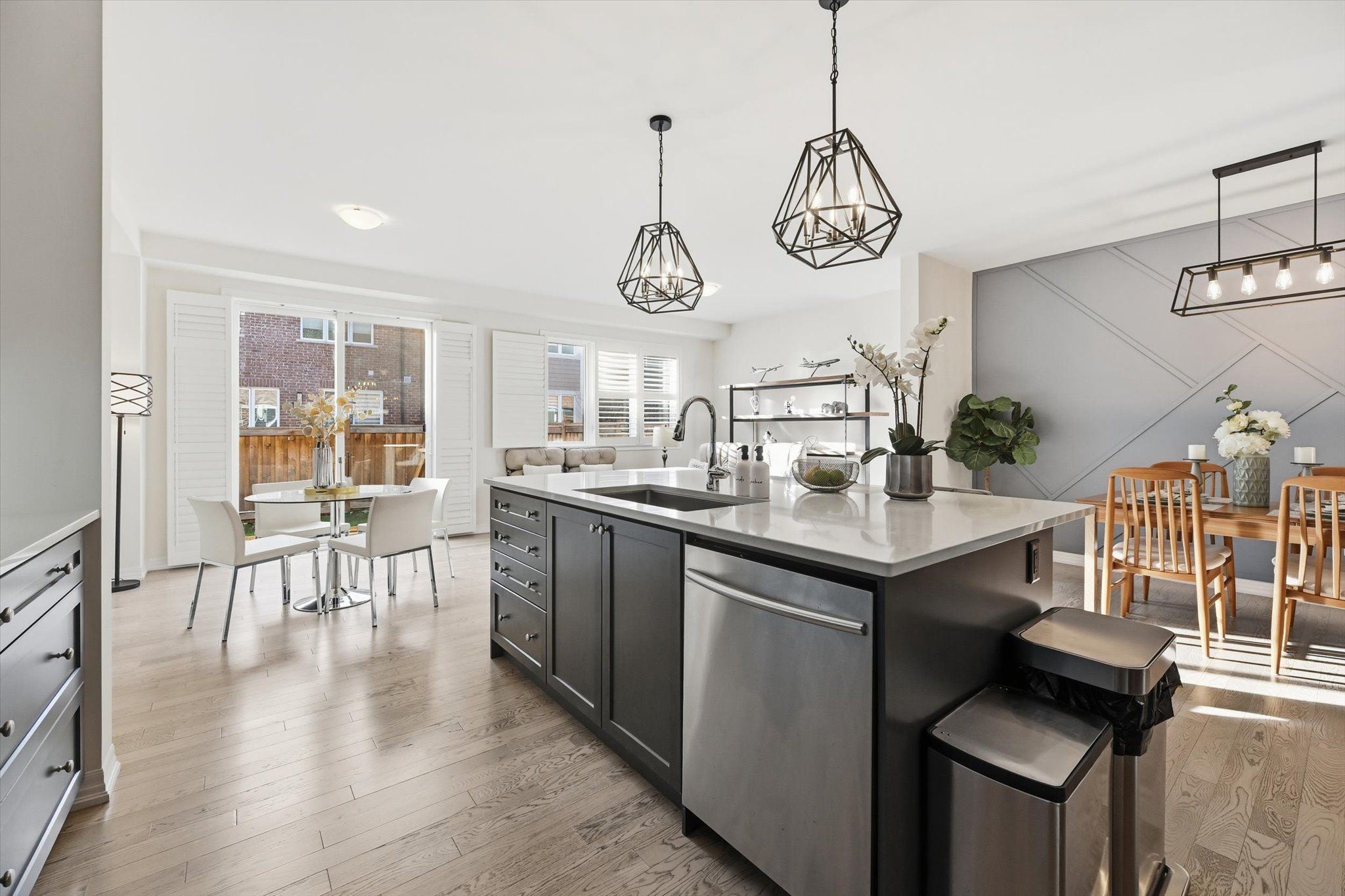 Quiet street in the preserve just steps to charles fay pond! This stunning two-storey freehold townhome offers nearly 2,000 square feet of upscale living space, thoughtfully designed for both family comfort and effortless entertaining. The main level features an airy open concept layout with engineered hardwood flooring, a sunken foyer, powder room, stylish dining room with a designer feature wall, and a spacious living room with a walkout to the backyard. The stunning gourmet kitchen showcases an abundance of soft-close cabinetry, pantry, quartz countertops, a designer backsplash, stainless steel appliances, and an oversized island with breakfast bar - perfect for casual meals and gatherings. Upstairs, the generous primary bedroom offers a walk-in closet and a spa-inspired four-piece ensuite with a freestanding soaker tub and frameless glass shower. Two additional bedrooms, a five-piece main bath with double sinks, and a convenient laundry room complete the upper level. Additional highlights include 9' ceilings throughout the main level, california shutters, an oak staircase with wrought iron pickets, engineered hardwood flooring throughout the upper hall, rough-in for central vacuum, inside entry from the garage, and a fully fenced backyard. Enjoy terrific curb appeal with stone accents on the front exterior. This coveted preserve neighbourhood offers close proximity to oodenawi public school, sixteen mile sports complex, parks and trails, shopping, restaurants, hospital, river oaks community centre, and everyday conveniences. A perfect blend of function, style, and an unbeatable glenorchy location!