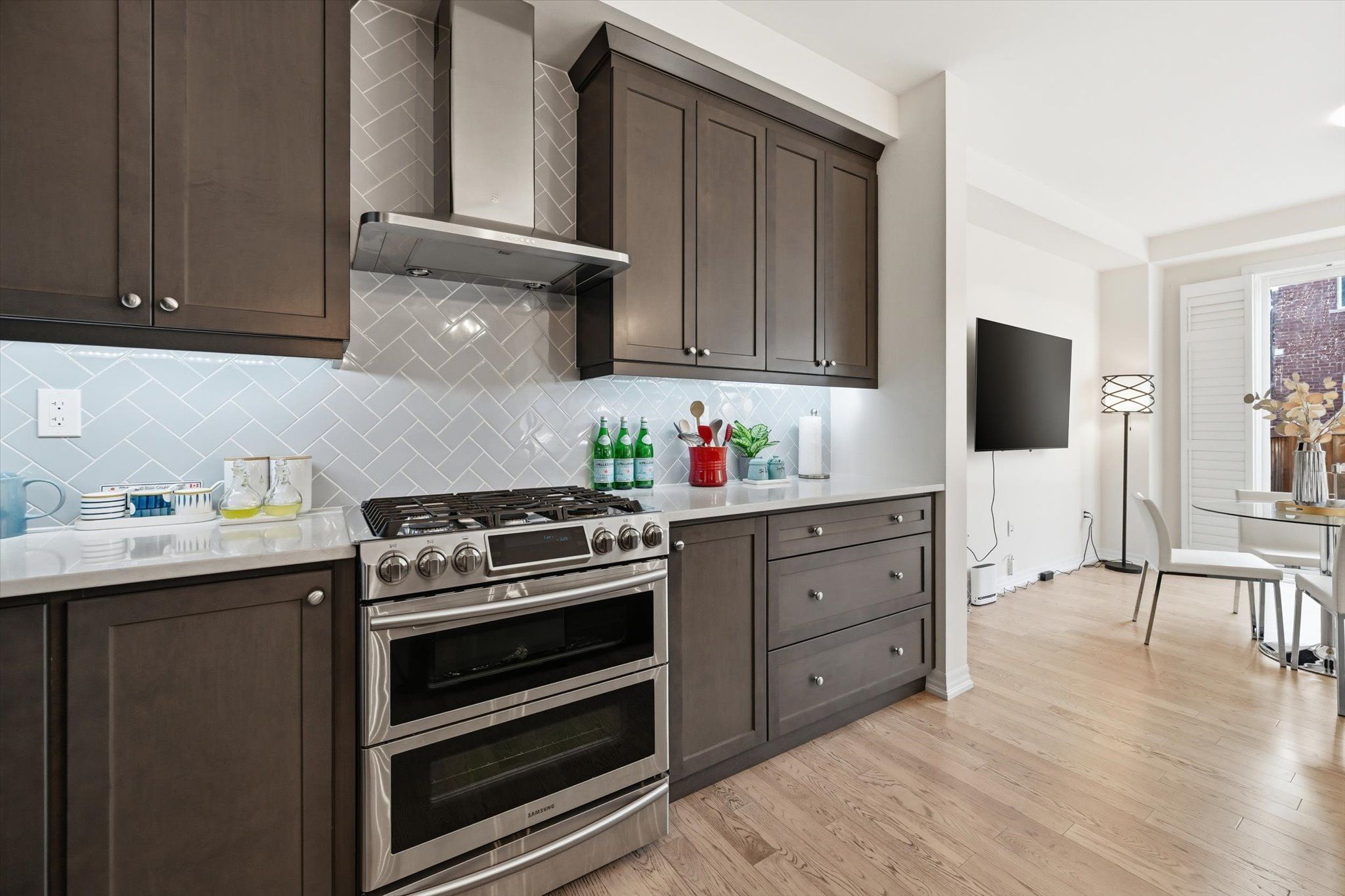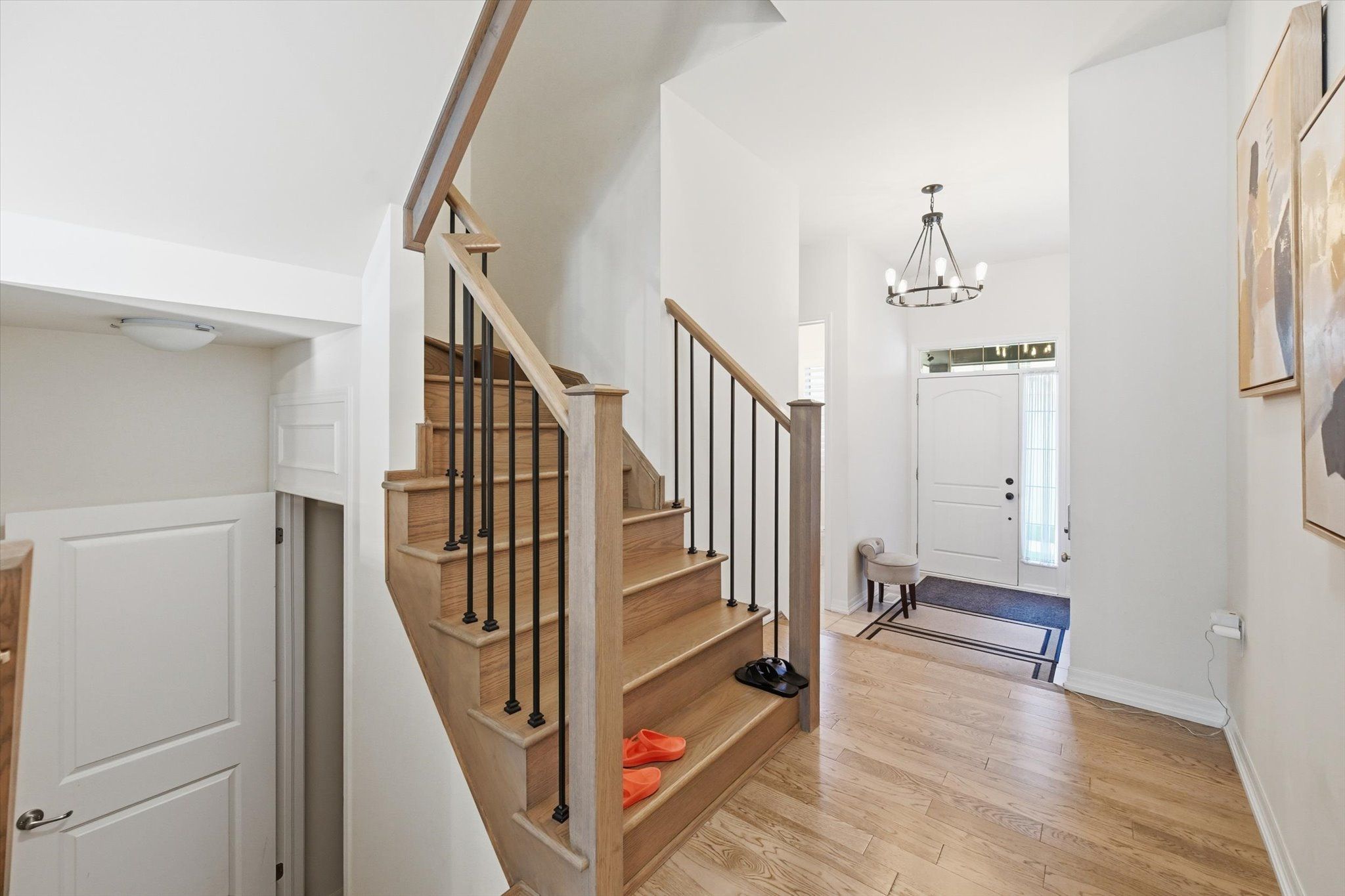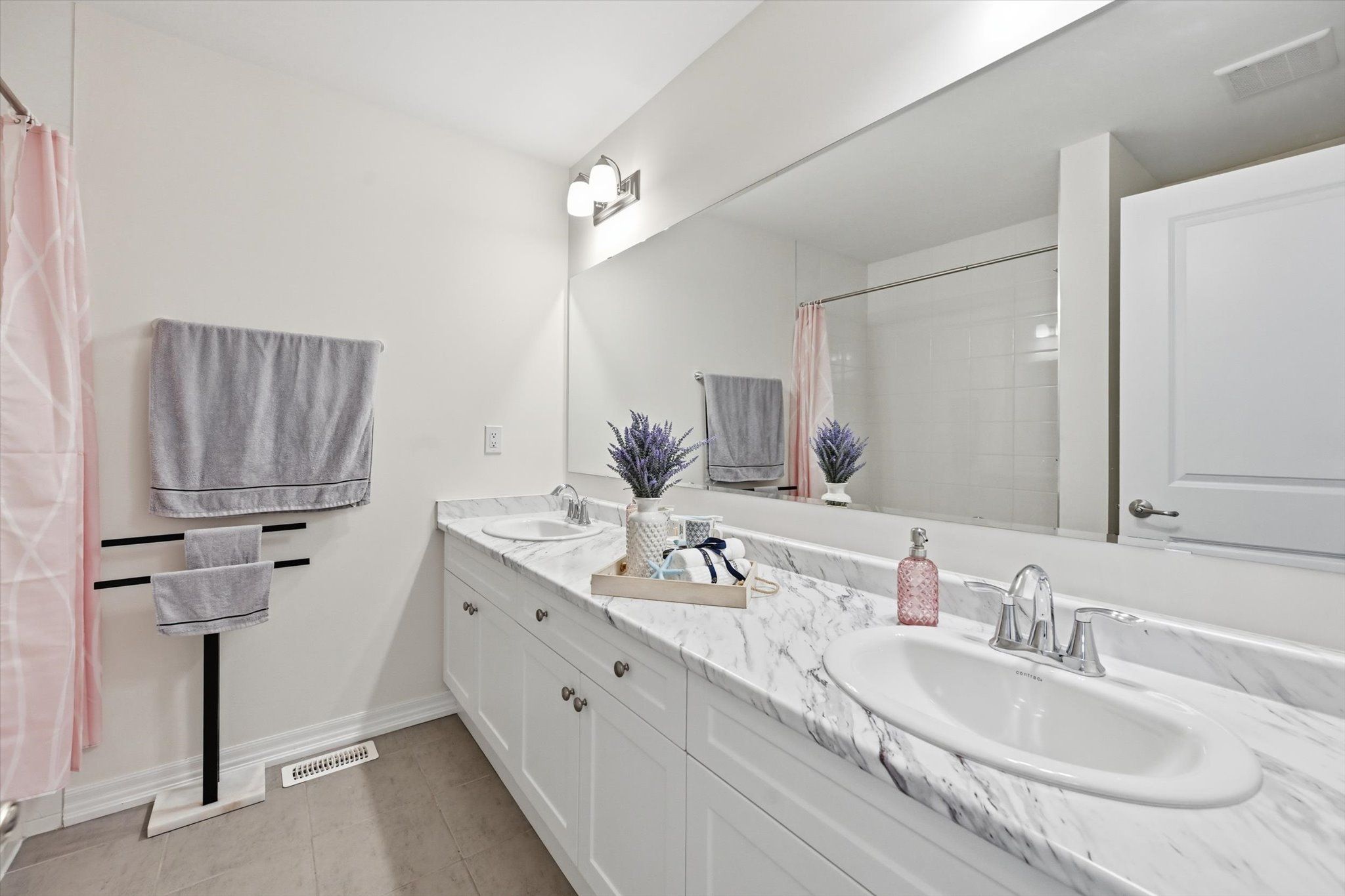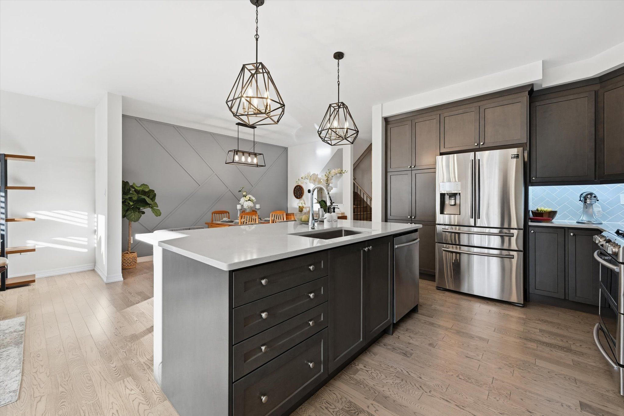 Quiet street in the preserve just steps to charles fay pond! This stunning two-storey freehold townhome offers nearly 2,000 square feet of upscale living space, thoughtfully designed for both family comfort and effortless entertaining. The main level features an airy open concept layout with engineered hardwood flooring, a sunken foyer, powder room, stylish dining room with a designer feature wall, and a spacious living room with a walkout to the backyard. The stunning gourmet kitchen showcases an abundance of soft-close cabinetry, pantry, quartz countertops, a designer backsplash, stainless steel appliances, and an oversized island with breakfast bar - perfect for casual meals and gatherings. Upstairs, the generous primary bedroom offers a walk-in closet and a spa-inspired four-piece ensuite with a freestanding soaker tub and frameless glass shower. Two additional bedrooms, a five-piece main bath with double sinks, and a convenient laundry room complete the upper level. Additional highlights include 9' ceilings throughout the main level, california shutters, an oak staircase with wrought iron pickets, engineered hardwood flooring throughout the upper hall, rough-in for central vacuum, inside entry from the garage, and a fully fenced backyard. Enjoy terrific curb appeal with stone accents on the front exterior. This coveted preserve neighbourhood offers close proximity to oodenawi public school, sixteen mile sports complex, parks and trails, shopping, restaurants, hospital, river oaks community centre, and everyday conveniences. A perfect blend of function, style, and an unbeatable glenorchy location!