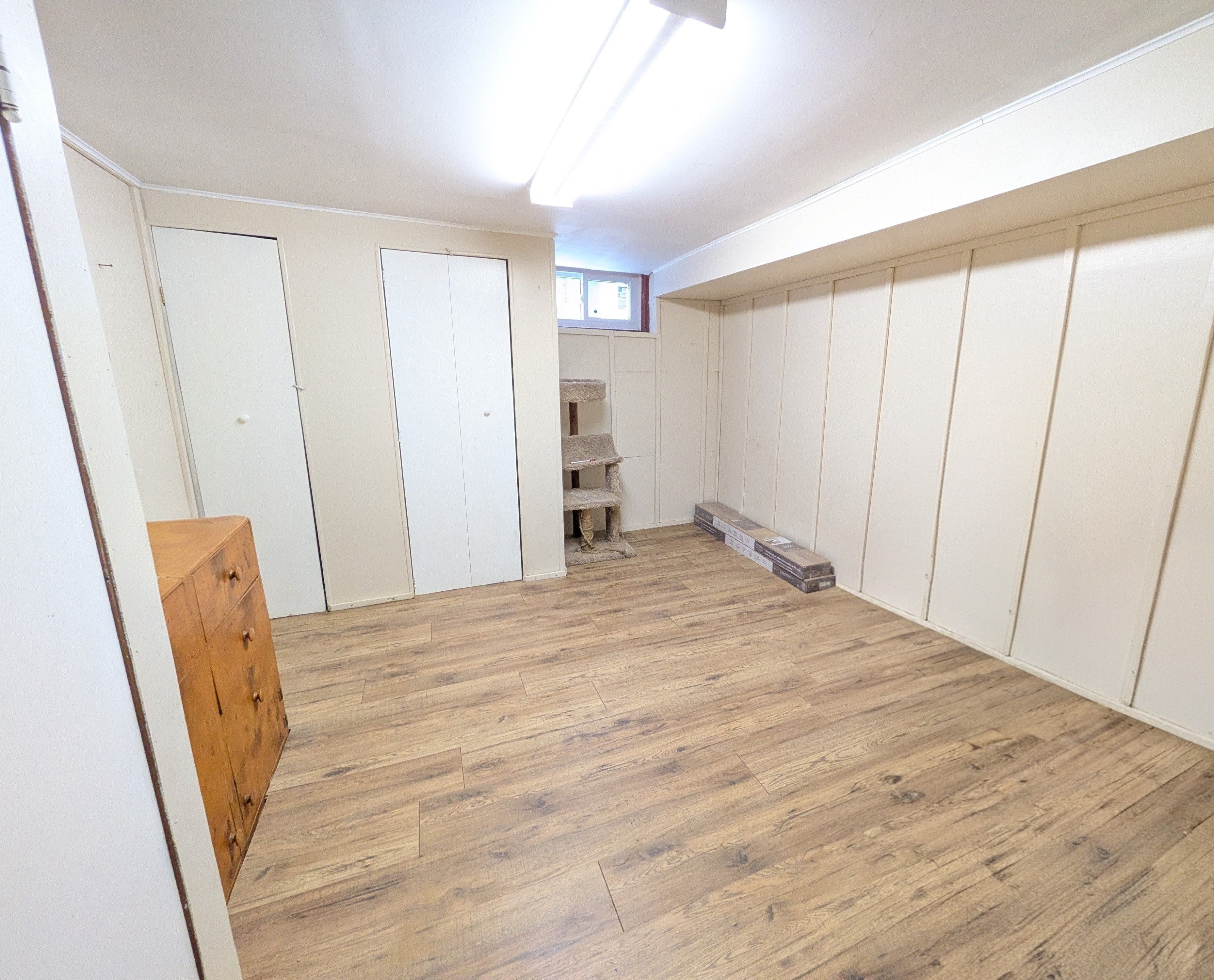 This cozy 2+1 bedroom, 2-bathroom bungalow offers comfort and great potential. Featuring a bright living space and functional kitchen, this home also includes a finished rec room-perfect for relaxation or extra living space. The fenced backyard is ideal for outdoor activities, while the bonus side yard could potentially be severed with city approval, offering future possibilities. The detached garage provides additional storage or could be transformed into a workshop. Located in a quiet neighborhood with easy access to amenities, this home is a great opportunity for those looking for a manageable property with room to grow.