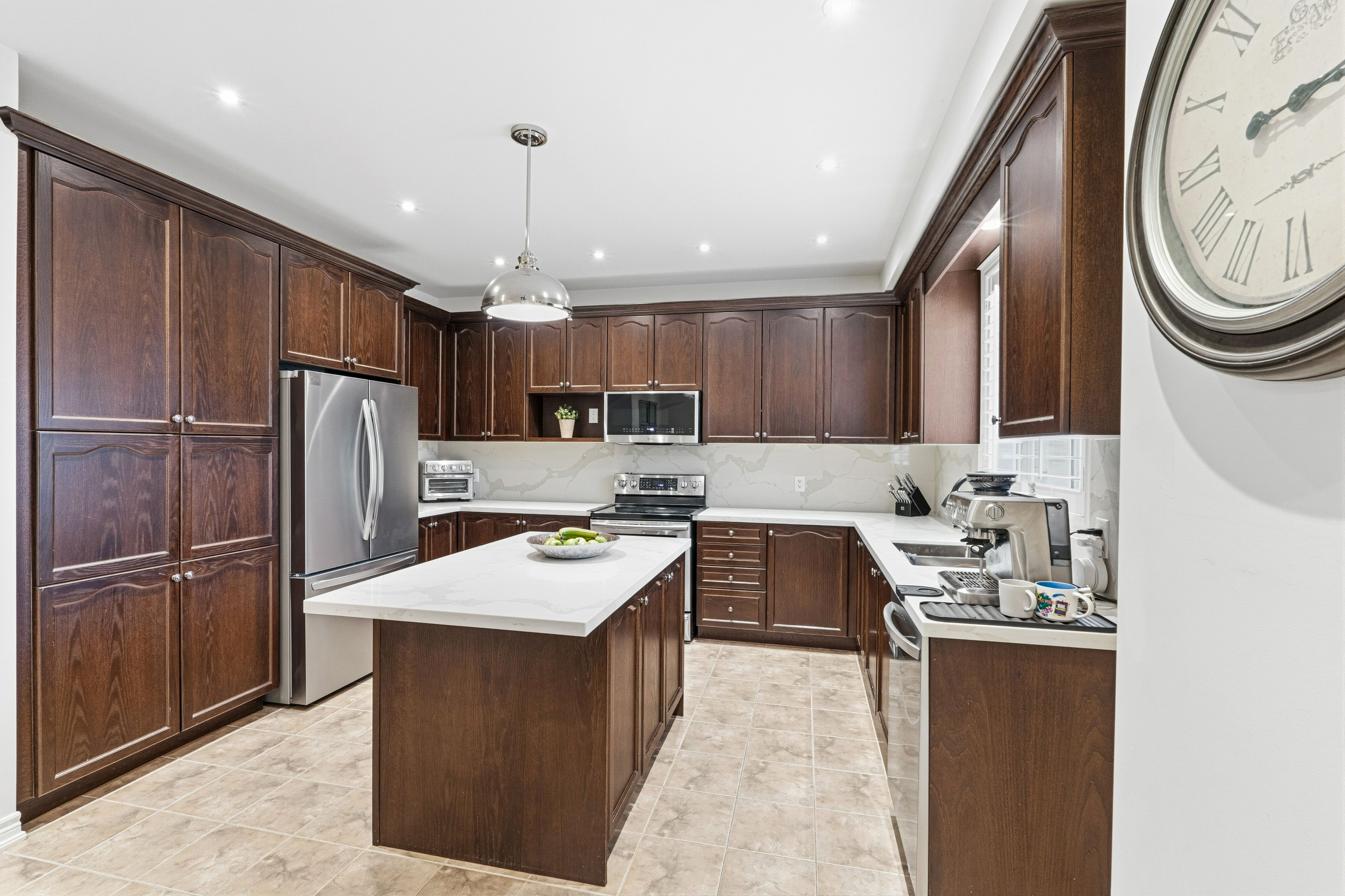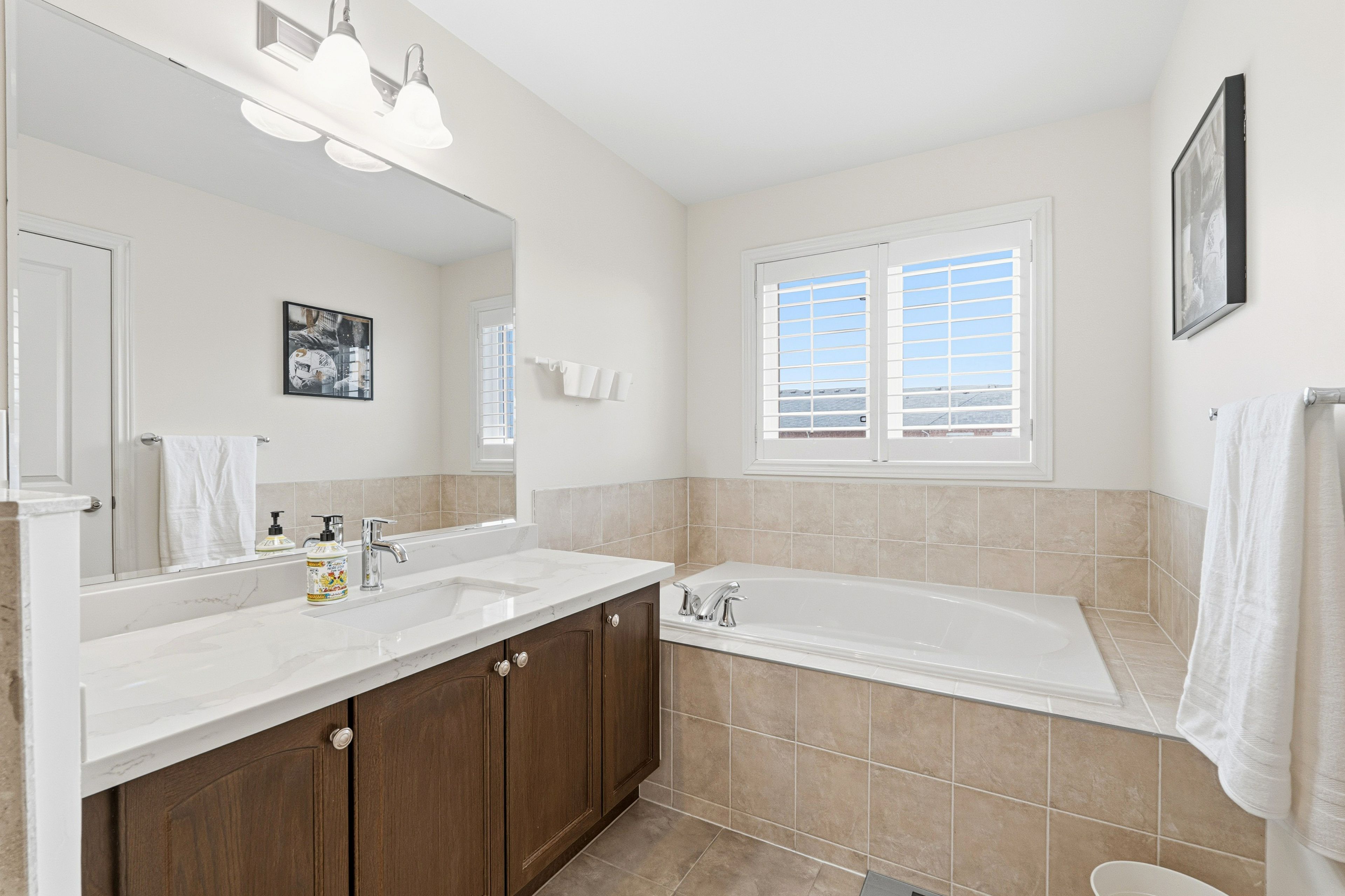 Welcome to 3302 robert brown blvd, a stunning freehold detached home in the highly desirable glenorchy community of oakville. Offering a fantastic layout with 9-ft ceilings on the main floor, this home combines modern style, comfort, and functionality for today's family living. The bright and spacious main level features hardwood flooring throughout, including the staircase, along with an open living and dining area highlighted by a cozy gas fireplace. The upgraded eat-in kitchen is equipped with stainless steel appliances, brand-new countertops and backsplash, and ample cabinetry perfect for everyday living and entertaining. The fully finished basement features a home theatre setup, creating the perfect entertainment space for movie nights and family gatherings. Upstairs offers two full bathrooms, including a spacious primary bedroom with a private ensuite, along with two additional well-sized bedrooms. The home also features beautiful front and backyard landscaping, plus a gas line for bbq, creating an ideal outdoor space for entertaining and relaxing summer evenings. Additional highlights include a tesla car charger installed in the garage, offering added convenience for electric vehicle owners. Ideally located just steps from the sixteen mile sports complex, part of a new community hub that includes a park, community centre, and library branch. Close to top-rated schools, parks, scenic trails, shopping, and major highways including the queen elizabeth way, highway 403, and highway 407. A lifetime opportunity not to be missed!