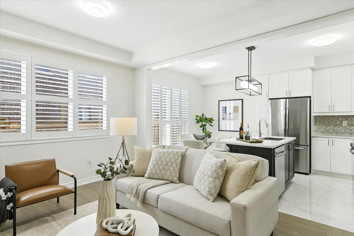 Welcome to this beautifully upgraded 3-spacious bedroom, 3-bathroom townhouse offering approximately 1,800 sq ft of modern living space. Featuring 9 ceilings on the main floor and 8 ceilings on the second floor, this home boasts an open-concept layout with a spacious living/dining area and a bright kitchen complete with a center island, 3 cm quartz countertops, tall cabinets, backsplash, and stainless steel appliances. The primary suite offers a generous 17x12 layout with a walk-in closet and a luxurious ensuite featuring a glass shower, bath oasis, and upgraded fixtures. The 2nd bedroom also includes its own walk-in closet, providing plenty of storage space. Additional highlights include 5 red oak hardwood floors throughout, oak stairs, 12x24 olympia tiles, riverside doors, california shutters, ecobee smart thermostat, and keyless garage entry. The lower level comes with a rec room ready package, 3-piece rough-in, and oversized windows perfect for future customization. Enjoy peace of mind with an owned tankless water heater, upgraded appliances, central air conditioning, garage opener, and a newly fenced backyard with warranty. With over $50,000 in upgrades, this move-in ready home blends style, comfort, and functionality perfect for modern family living.