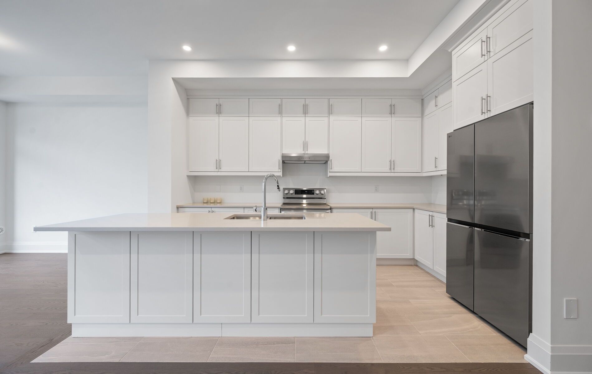 • Upgraded kitchen features quartz countertops and ceiling-height cabinetry.