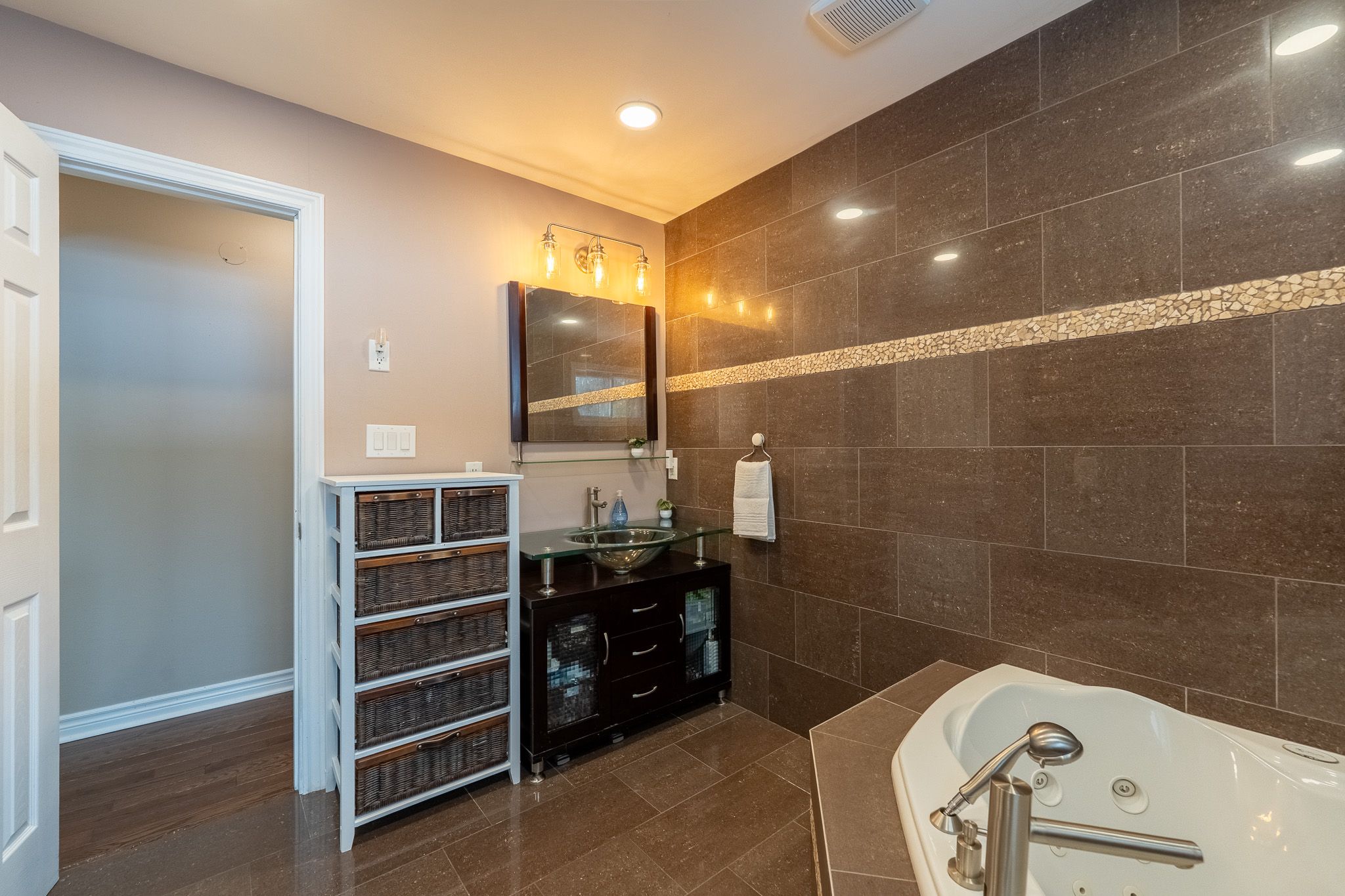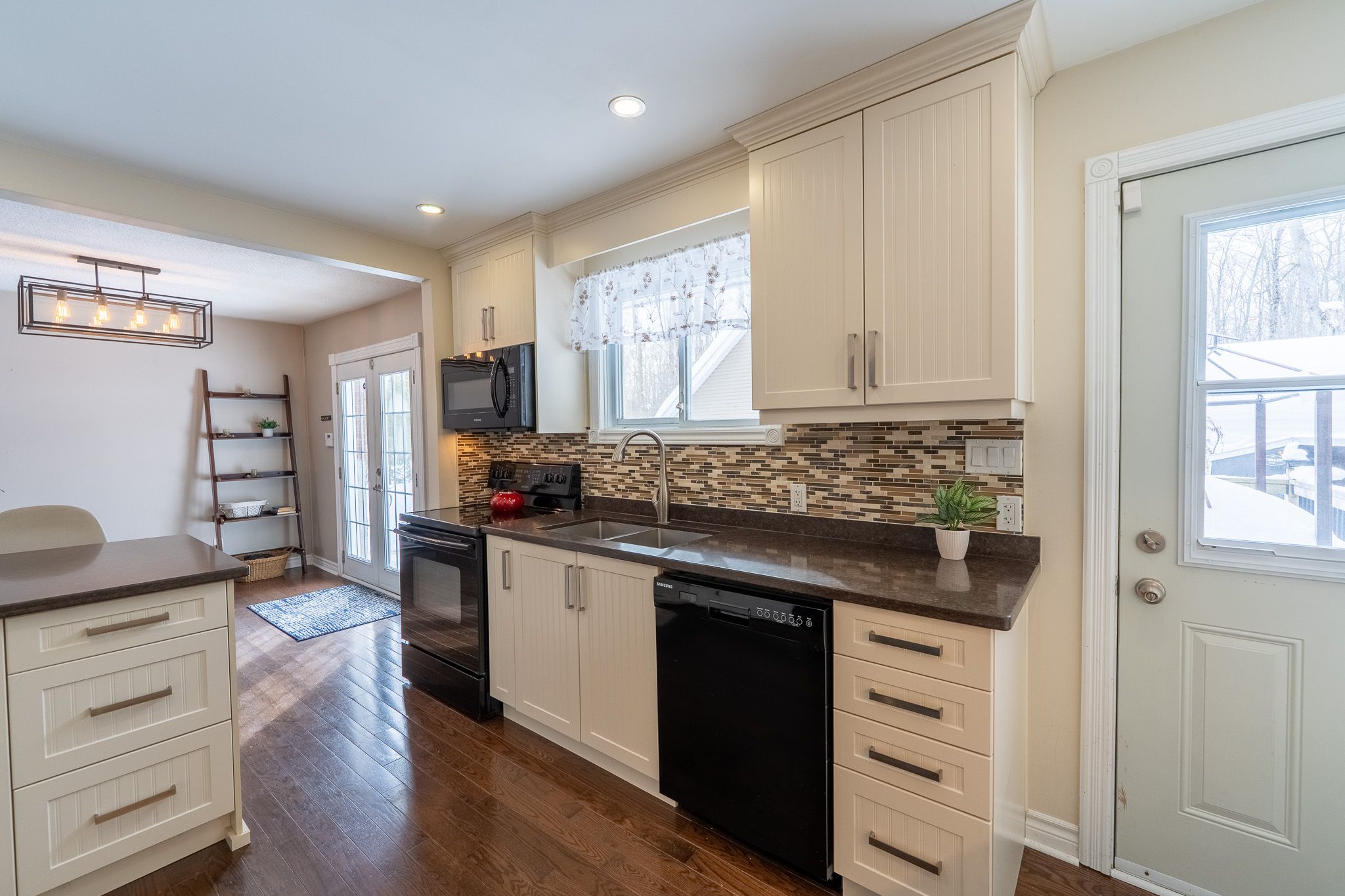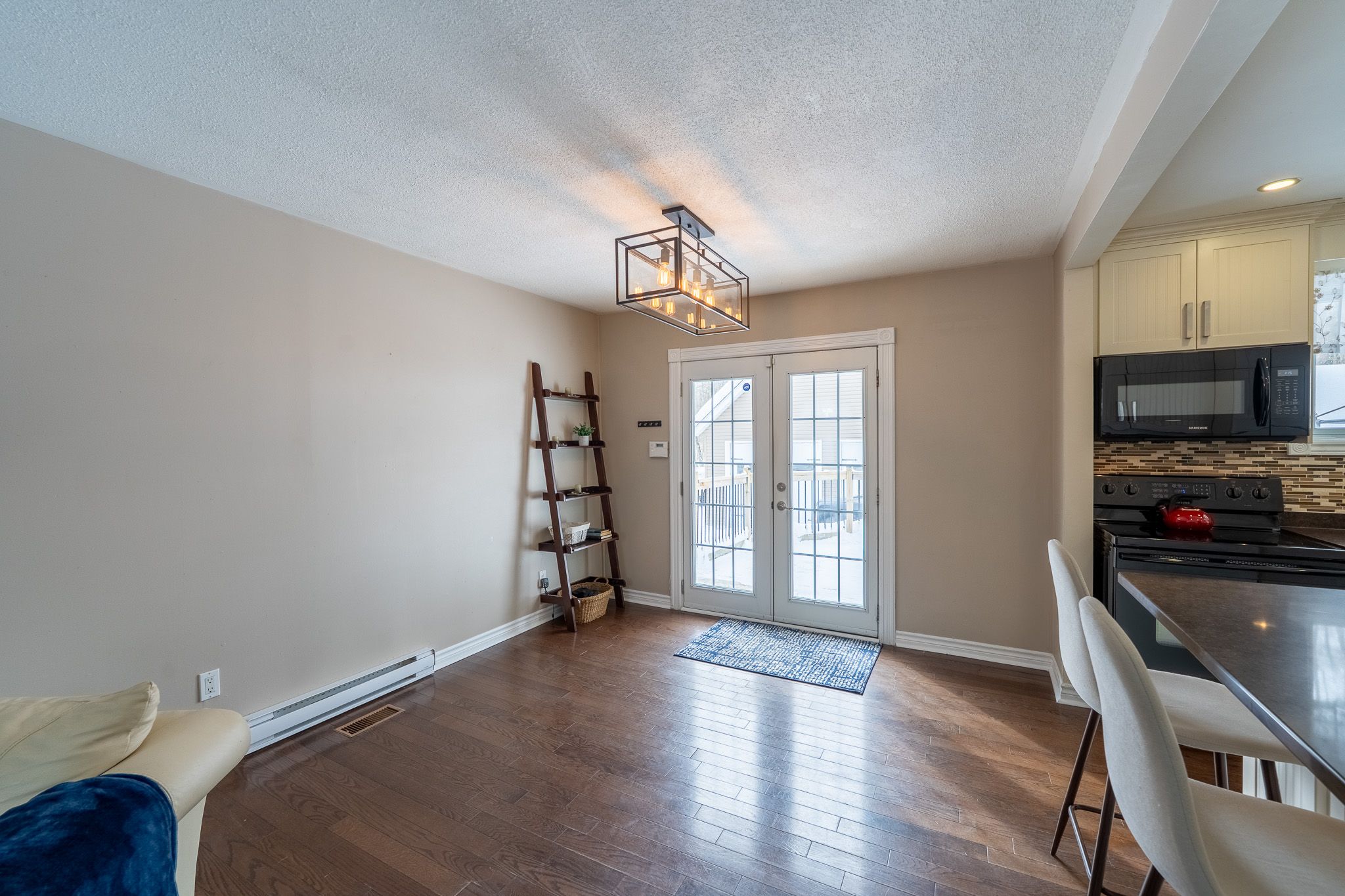 • Bright open-concept main level with hardwood and tile flooring throughout.
