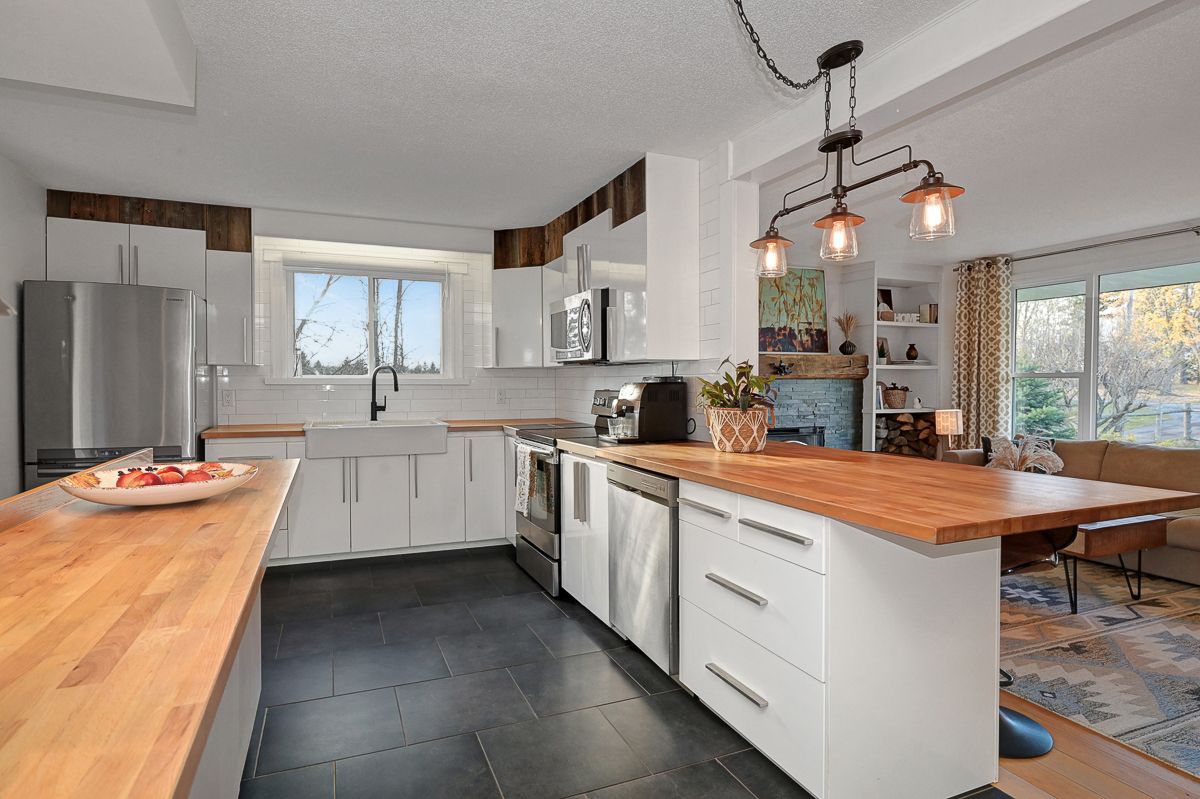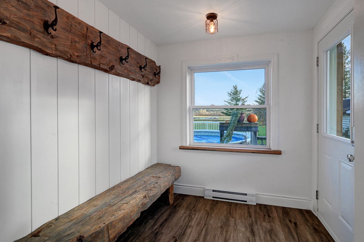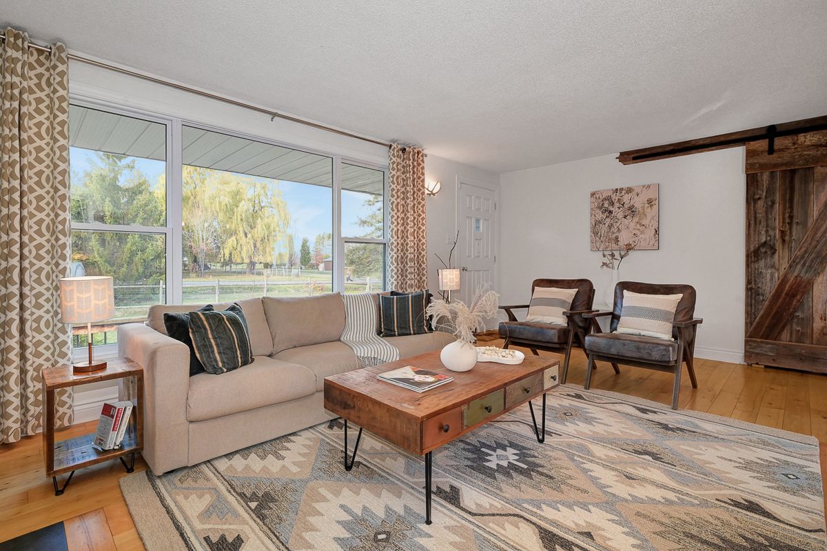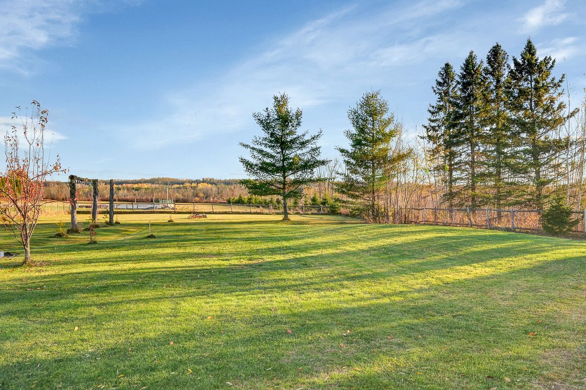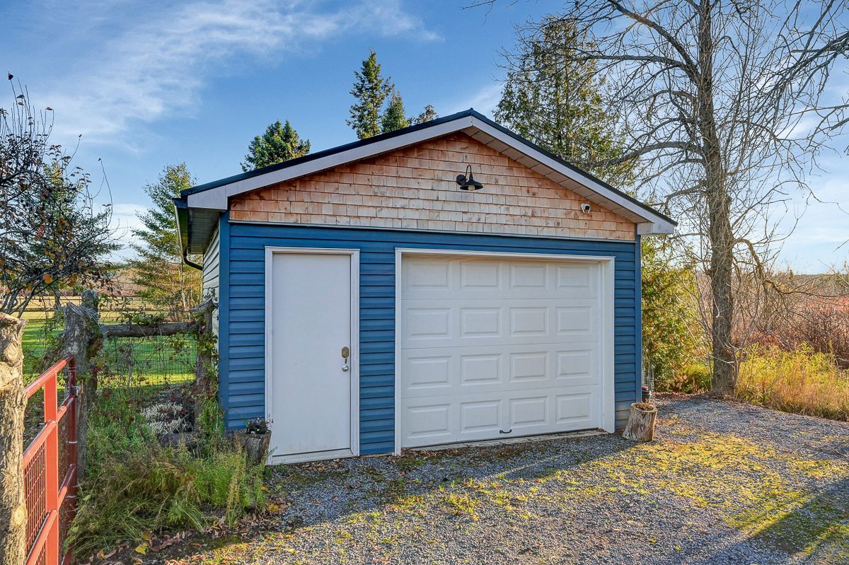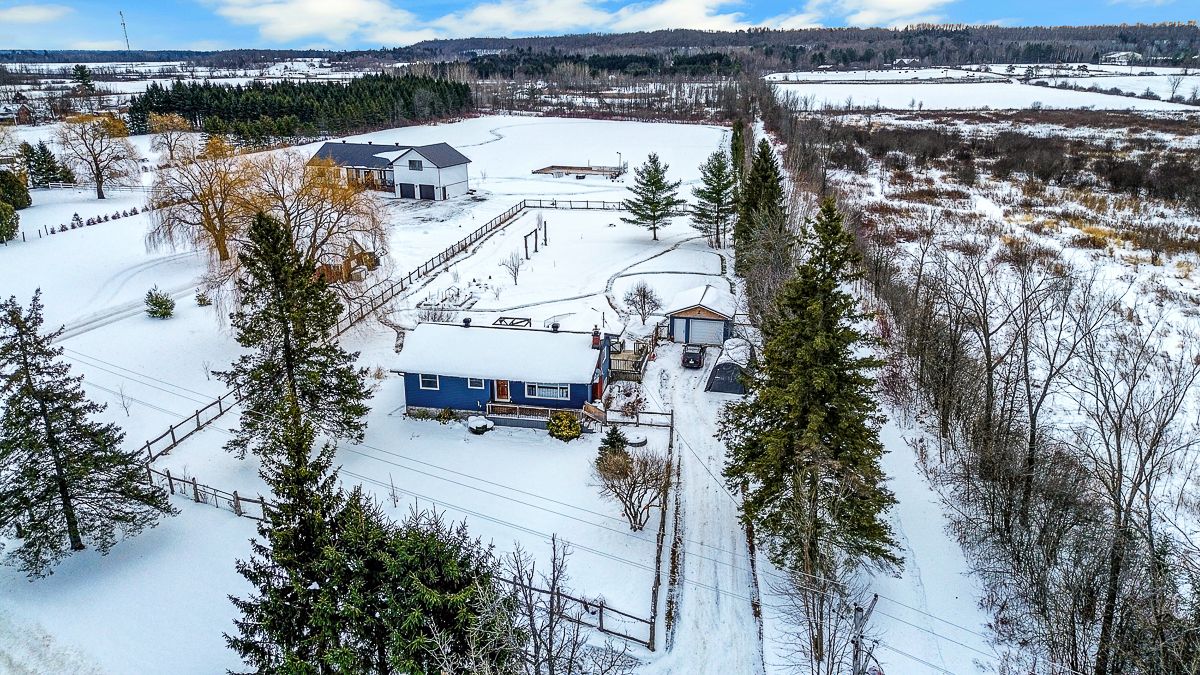 Your peaceful country retreat awaits. Discover the perfect blend of charm, comfort, and space in this meticulously maintained 2+1 bedroom, 2 full bath bungalow, set on over an acre picturesque lot surrounded by nature. Step inside to find rich hardwood floors and a bright, bistro style kitchen that radiates warmth and character. Flooded with natural light and freshly painted, the open concept layout flows seamlessly into a cozy living room with a wood burning fireplace, the perfect place to unwind on cool evenings. A separate dining area opens to a large deck overlooking the above ground saltwater pool, perfect for entertaining or relaxing in your private oasis. The main floor features two inviting bedrooms, including a primary suite, and an elegant full bath with his and her sinks. Downstairs, the fully finished lower level offers a third bedroom, a large entertainment or family room, a second full bath, and generous storage. Outside, enjoy your fully cedar fenced backyard, detached garage with two additional carports- 1 is covered, 1 is frame only, a durable steel roof, and ample parking for all your vehicles and toys. Whether you're entertaining friends, raising a family, or simply seeking tranquility, this property delivers it all. Come experience the serenity. This is home!