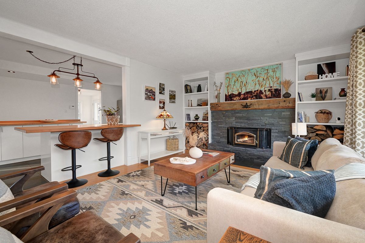 • Cozy living room with a wood burning fireplace for cozy evenings.