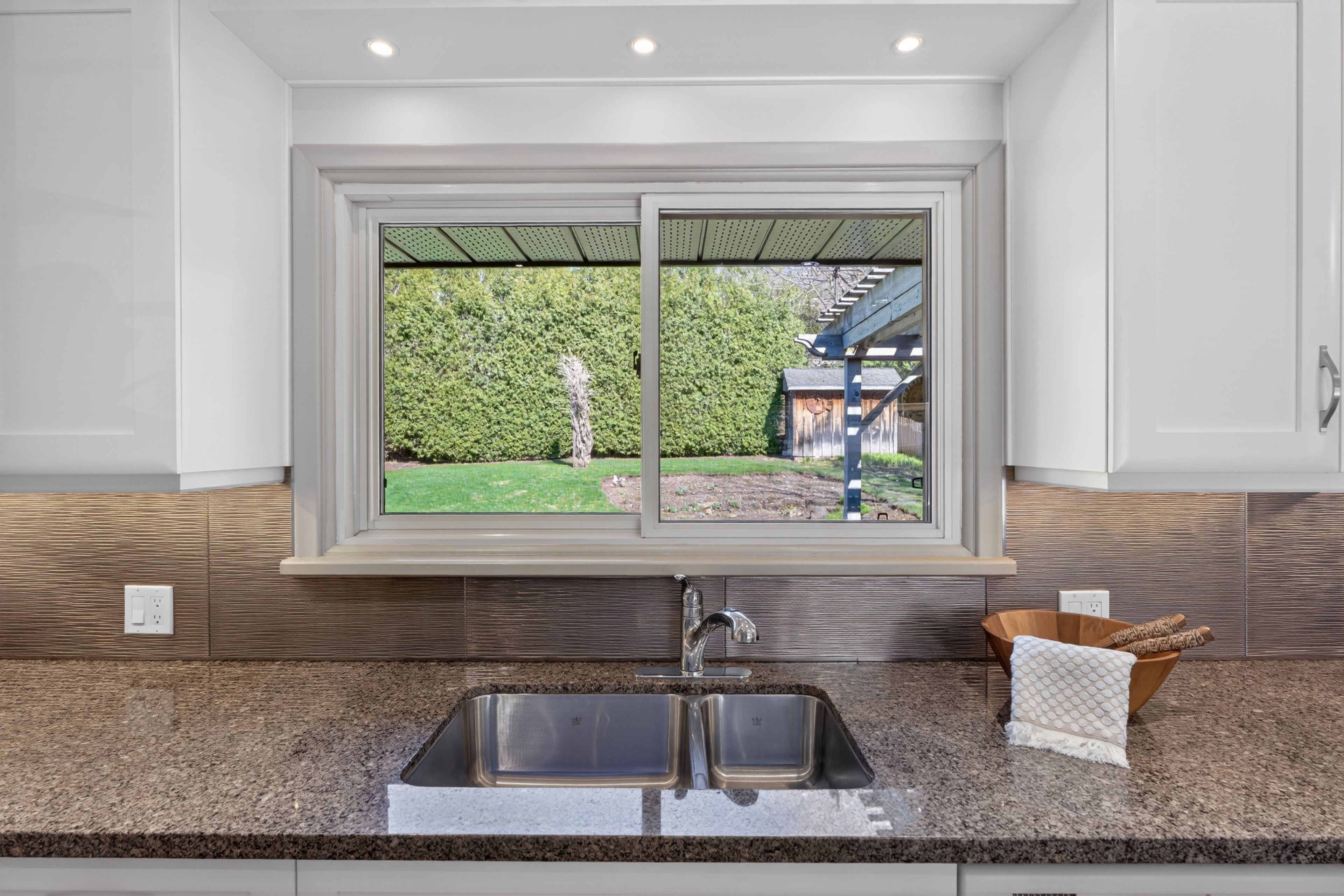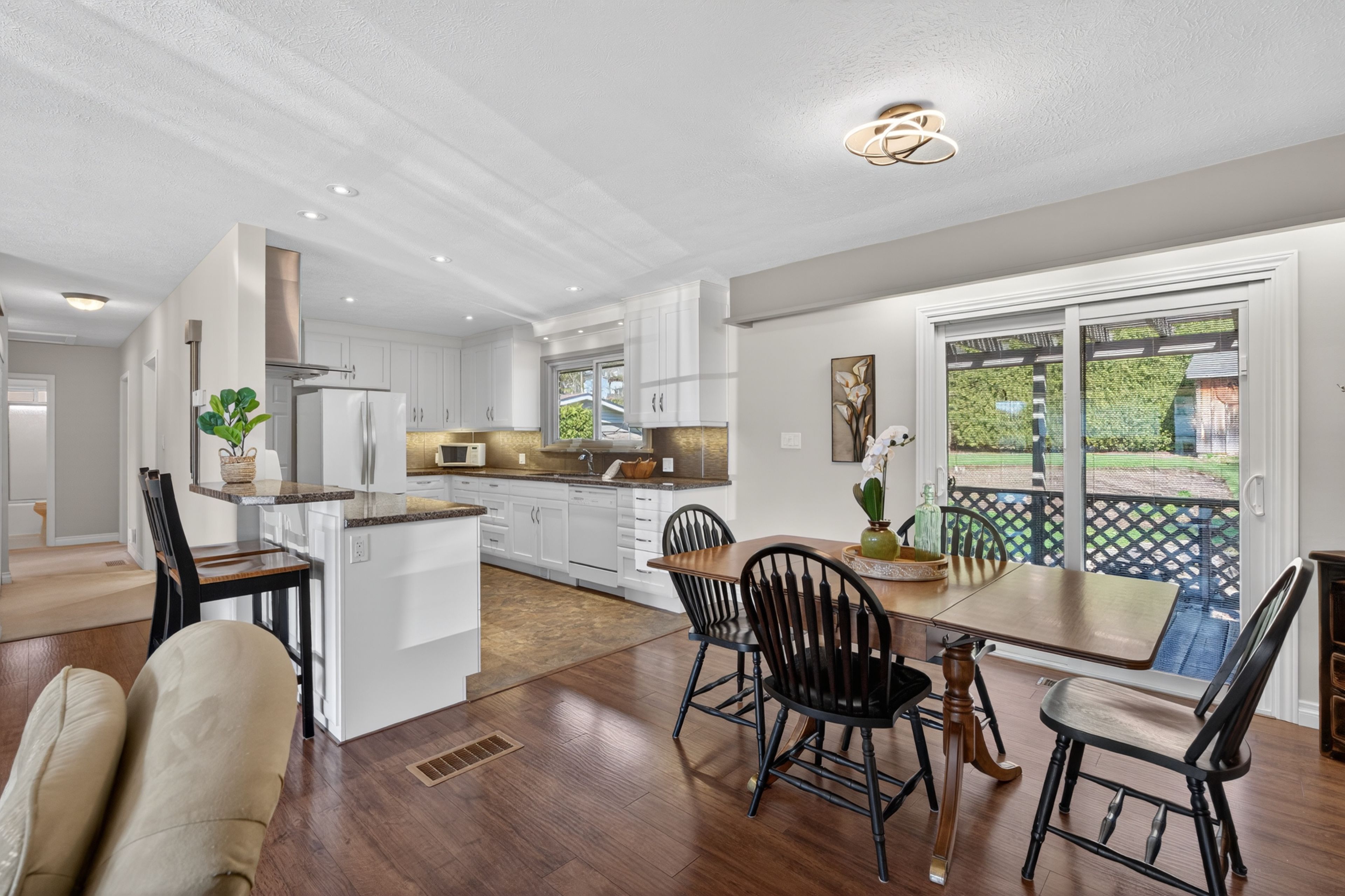 First time to market in 41 years. This beautiful family home has 3 bedrooms on the main floor, a 4 piece bathroom and beautifully redone kitchen, with granite countertops, and stainless steel appliances. Living room , dining room have gorgeous hardwood floors. A private oasis awaits off the dining room, the back yard is lush, with fish pond, flower beds, space for the dog, kids and bbq's. The lower level has a bed with 2 piece bath, family room and plenty of space to add another bedroom or a larger bath. No water issues in this home, the basement is nice and dry. The lane way is paved, and has been sealed yearly.