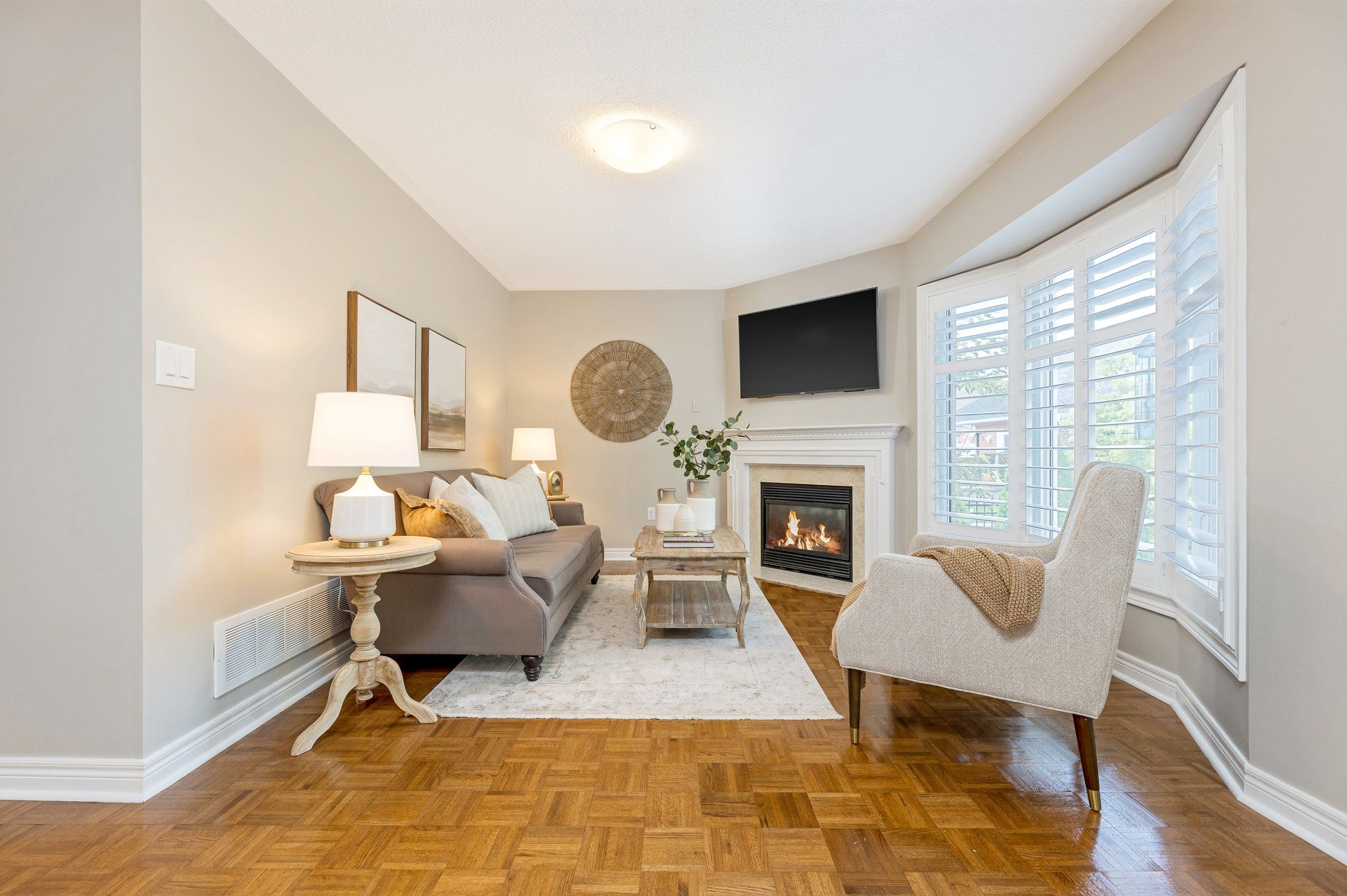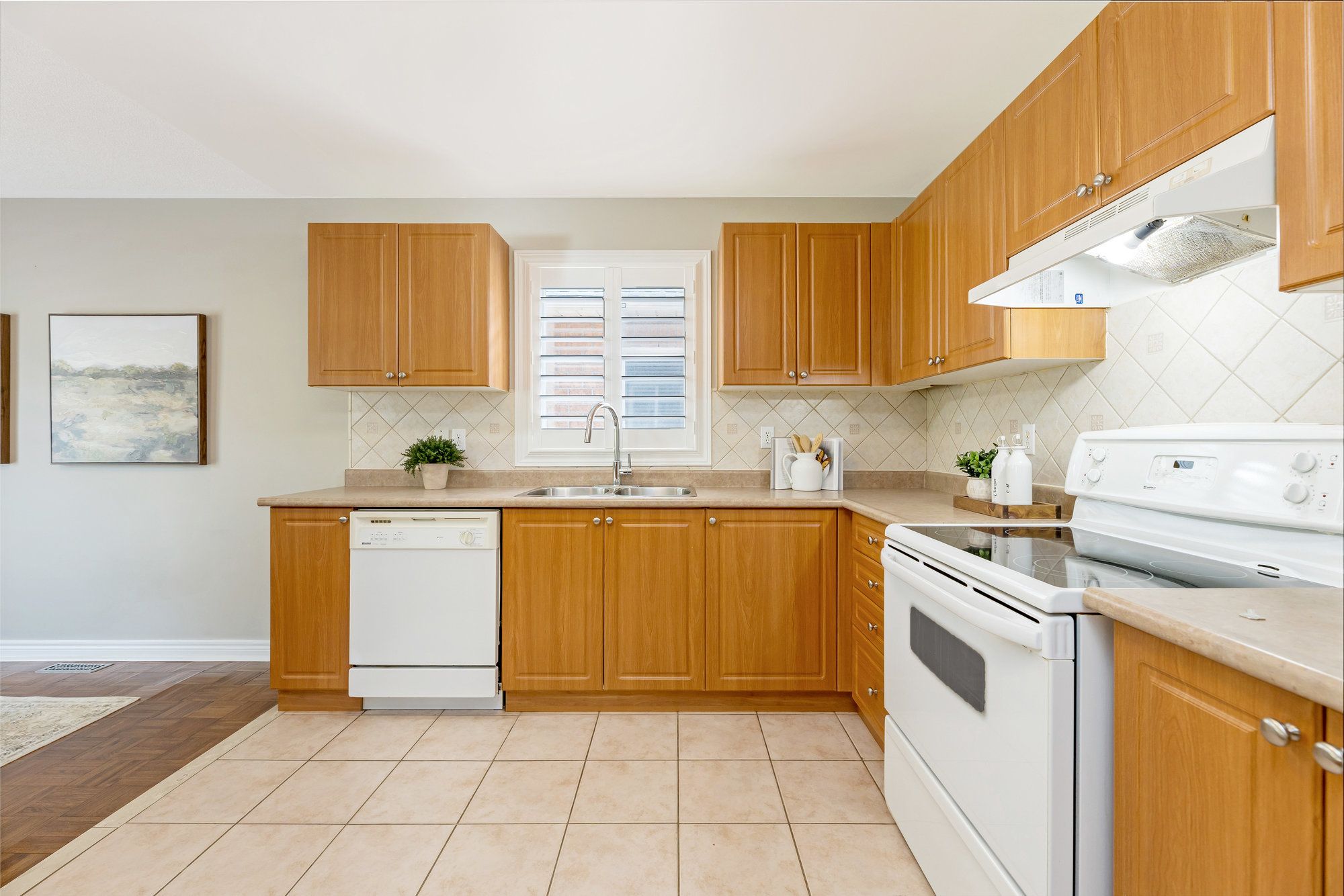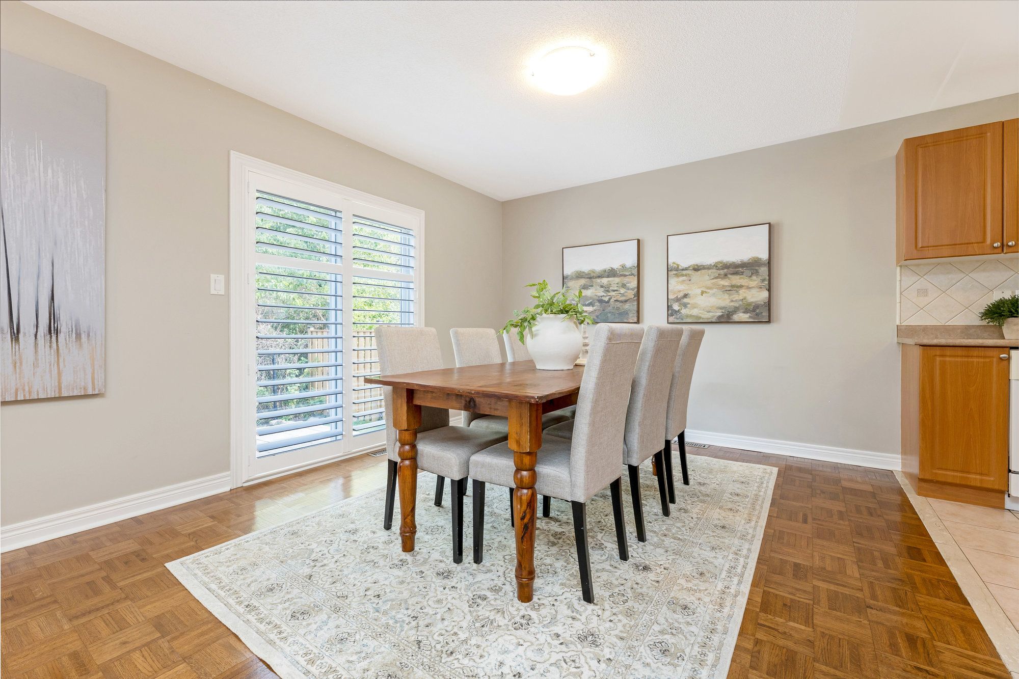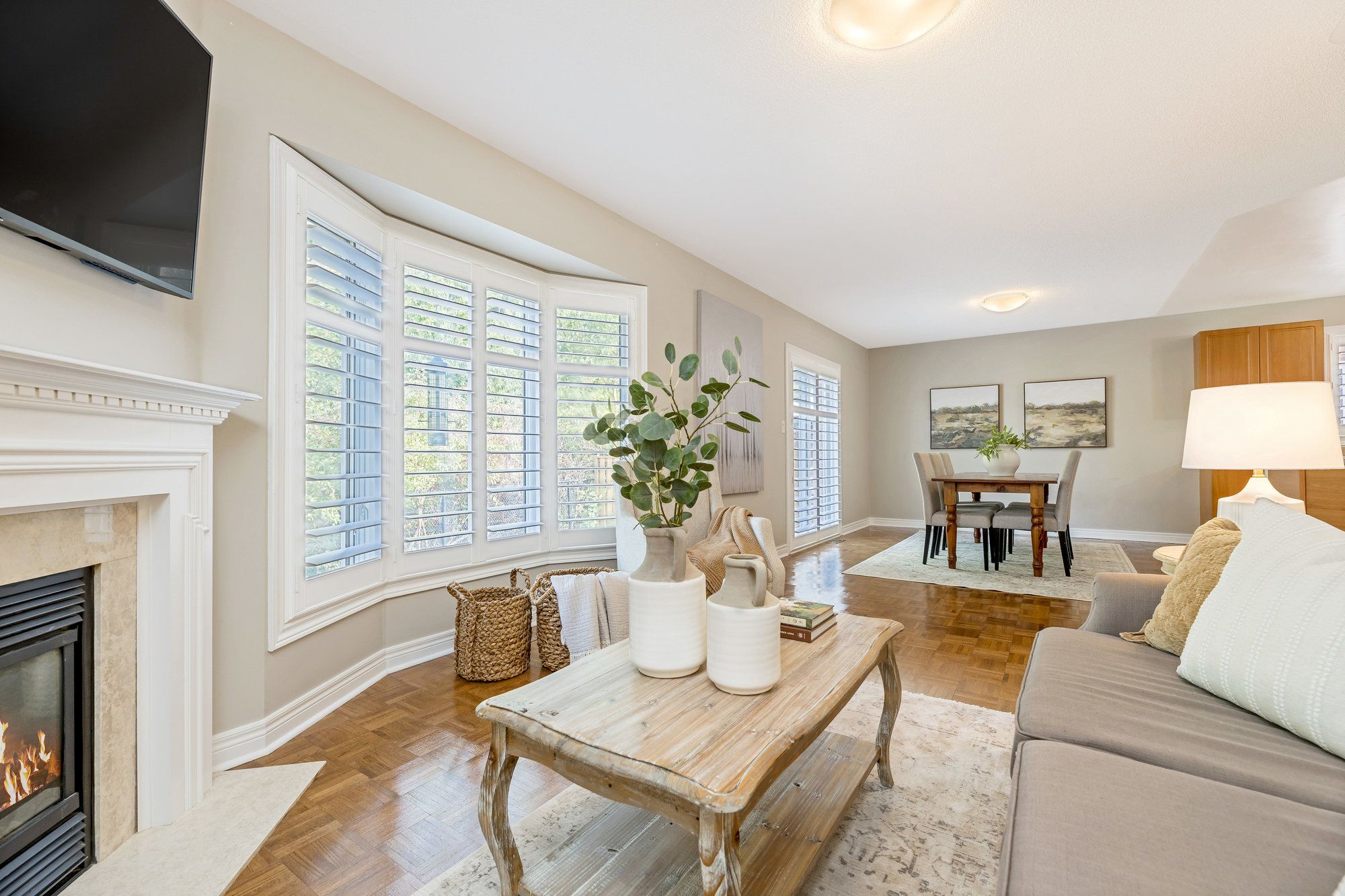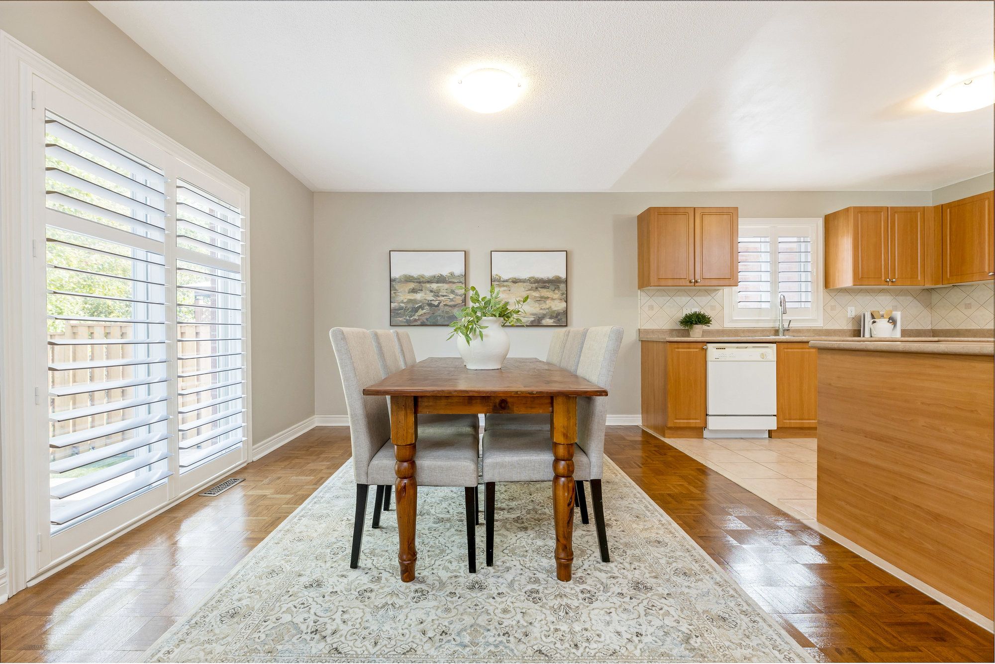 • Open concept layout featuring hardwood floors and California shutters for a modern feel.