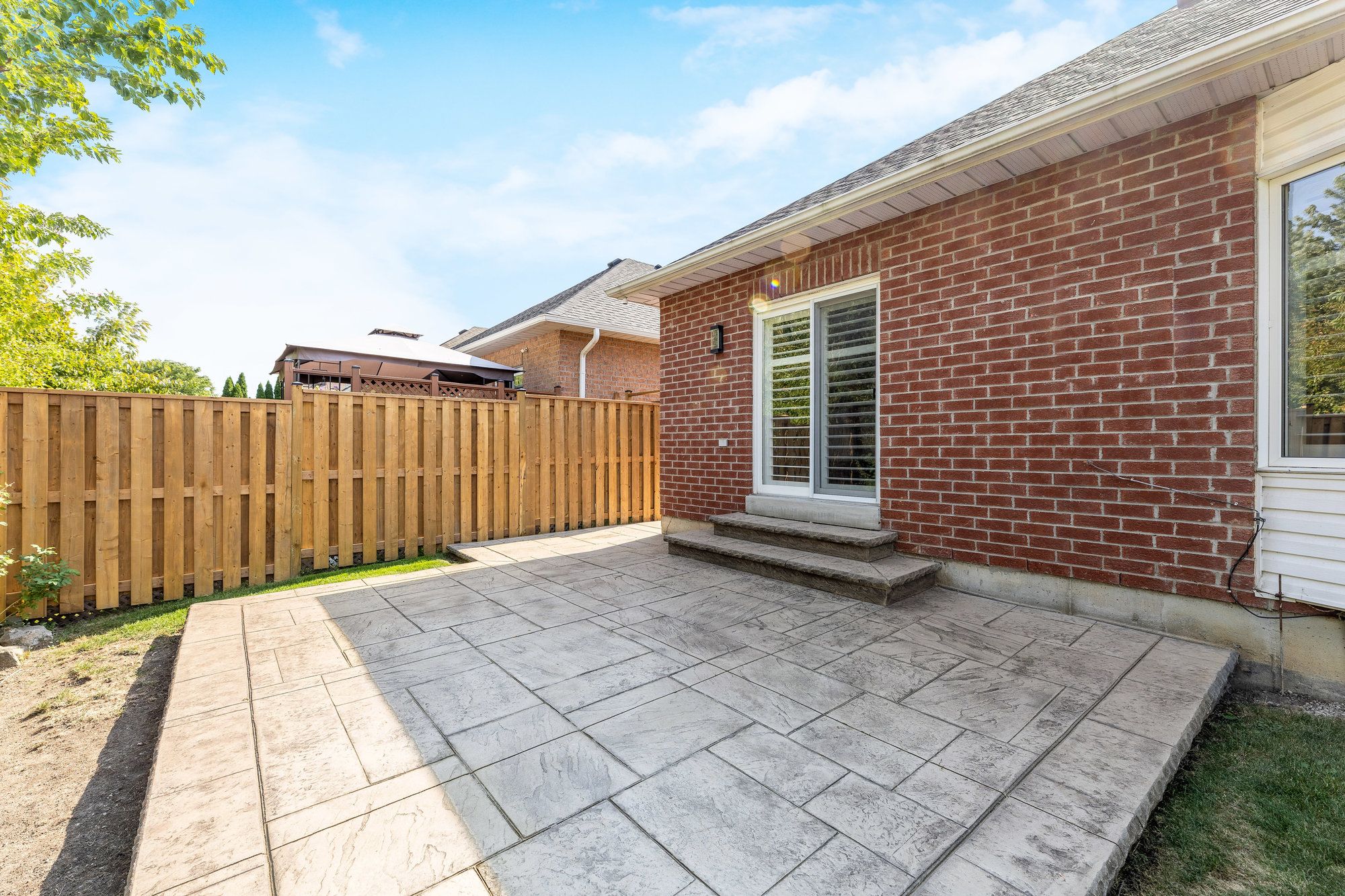 • Private fenced yard with a stamped concrete patio, perfect for outdoor enjoyment.
