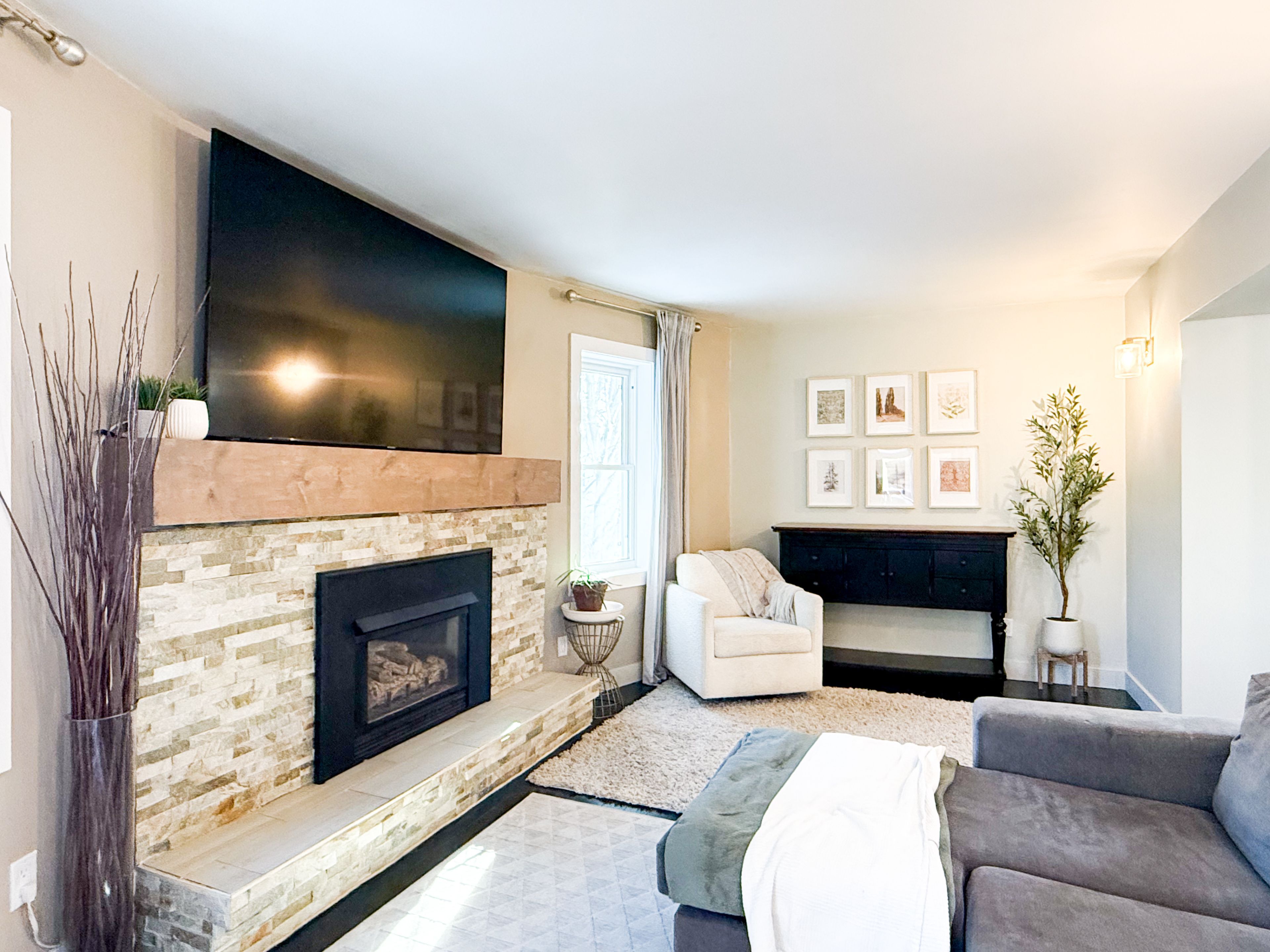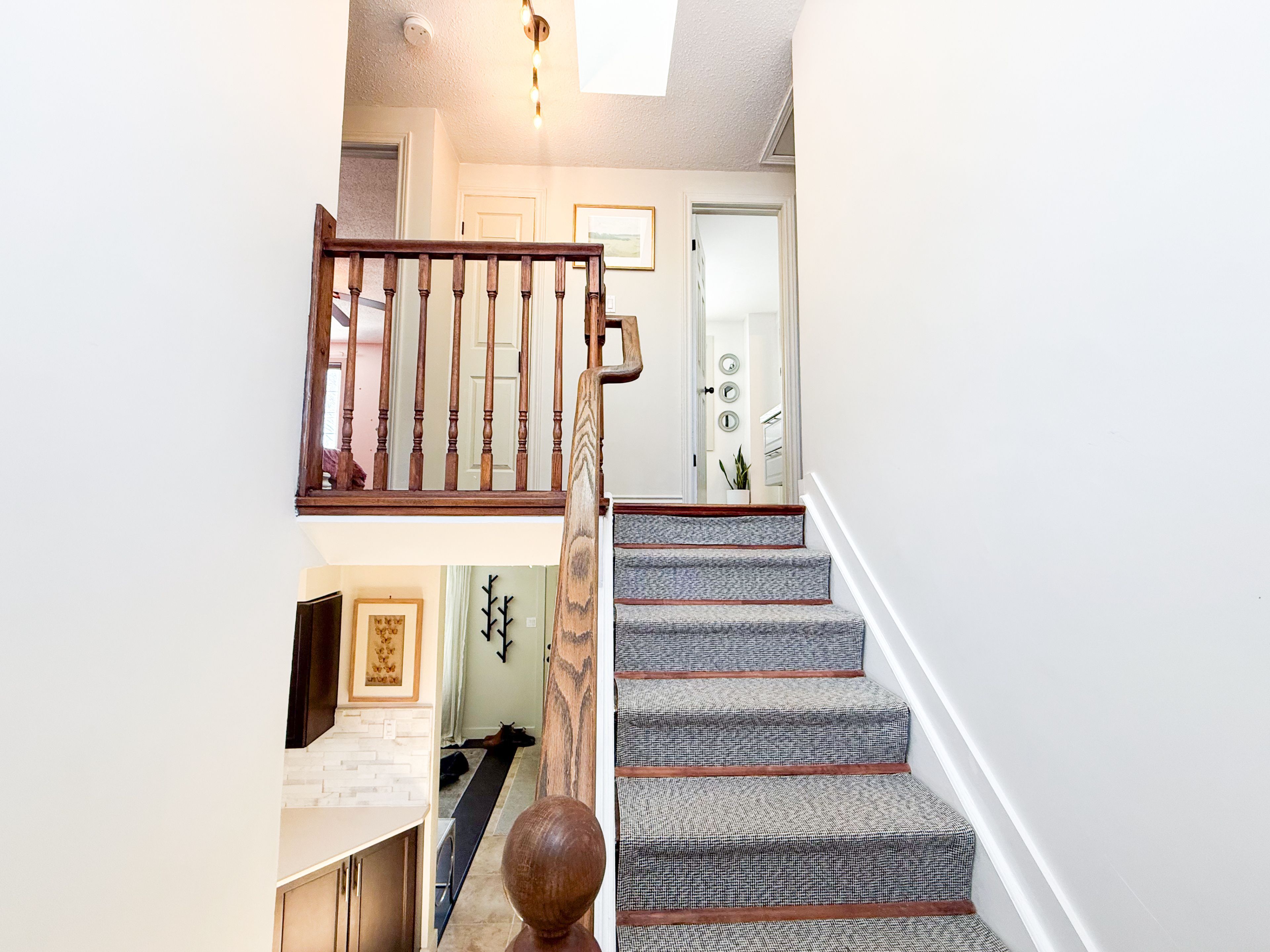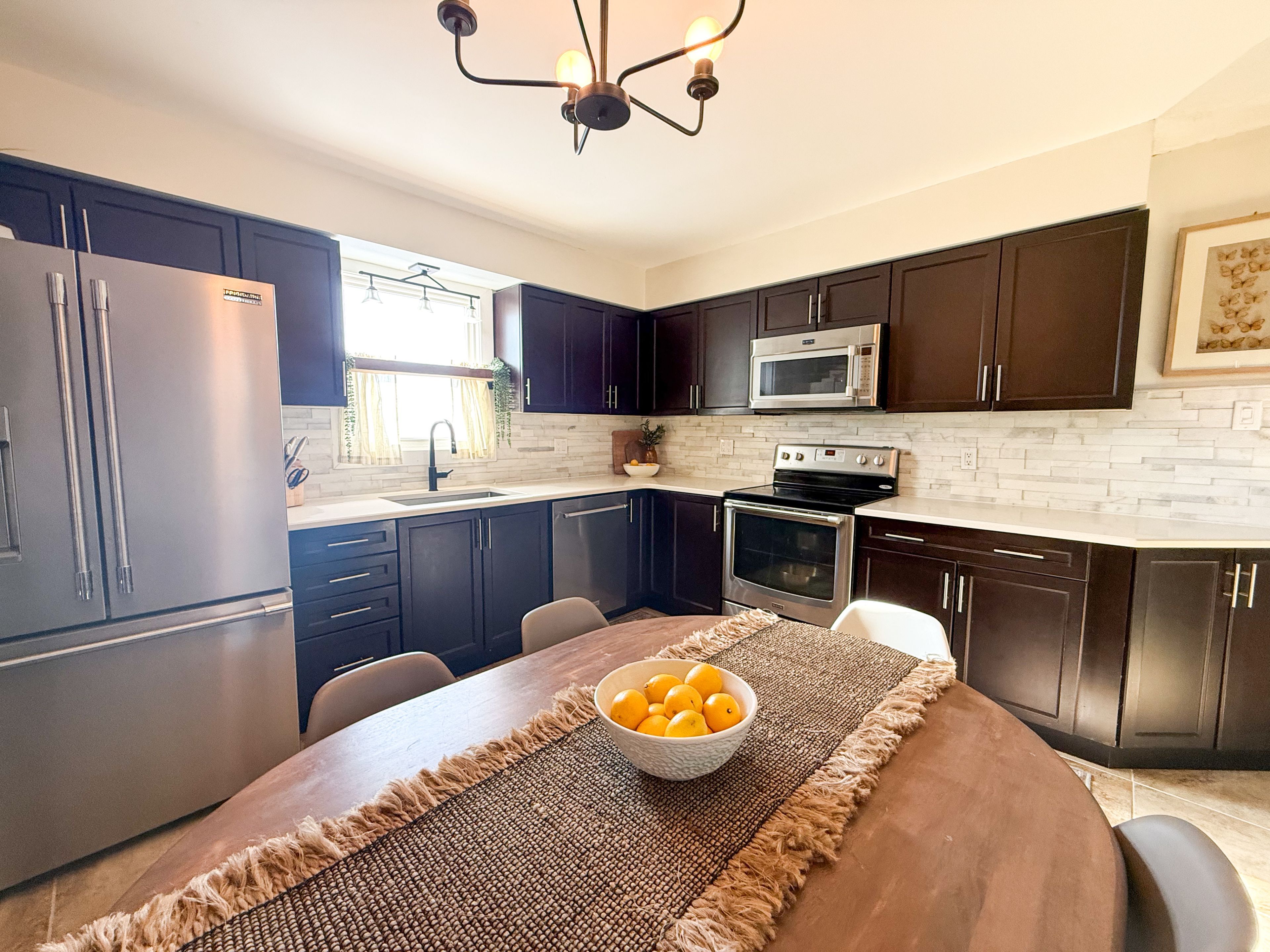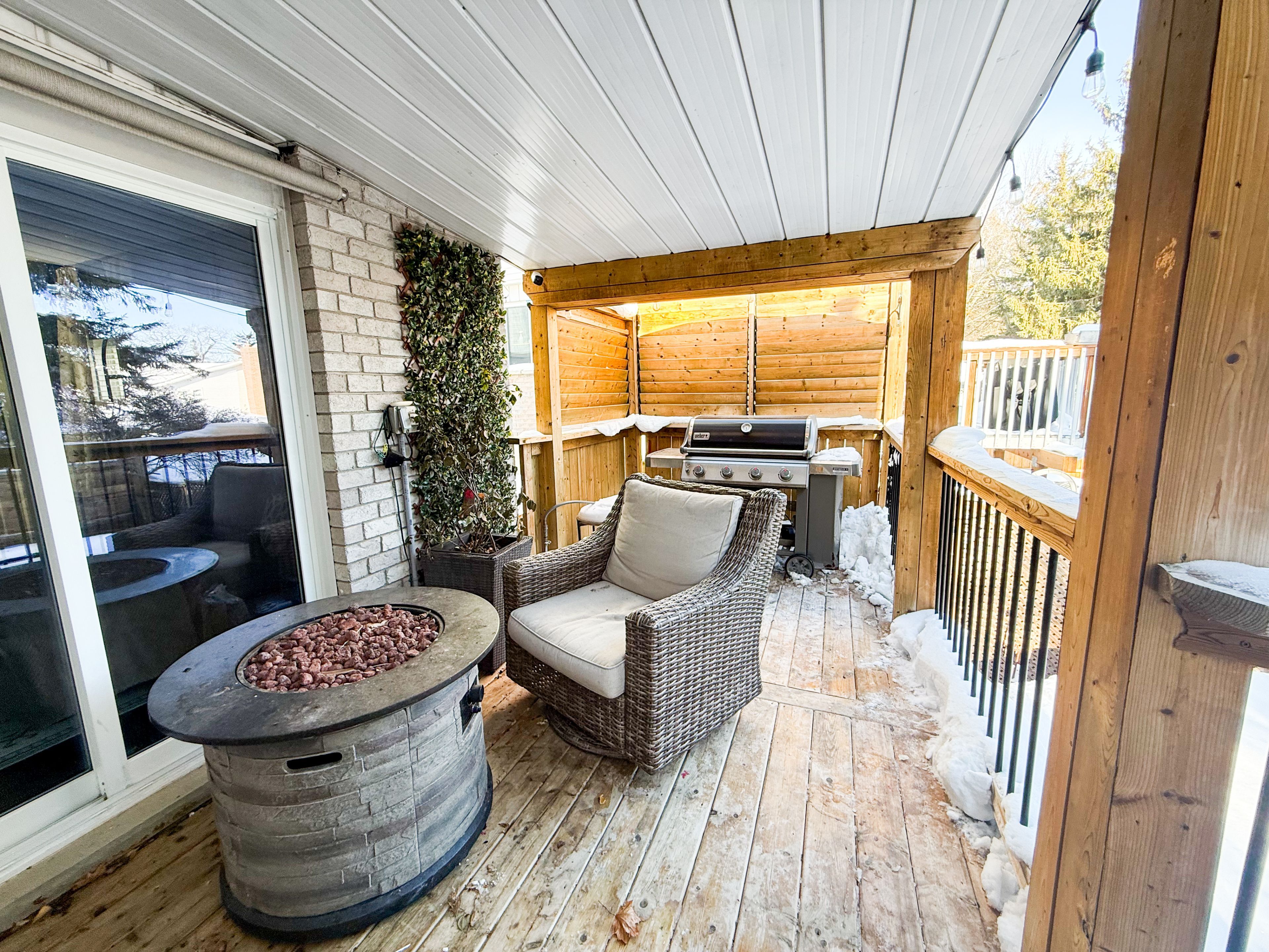 Welcome to this beautifully maintained family home in a peaceful, quiet neighborhood with excellent nearby amenities. Top-rated schools are close by, making it ideal for families, while nature enthusiasts will love the proximity to the scenic grand river trail for walking or biking, nearby chicopee park for outdoor fun, and easy access to a local ski hill for winter adventures. Just 5 minutes from the 401, commuting is effortless. This charming residence features a roof topped with durable 50-year shingles, a professionally installed concrete driveway, and thoughtful front landscaping that enhances its inviting curb appeal. Step inside to an inviting updated kitchen featuring rich hardwood cabinetry and sleek corian countertops, perfect for everyday meals or hosting. Cozy up by the gas fireplace in the living area and enjoy central air conditioning for ultimate comfort on hot summer days. The upstairs bathroom impresses with its stylish tiled shower surround, adding a touch of modern elegance and easy maintenance. Outside, entertain effortlessly on the large back deck, complete with two natural gas bbq hookups for seamless grilling. Dive into the well-cared-for above-ground pool on hot summer days, then relax in the shaded yard with a mature apple tree and three productive garden beds. Practical perks include insulated under-deck storage for patio furniture and seasonal items. Don't miss this move-in-ready gem!