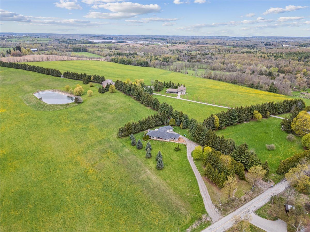 Welcome home to your peaceful rural retreat nestled on a serene 1. 7-acre parcel along a quiet country road w/ almost no through traffic. This bungalow offers the perfect blend of spacious comfort and tranquil countryside living. Just one hour from toronto, you'll enjoy peaceful privacy w/ easy access to the city. Step inside this generously proportioned 2,898sq ft. Home & feel the warmth right away. The open layout bathes every rm in natural light thanks to the direct south-facing orientation. On cooler days, the luxurious 7-zone in-flr heating on the main lvl wraps your feet in gentle, even warmth-pure comfort from the moment you arrive. The heart of the home is the beautifully redesigned kitchen, a true chef's delight featuring premium gaggenau & bosch appliances. Sleek lines, ample counter space, & a thoughtful layout make cooking & gathering a genuine pleasure, whether it's quiet family dinners or lively wknds w/ friends. You'll find three generously sized bdrms, each offering plenty of rm to relax & recharge. The primary suite feels like a private retreat, complete w/ a stunning 5pc renovated ensuite bthrm complete w/ a deep soaker tub, separate shwr, dble sinks, & those little luxuries that make every morning feel special. Step outside to your own bckyrd paradise: an inviting in-grnd immerspa pool surrounded by mature trees & open green space. It's the perfect spot for summer swims, evening star gazing, or simply unwinding in the fresh country air. The lot gives you endless possibilities-gardening, play space, or simply enjoying the quiet beauty of rural life. A spacious 3-car garage provides plenty of rm for vehicles, hobbies, or storage, rounding out the practical side of this warm, welcoming home. If you've been dreaming of a lrge, light filled bungalow in a truly serene setting-one that feels like a peaceful escape yet keeps toronto within easy reach-this special property is ready to welcome you home. Come see it for yourself. Your peaceful retreat awaits.