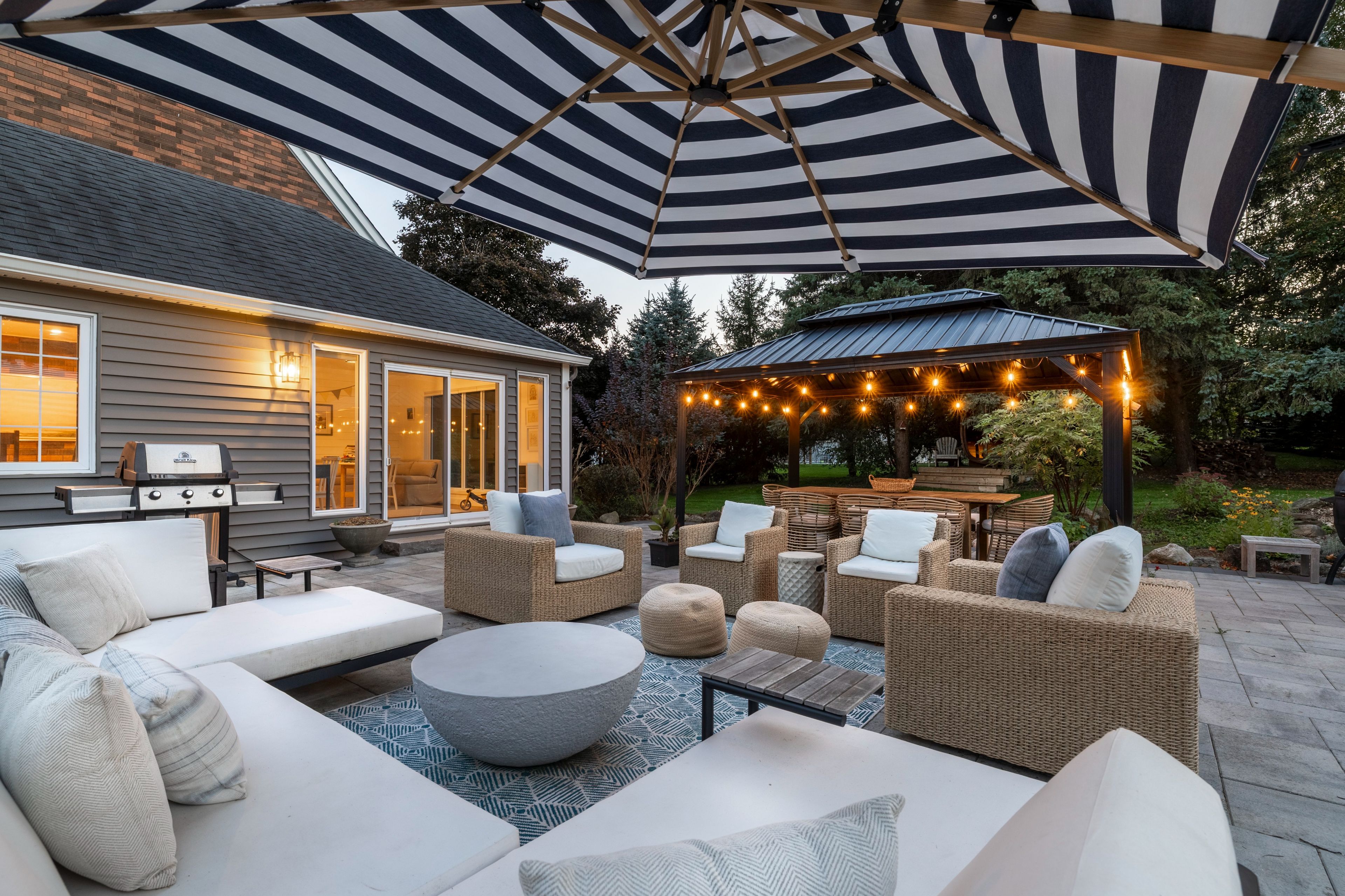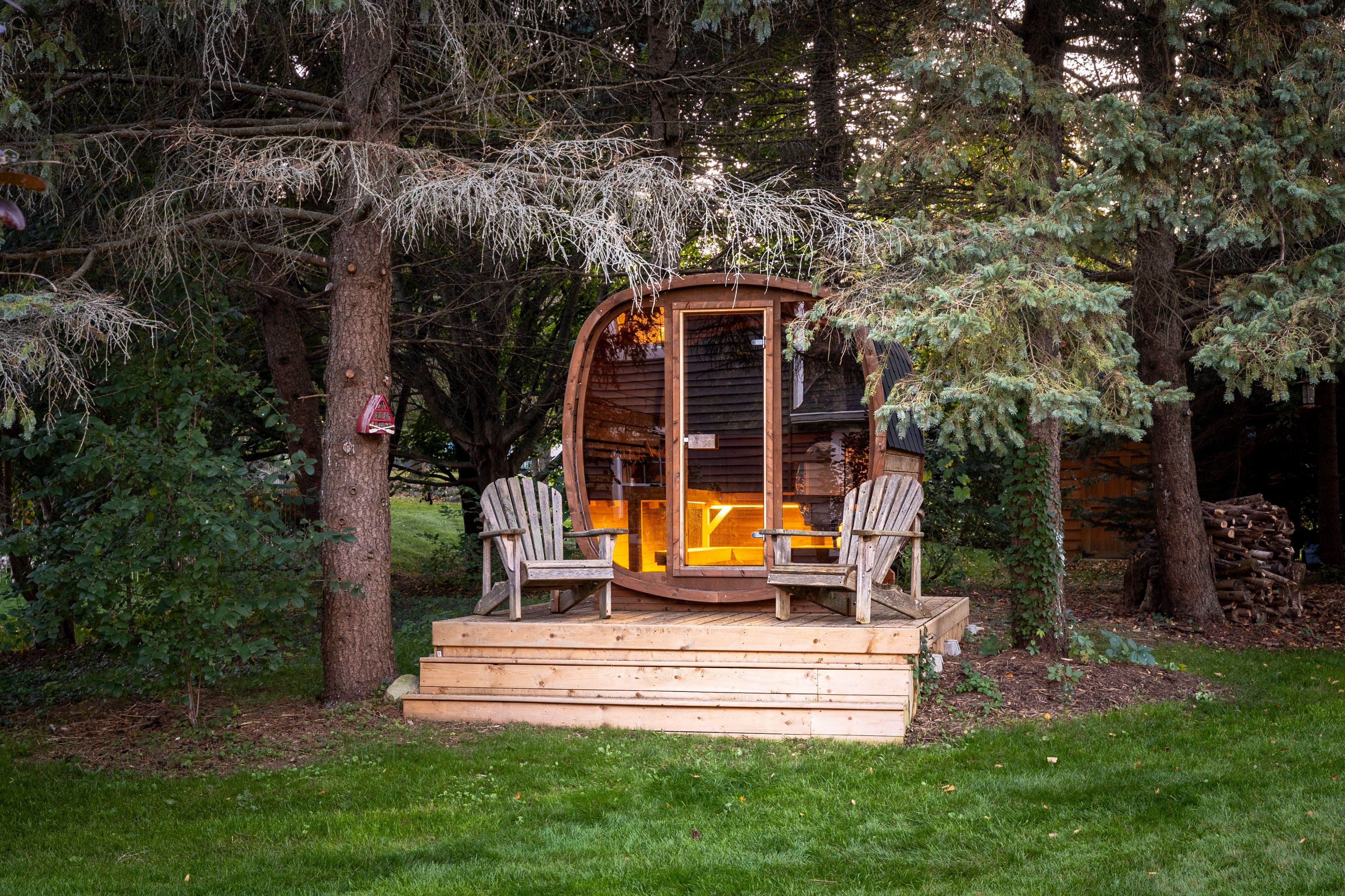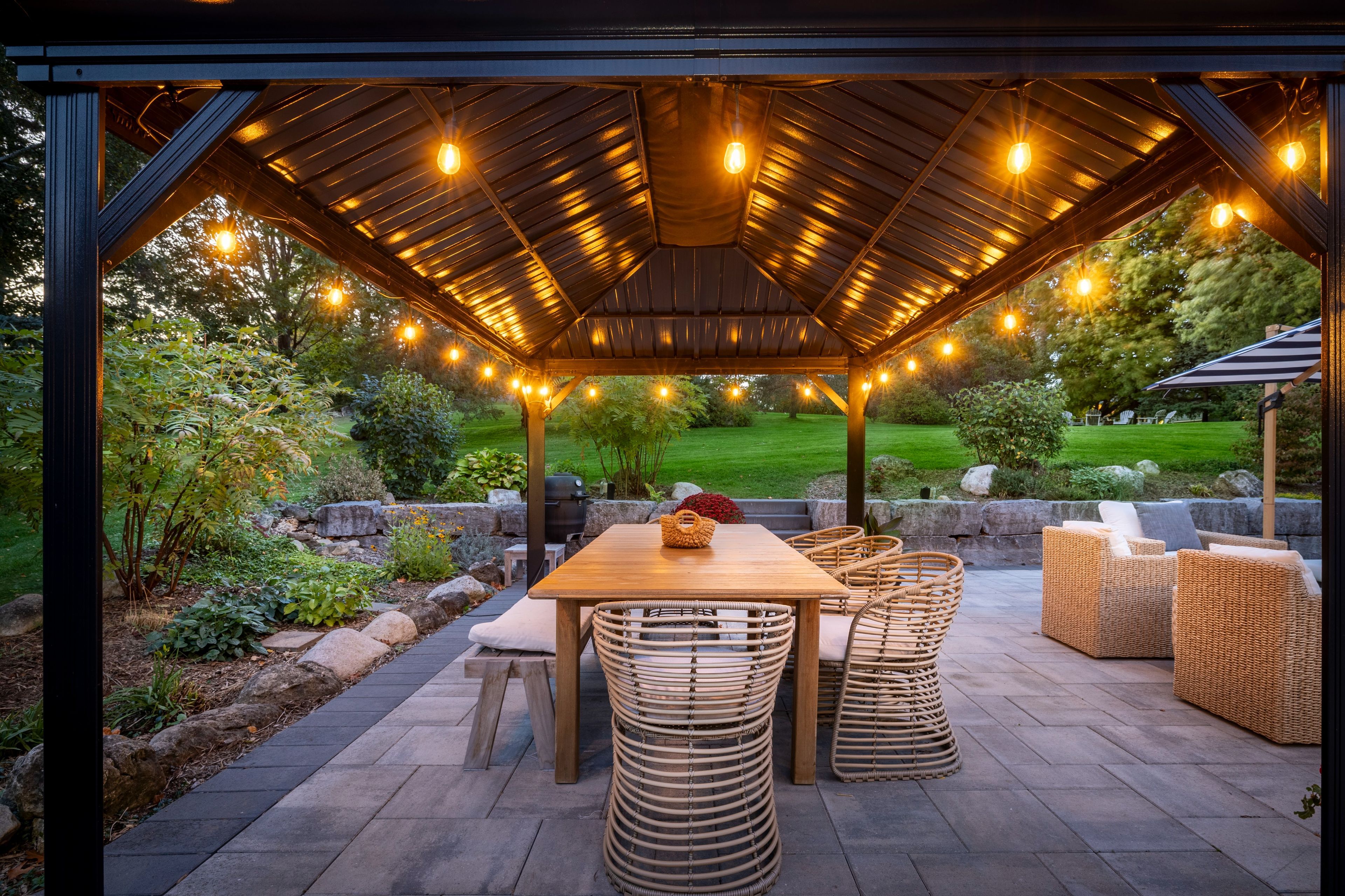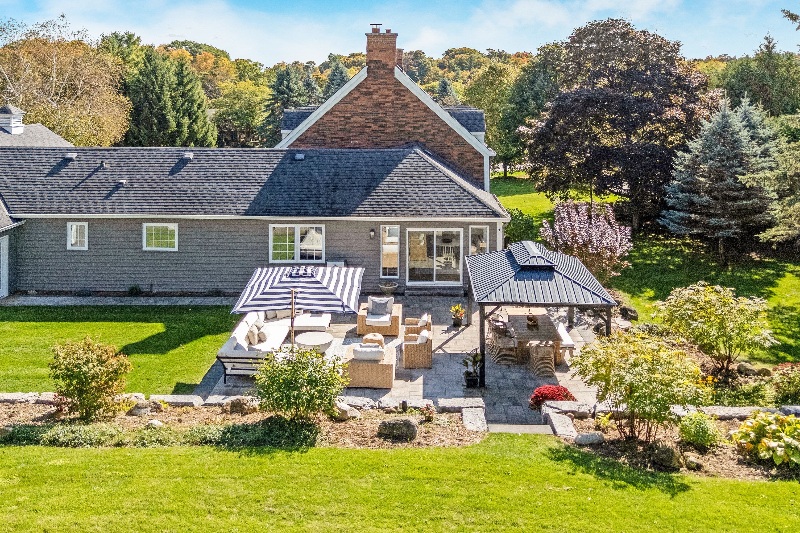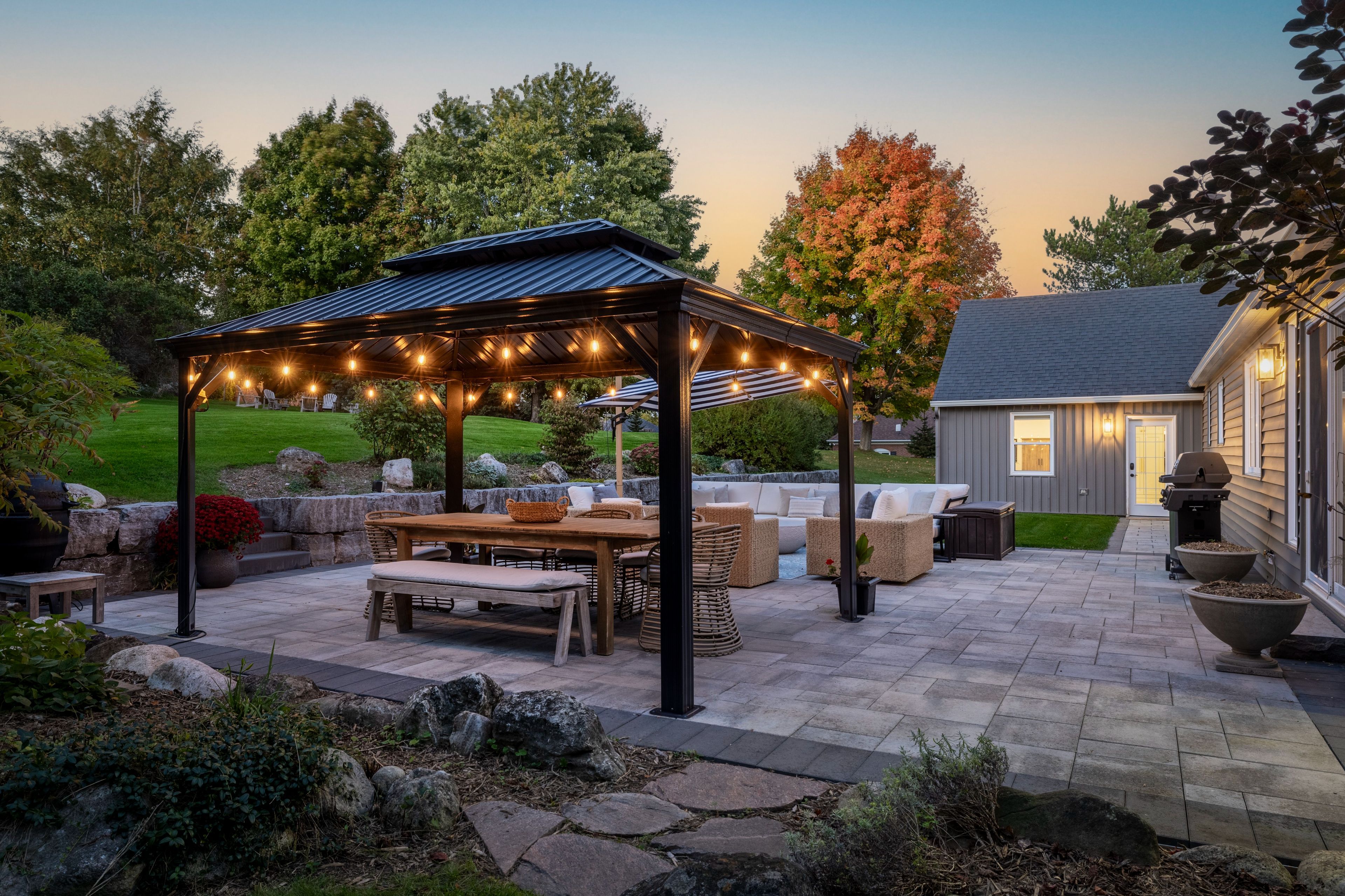 • Beautiful tree-lined backyard with gardens, gazebo, and outdoor sauna.