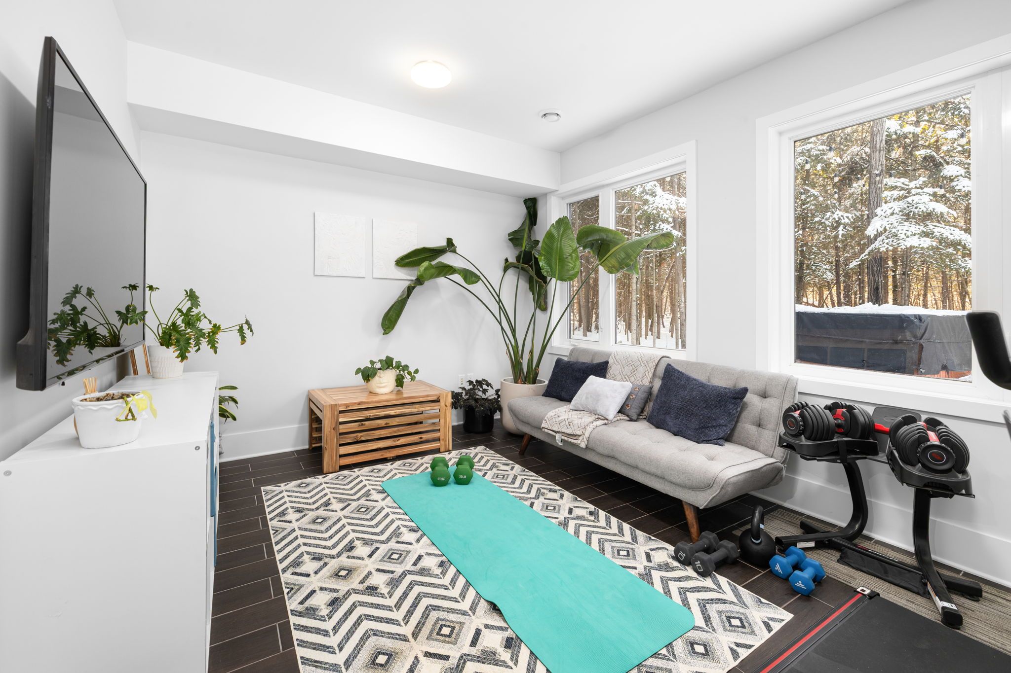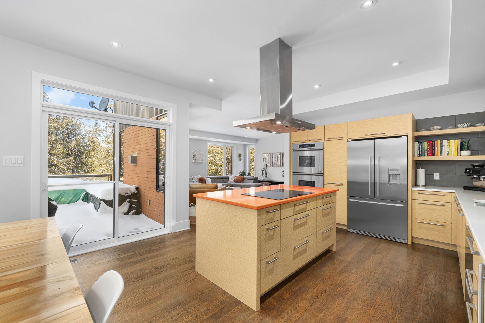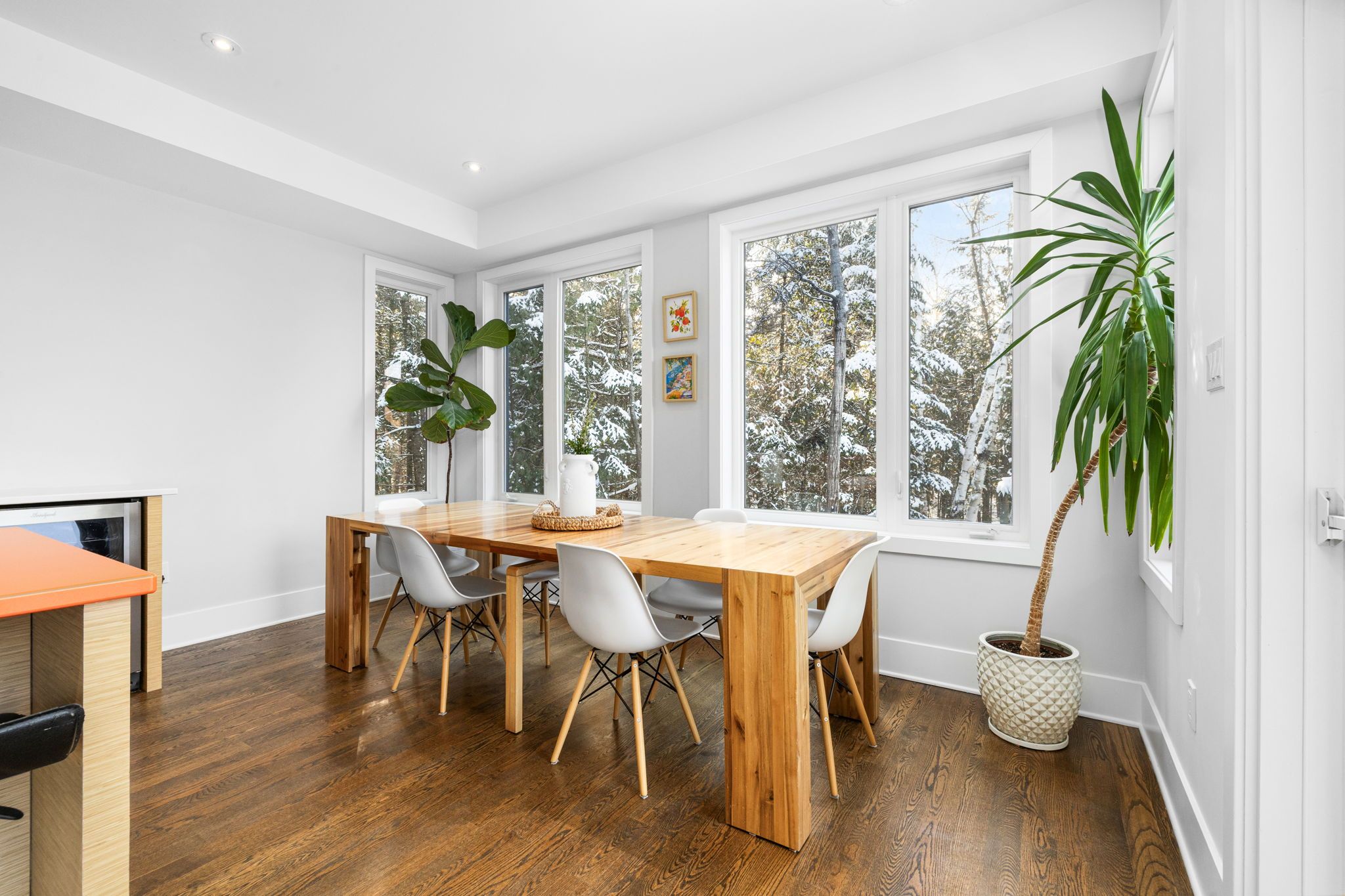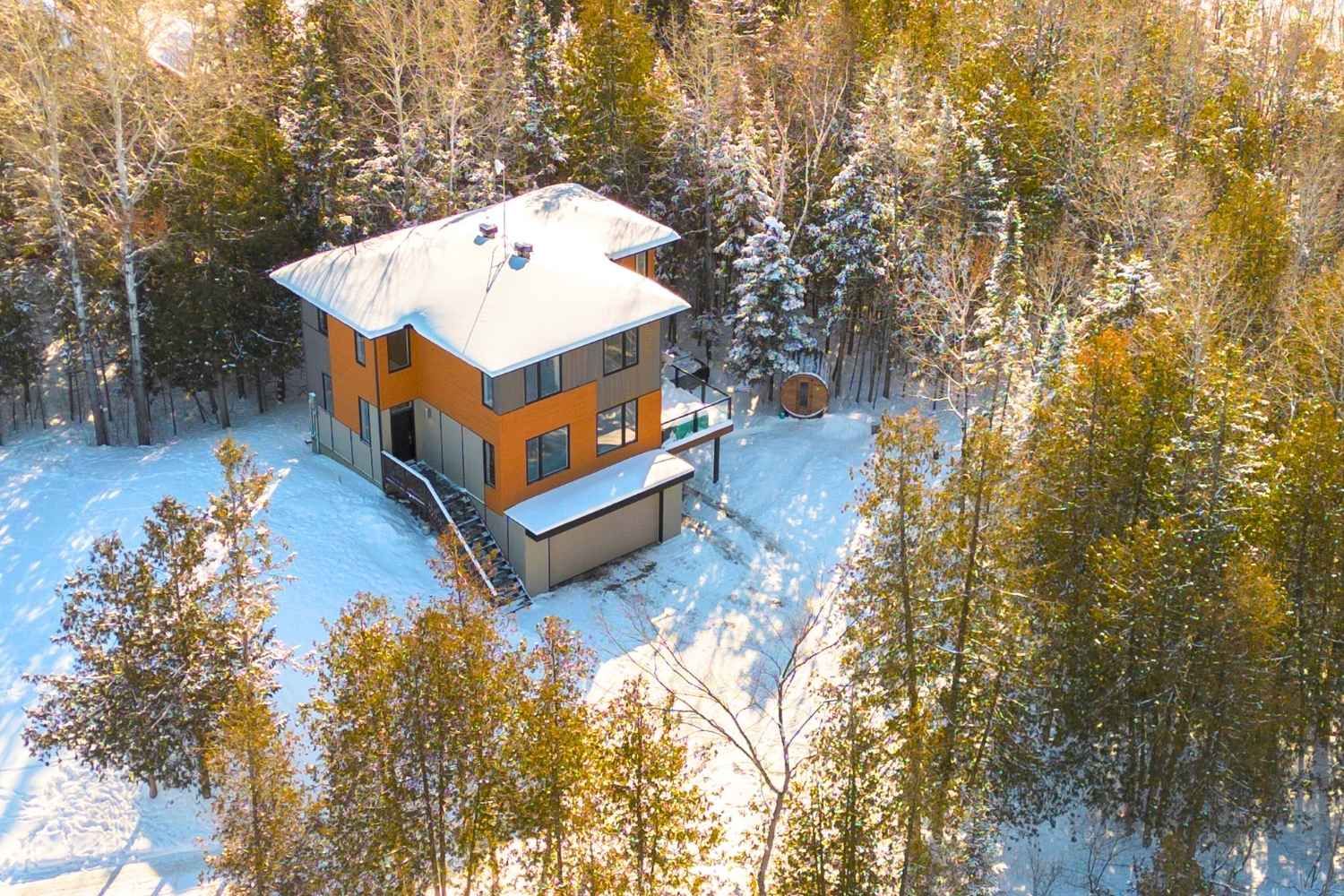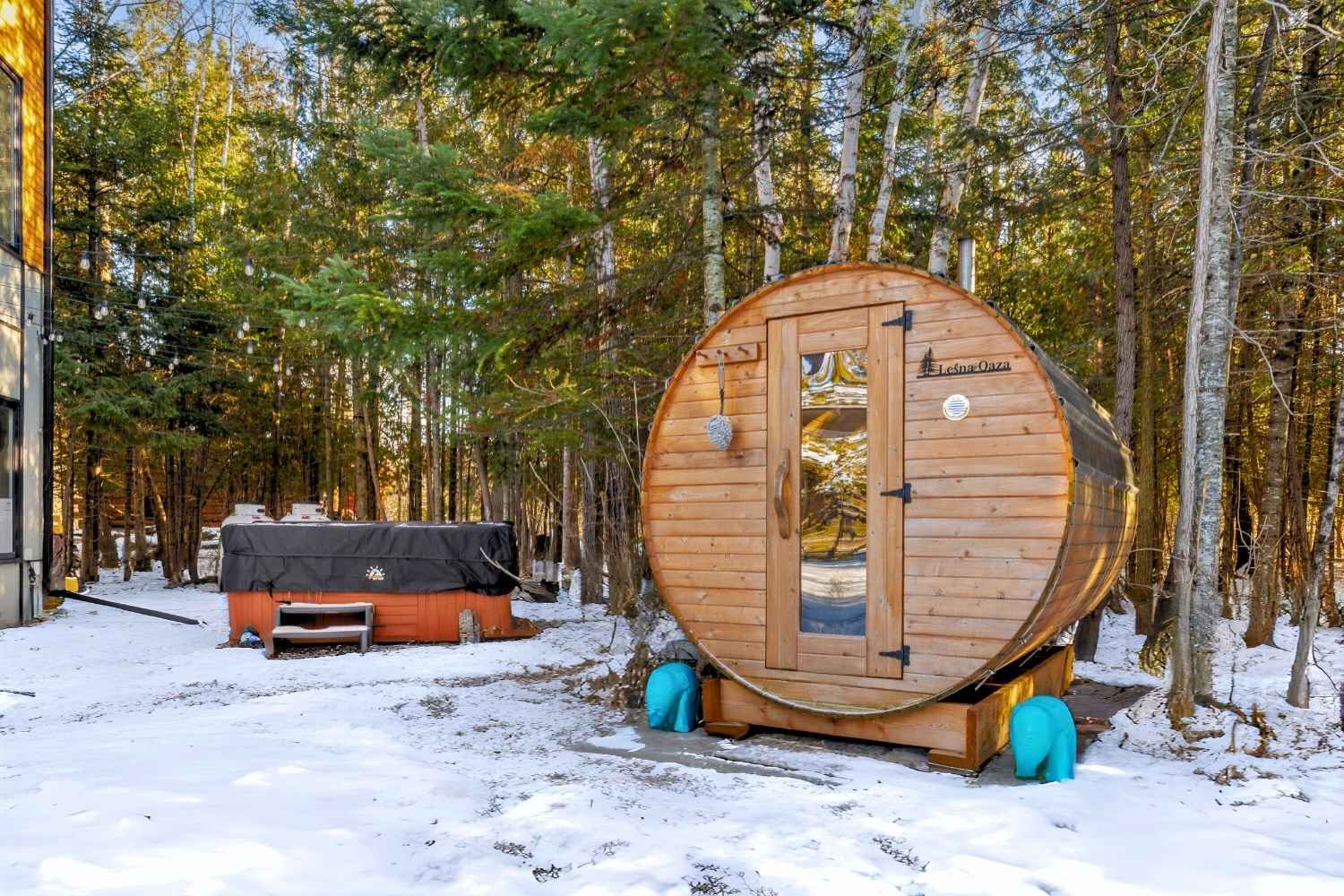 Welcome to 3311 barlow cres, a custom maple leaf homes build set on a private 1-acre lot in dunrobin shores, surrounded by mature trees & steps from the ottawa river. This home offers modern comfort w/ a strong connection to nature year-round. The paved driveway provides parking for 4 cars & leads to an attached 2-car garage. Inside, a welcoming foyer w/ closet opens to a tiled entry flowing seamlessly into hardwood floors throughout the main level. The open-concept main floor is filled w/ natural light from large windows framing serene treed views. The living room features a gas fireplace & seasonal scenery. The kitchen offers quartz counters, bamboo cabinetry, ss appliances, double ovens, wine fridge & a custom island w/ built-in stovetop, prep space & casual seating. A bright dining nook w/ wraparound windows sits just off the kitchen, ideal for everyday meals or entertaining. Walk out to the expansive pvc deck, perfect for bbqs, morning coffee, gatherings, or quiet evenings. A powder room completes the main level. Upstairs, the primary bed is privately set among the trees w/ peaceful views. The ensuite features a modern walk-in shower & clean, calming design. 2 additional beds incl closets, & a full bath w/ double sinks serves the upper level. The walkout basement extends the living space w/ heated radiant floors & large sliding doors opening directly to the yard. Outdoors, enjoy a spa-inspired retreat w/ hot tub, wood-burning sauna w/ glass viewing window & fire pit, perfect for all seasons. Additional features include a reverse osmosis system w/ new uv light filtering every tap, ensuring clean, safe water throughout. The south-facing yard enjoys all-day sun & frequent wildlife sightings, including deer. Steps to the local marina & walking distance to a sandy beach, this location offers nature, recreation & stunning sunsets while maintaining privacy & comfort. 3311 barlow cres is more than a home, it's a lifestyle rooted in nature, relaxation & refined living.