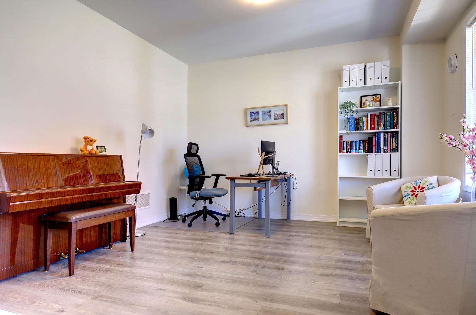 • Sunny main level office/home studio with 9 ft ceilings and garage access.