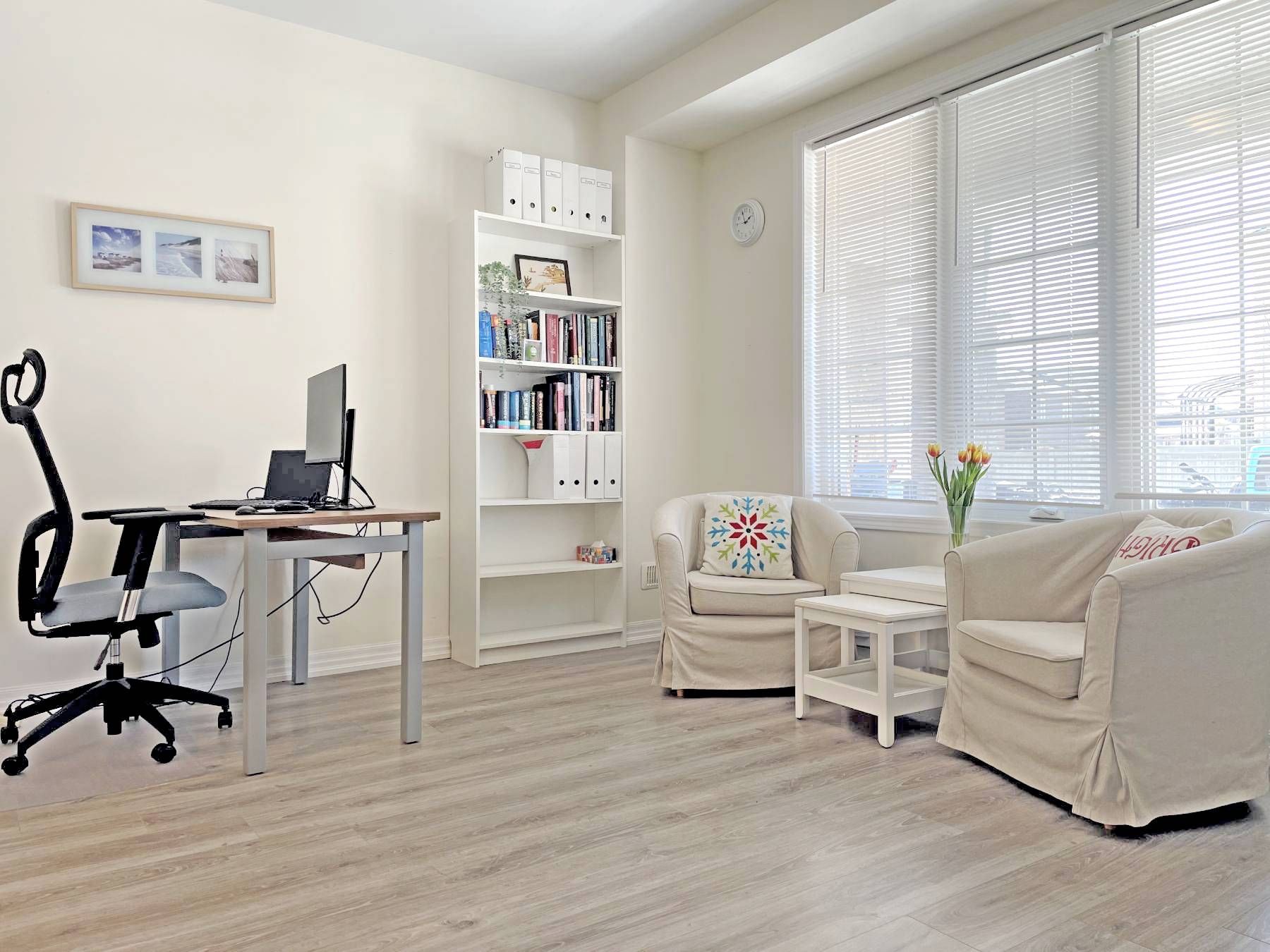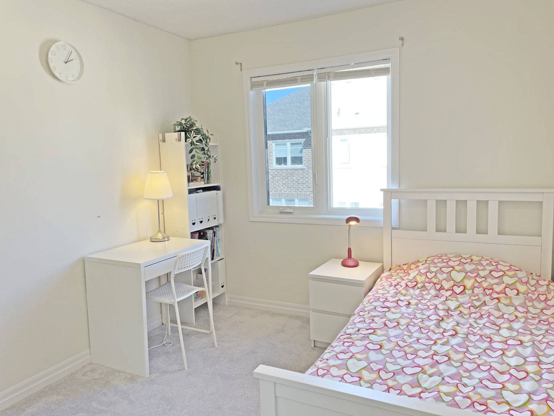 Double car garage, 3 bedroom/3 bath, 3-storey freehold townhome with interior access, built in 2019. The main level features a office/home studio, with 9 ft ceilings. Open concept kitchen features ceramic floors, stainless steel appliances, stone counter tops, backsplash, centre island and a walk-in pantry and w/o to balcony. Primary bedroom has walk-in closet and 3 piece ensuite with glass shower enclosure, laundry on the 3rd level, laminate floors and wood staircase, broadloom in bedrooms, spacious great room. Close to oakville hospital, parks, schools, public transit, highways, shopping and coffee shops.