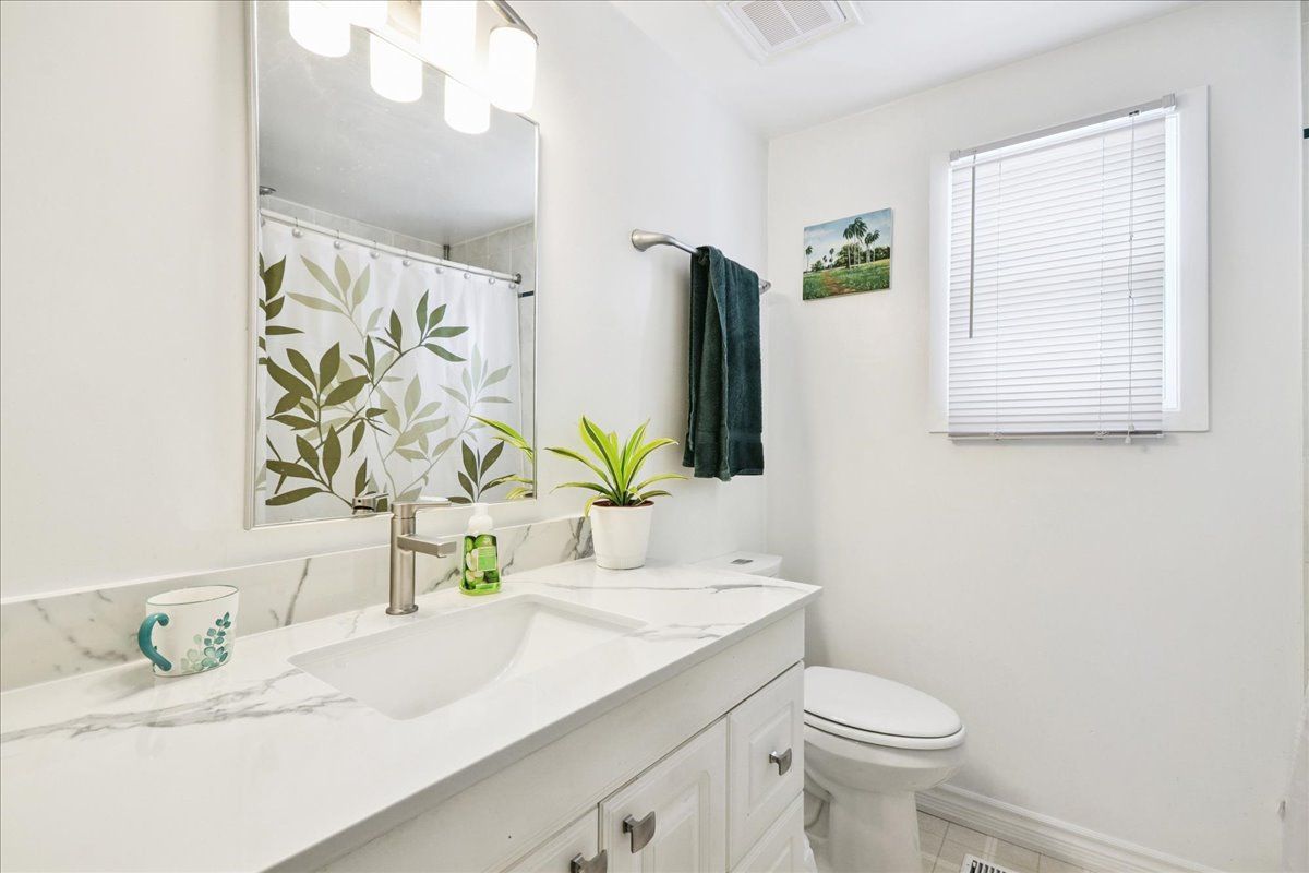 • Updated kitchen with quartz countertops and a breakfast area leading to the patio.
