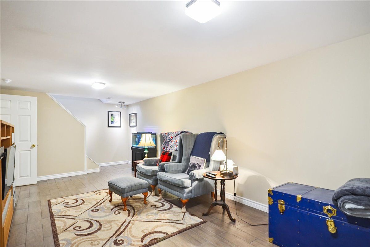 • Finished basement with recreation room, double closets, and home office potential.