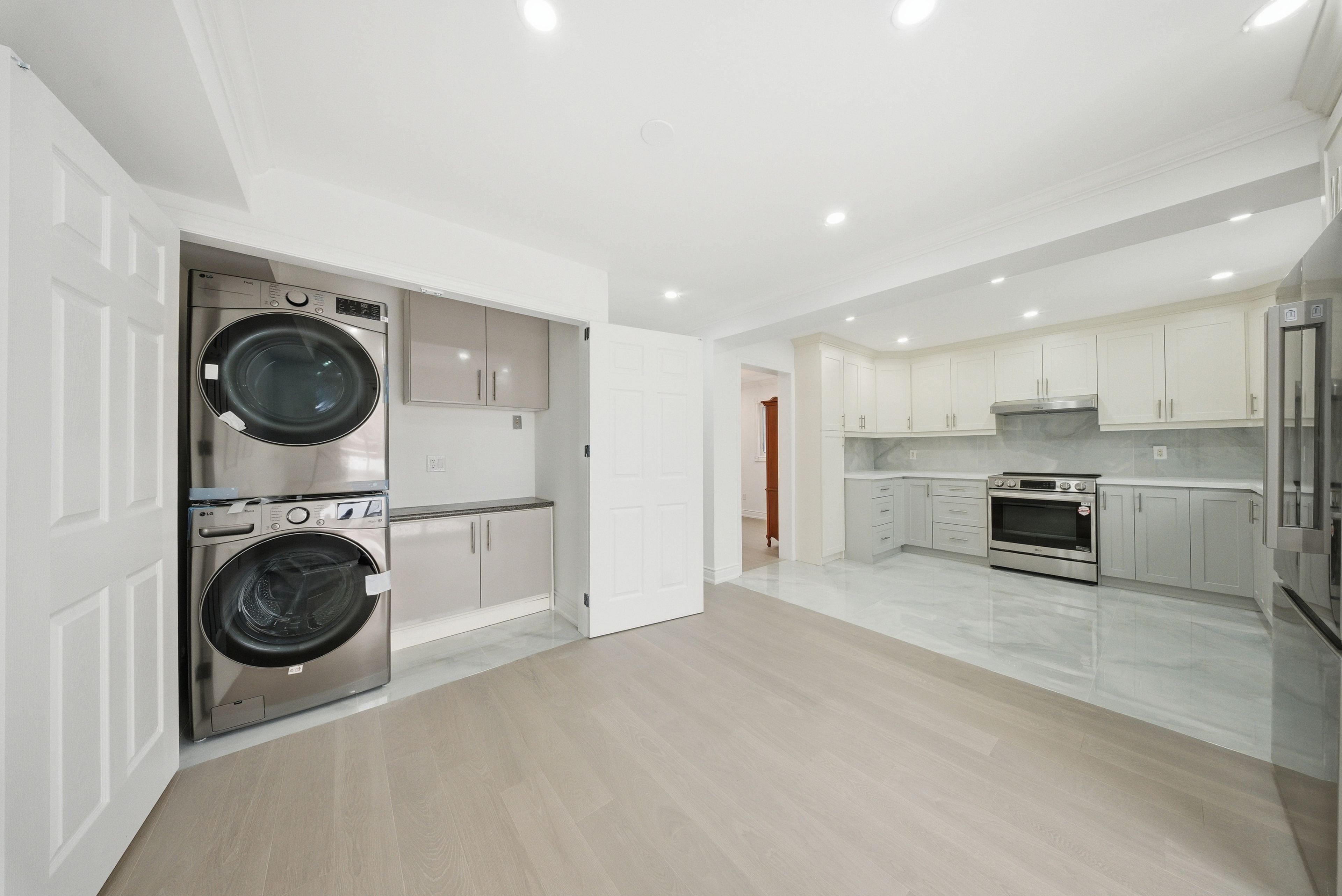 This magnificent all-brick fully renovated detached family house over 2200sqft, ready to move in has 3 bedrooms with a large family room located in between floors that can be easily converted to 4th bedroom, 4 upgraded washroom and 2 additional bedroom in the basement. Main floor has spacious large dining room, large new modern custom kitchen with quartz counter top and eat-in breakfast area with new backslash and floor tiles. All appliances are new lg stainless steel. New designed laundry room with new stackable lg stainless steel washer and dryer. Fully upgraded powder washroom. The house features new windows, new backyard sliding door, new attic installation, new engineering hardwood floors, upgraded solid oak staircase with metal pickets, led lighting pot lights throughout and updated large backyard deck for entertainment and family gatherings. The first floor has 3 spacious bedrooms and 2 upgraded bathrooms. The primary bedroom has a walk-in closet with en-suite modern bathroom. The basement apartment is designed to generate potential rental income, making this property an excellent investment as comes with its own separate entrance. The current market conditions suggest potential rental income which can significantly contribute to mortgage payments. The basement has 2 bedrooms, large recreation area, full bathroom, separate laundry, storage and separate kitchen . The main circuit breaker power has been upgraded to 200am to enable to use all the appliances in the two kitchens and two laundries at the same time. The stamped brick large driveway takes 4 cars in addition to 2 cars inside the garage. The house is positioned just steps away from the highways (401, 403 & 407) in one of mississauga's most desirable neighborhoods. The house is close to top-rated schools, parks, public transit, and shopping centers. The furnace is owned and the new tankless water heater is rented from reliance comfort company.