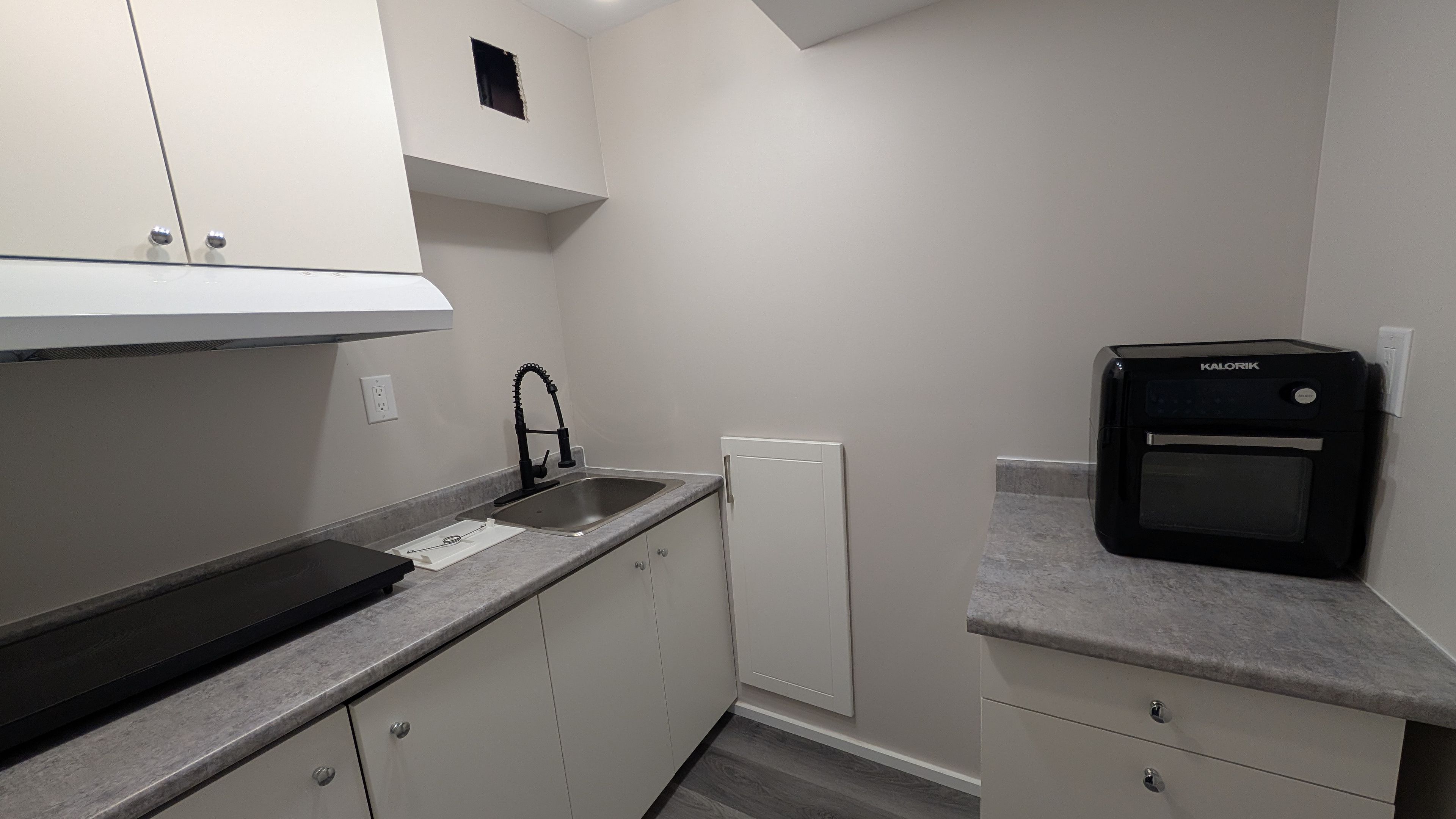 • Stylish kitchen with plenty of cabinetry and center island.