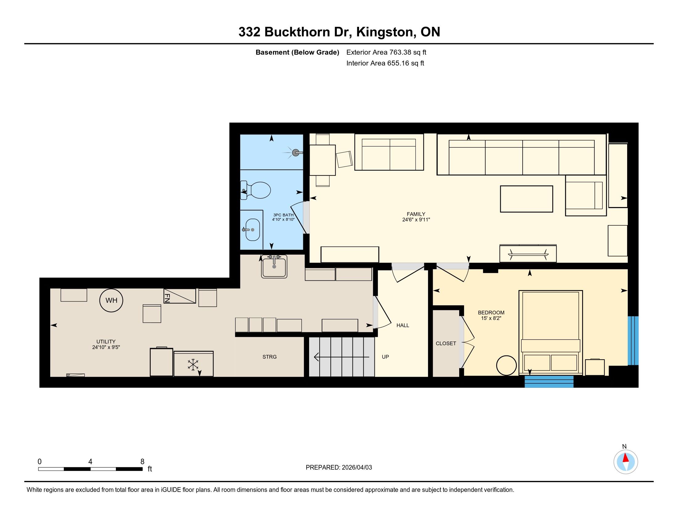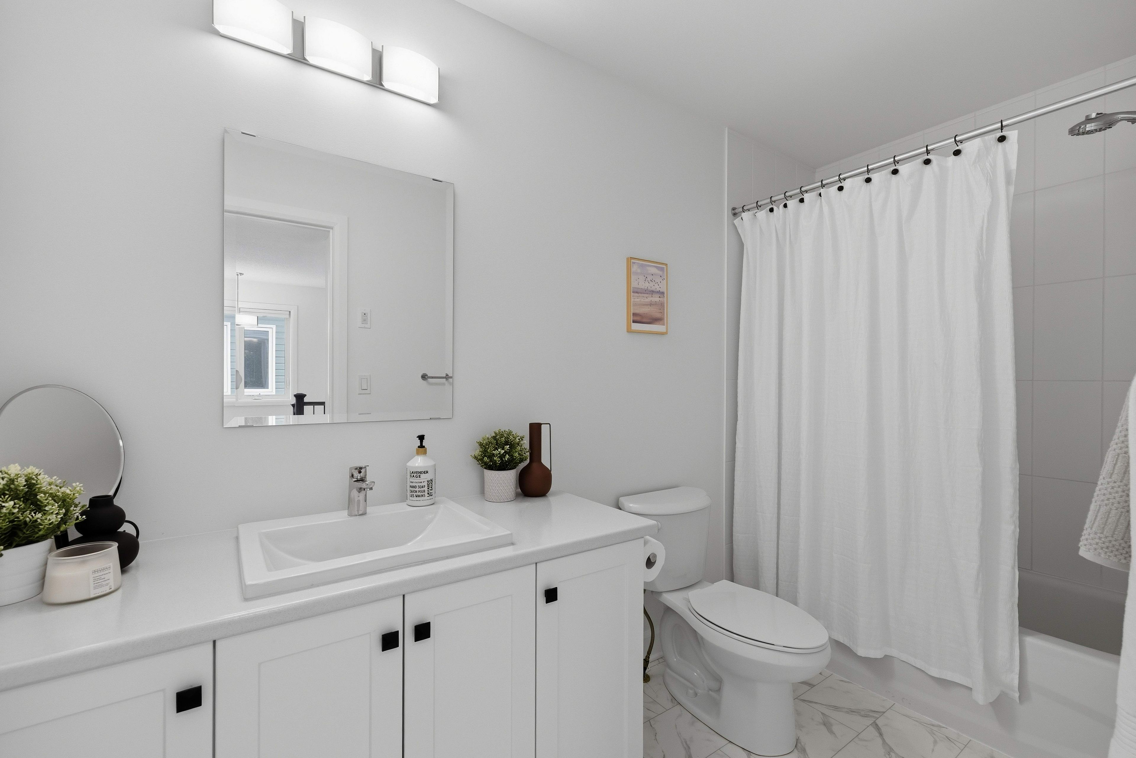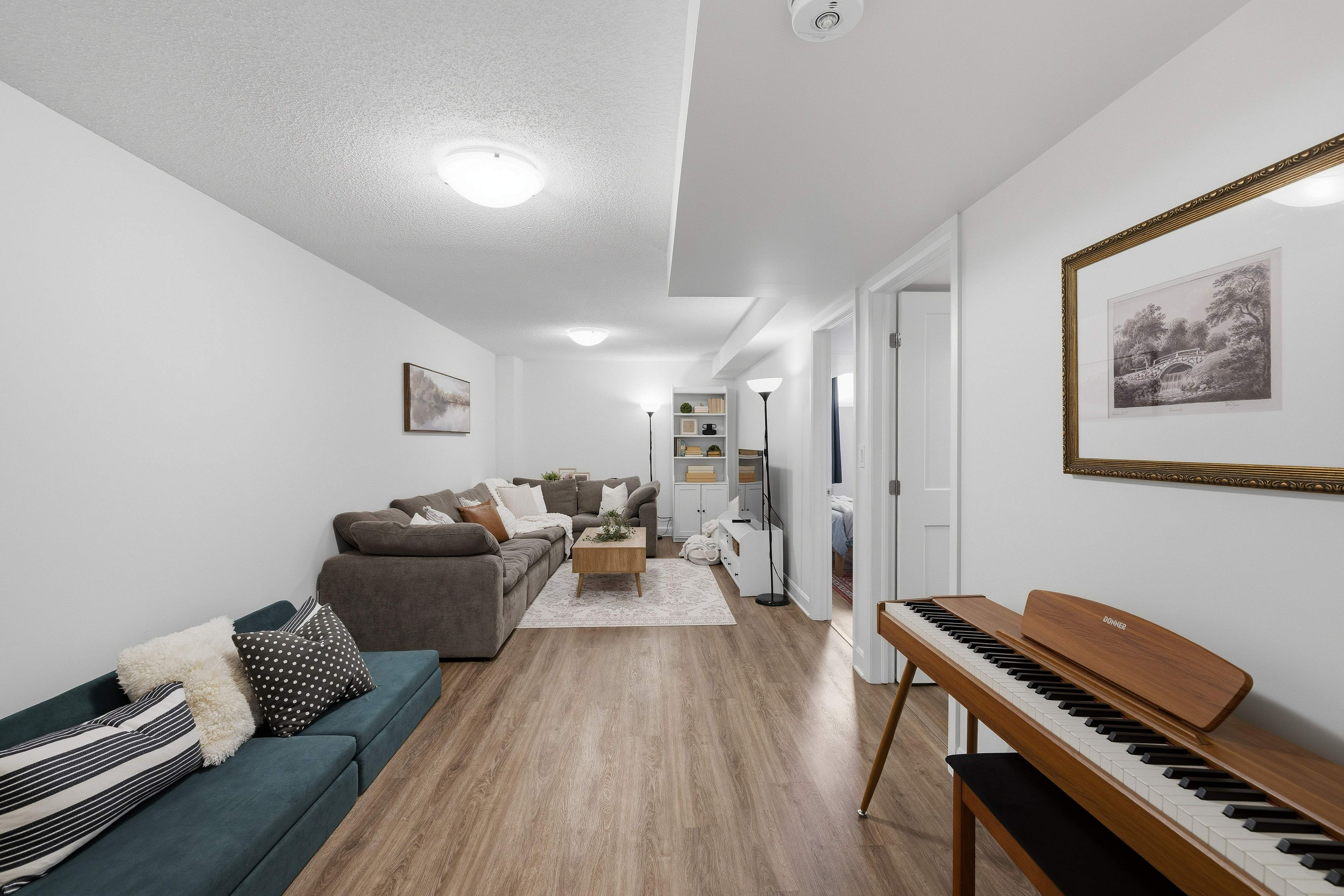 • Fully finished basement with extra bedroom, bathroom, and storage space.