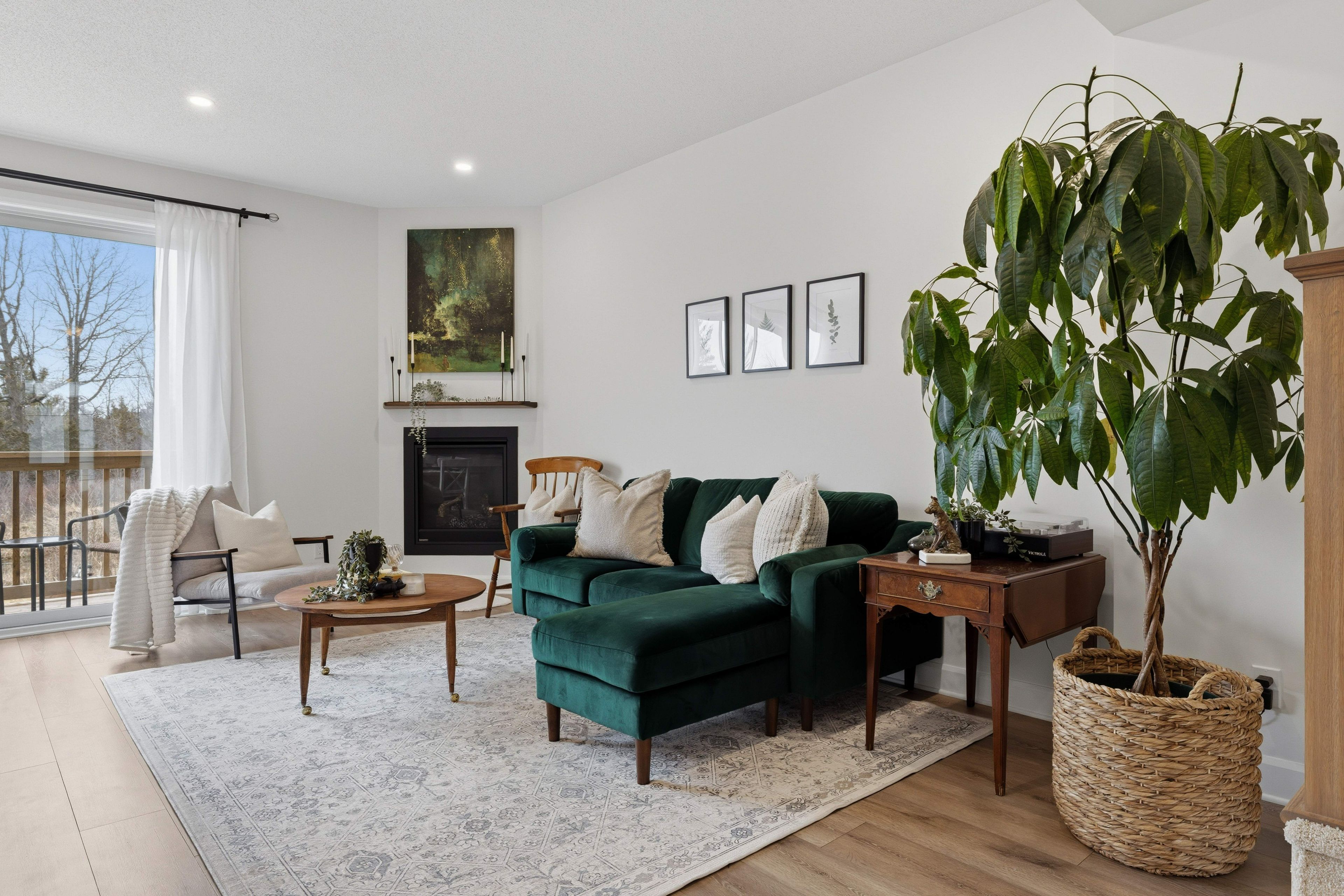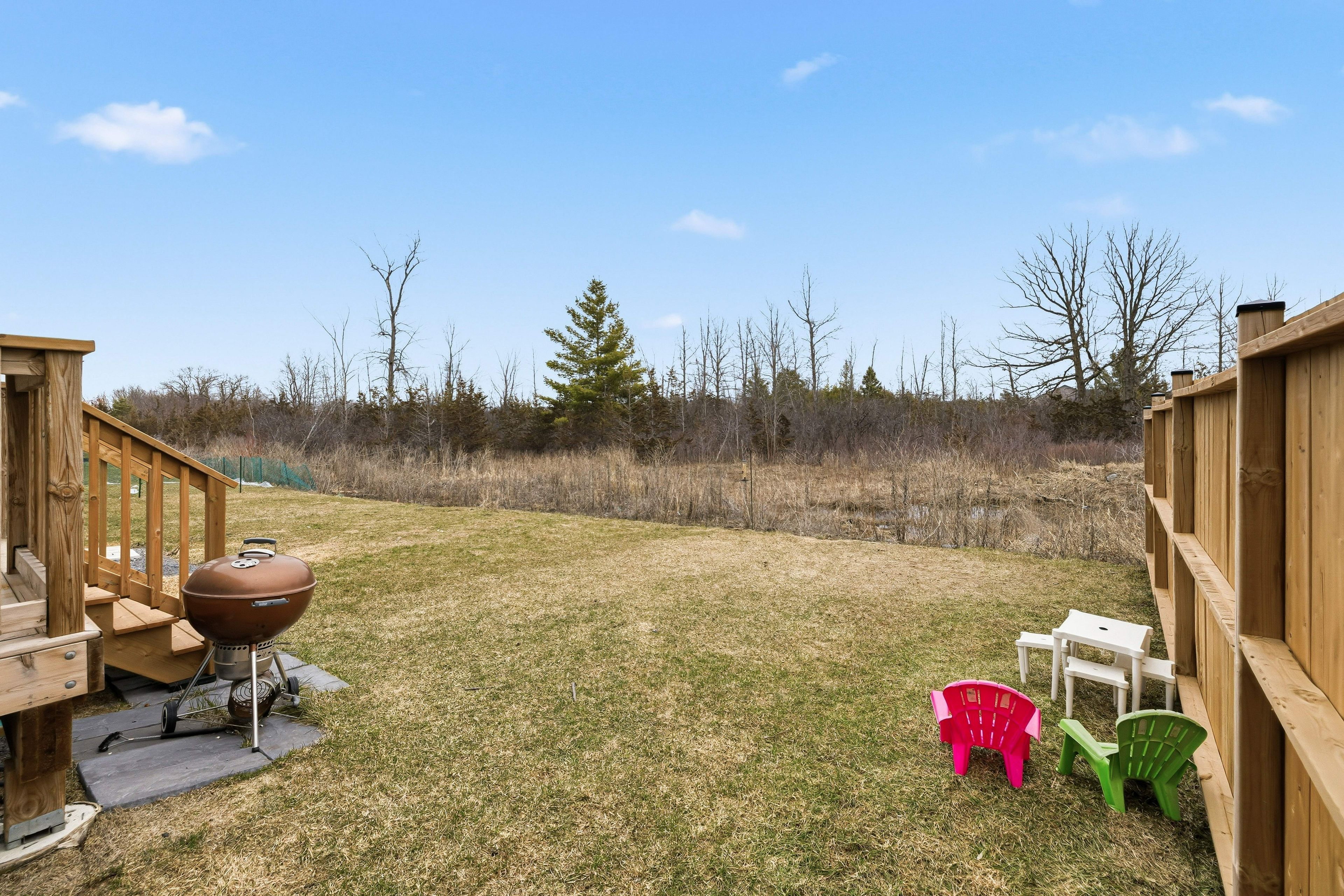 Welcome to this better-than-new home in kingston's sought-after woodhaven neighbourhood. Just two years old and fully finished from top to bottom, this spacious two-storey offers exceptional move-in-ready living with 2000 square feet of finished living space over three floors. The bright main floor features gorgeous neutral décor and a modern open-concept layout anchored by a stunning white kitchen with quartz countertops and ample cabinetry with corner pantry. The living area is warm and inviting with a cozy gas fireplace, while durable laminate flooring runs throughout the main level. A convenient main-floor laundry room and two-piece powder room add everyday functionality. An extra-wide staircase with beautiful natural light leads to the second level. Upstairs you'll find a generous primary suite complete with a walk-in closet and private ensuite,along with two more well-sized bedrooms and a full bathroom. The fully finished basement expands the living space with a fourth bedroom, full bathroom, dimmable pot lights,and additional storage in the utility area-perfect for guests, a home office, or growing families. Step outside through the oversized sliding patio doors to a quaint outdoor space backing onto no rear neighbours for added privacy. The attached single garage, ample driveway parking, and a concrete walkway that widens the drive add both convenience and curb appeal. Bonus features include all appliances included, radon mitigation already installed, and the balance of the transferable tarion new home warranty. Turnkey and beautifully finished, this home is ready to welcome its next family.