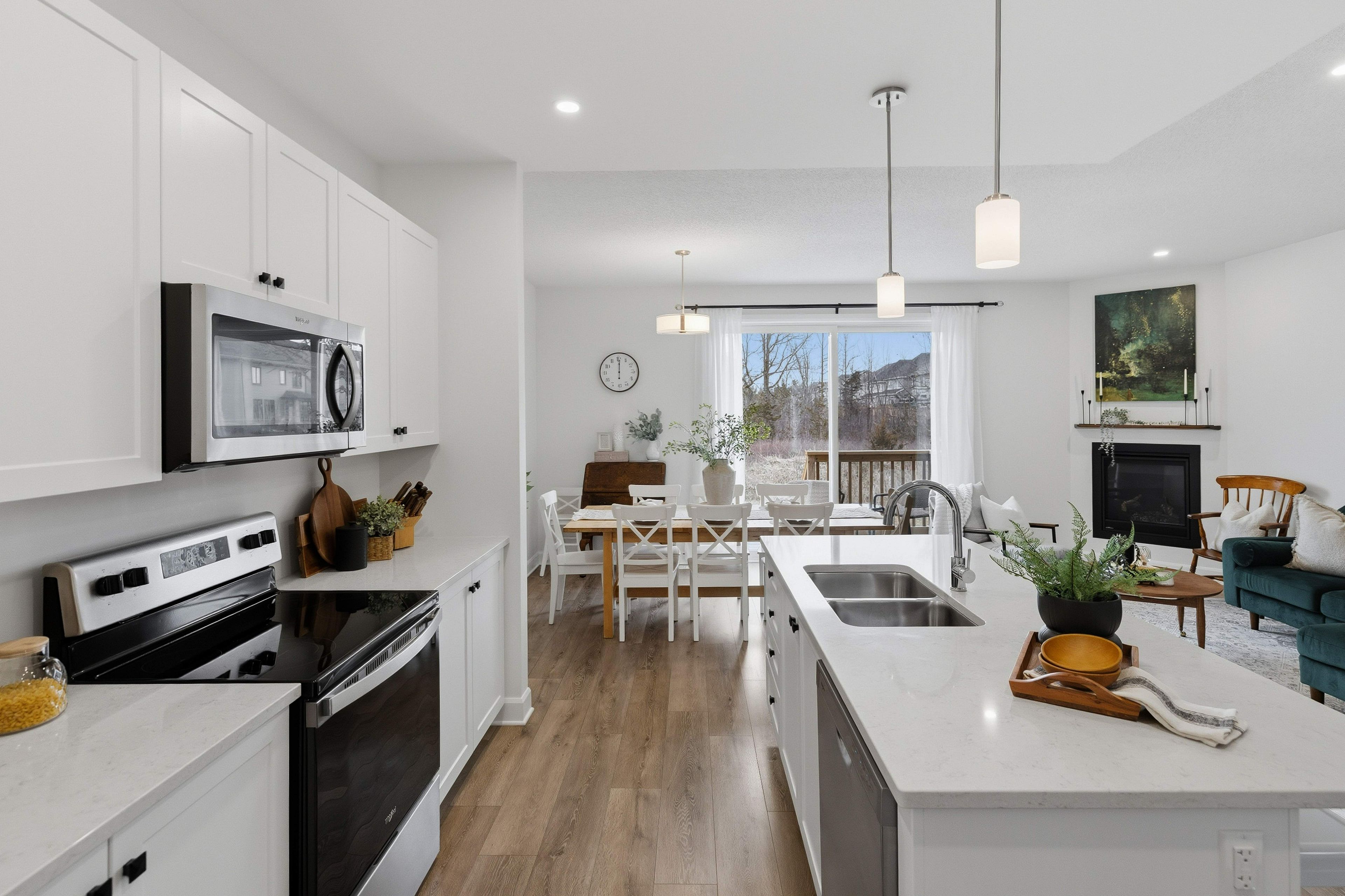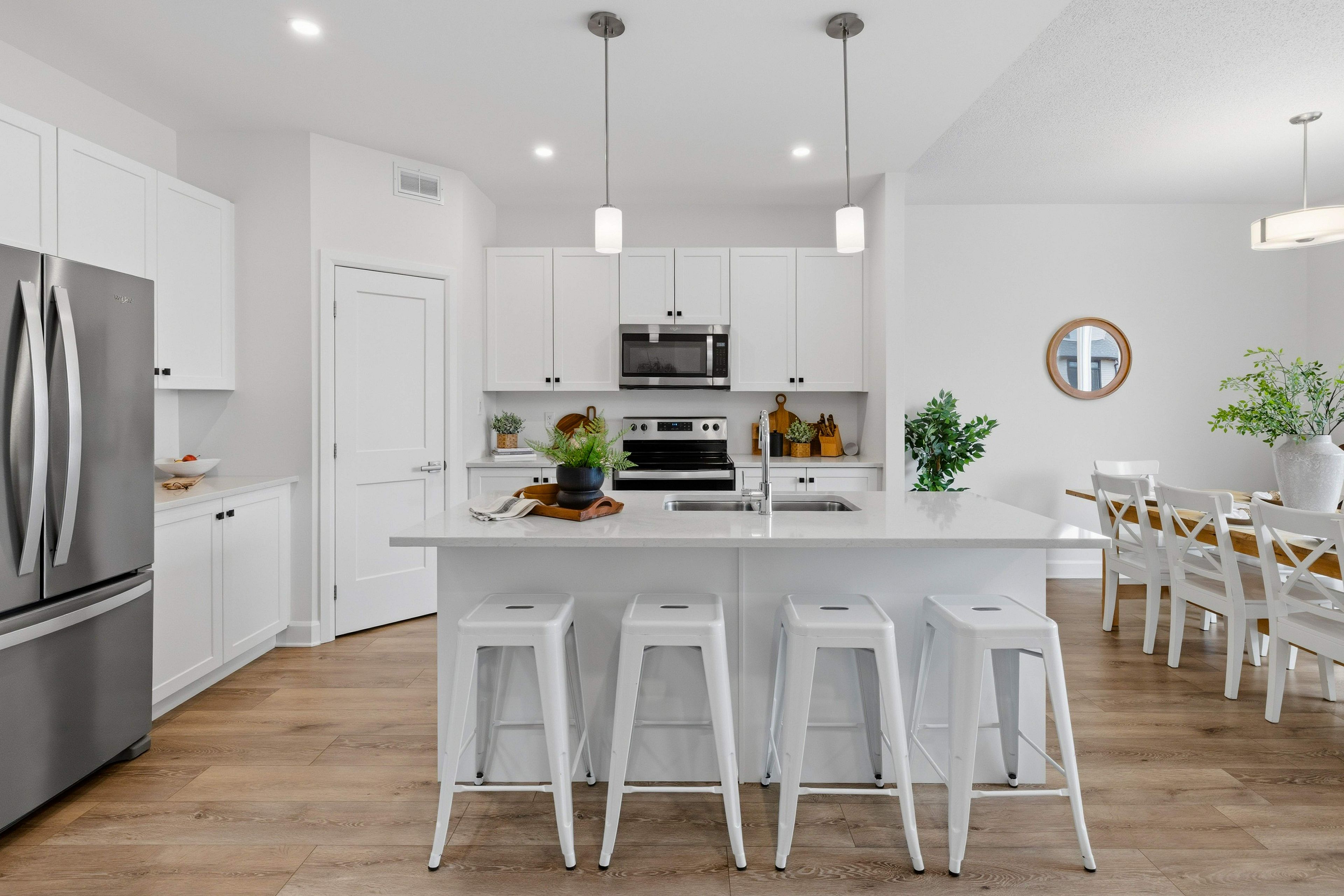 • Bright main floor featuring a modern open-concept kitchen with quartz countertops.