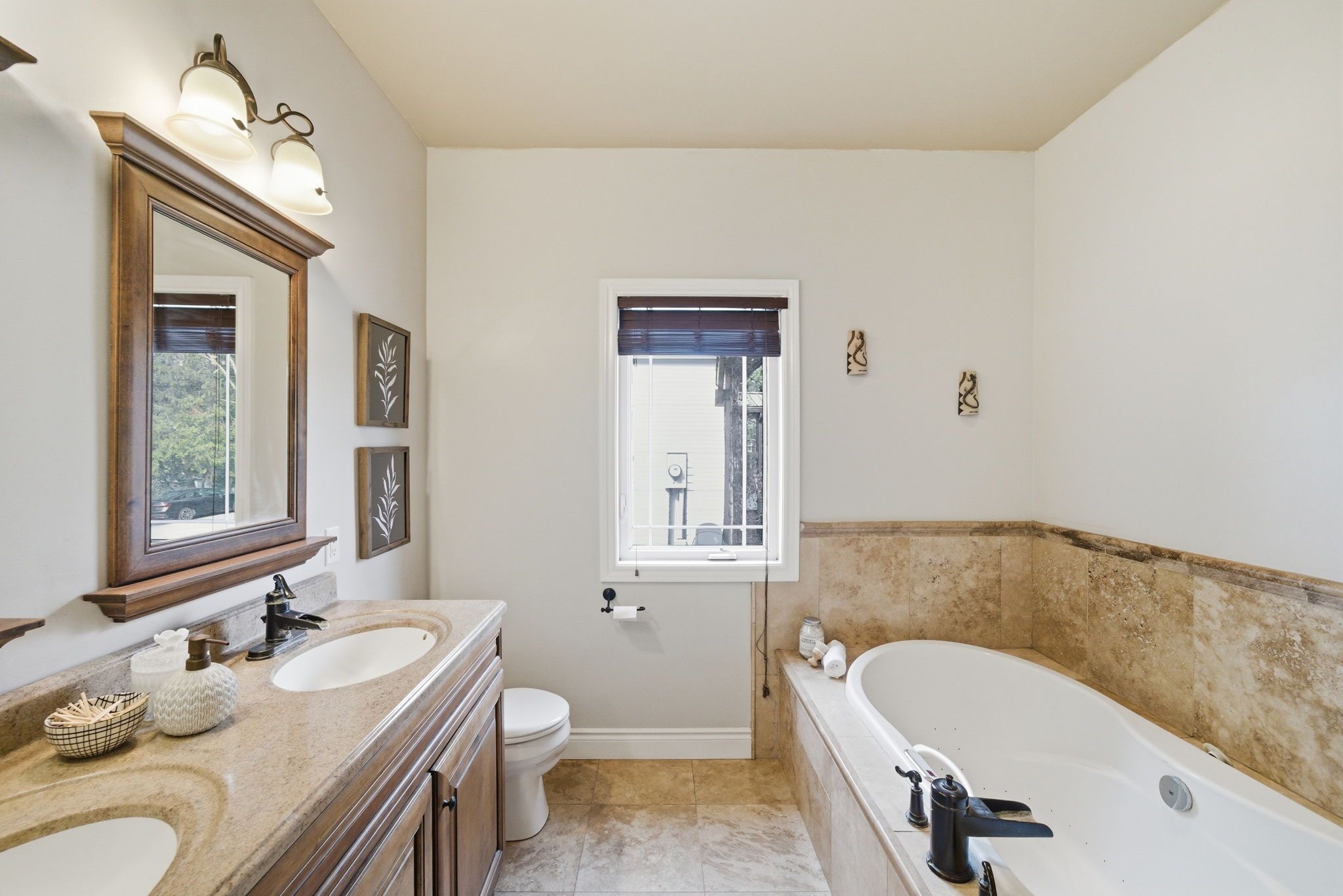 • Private backyard with a hot tub, deck, and access to Scugog Lake.